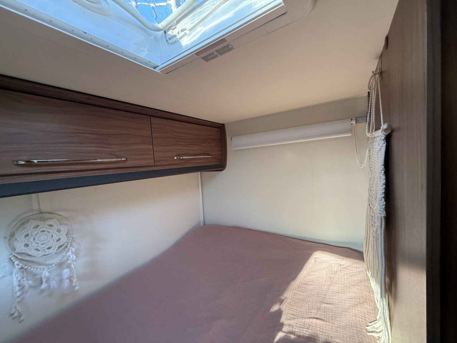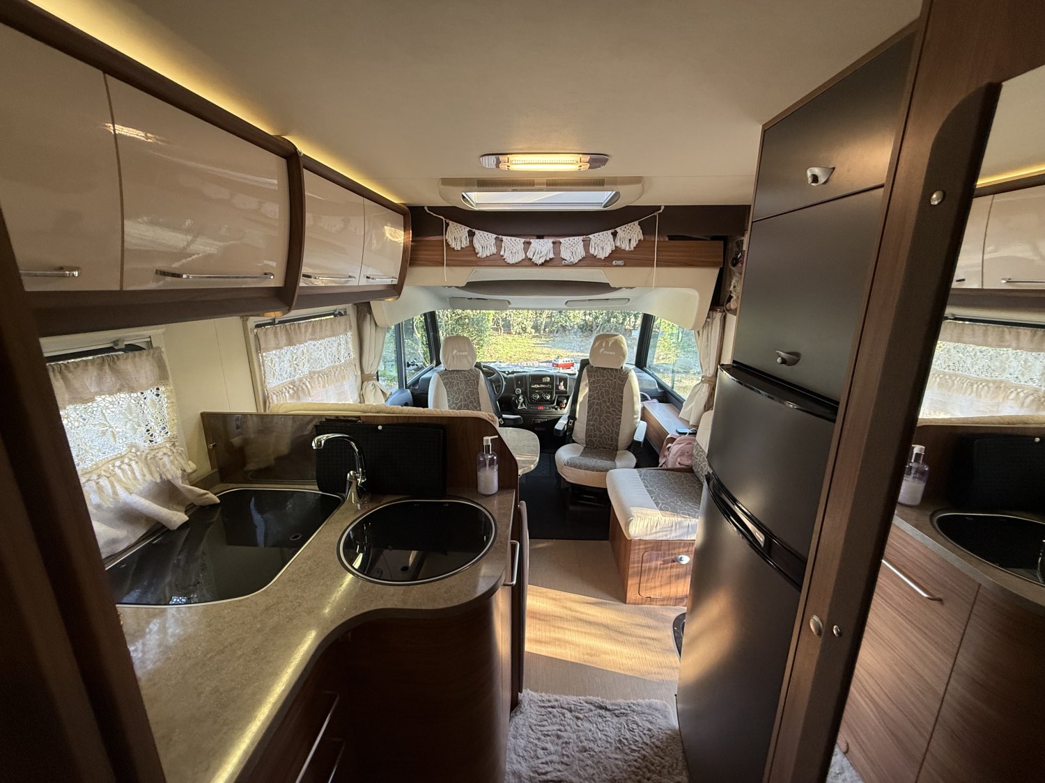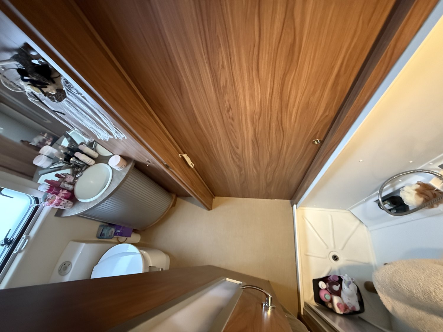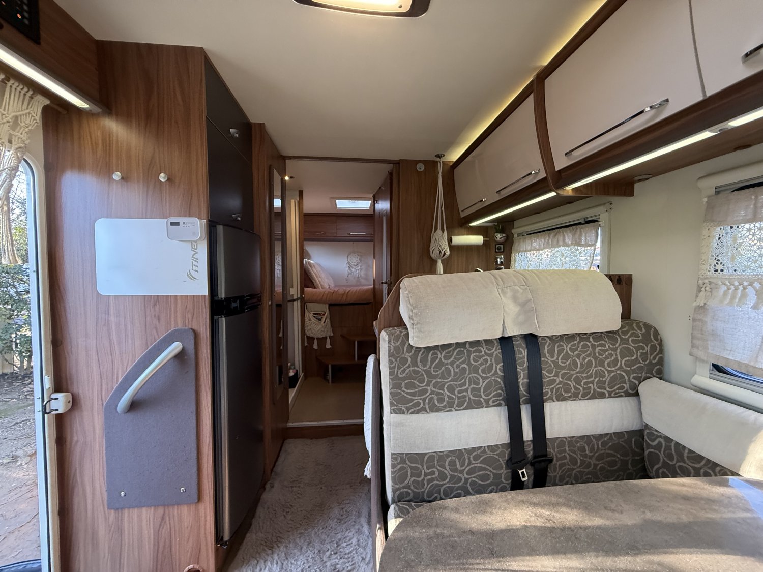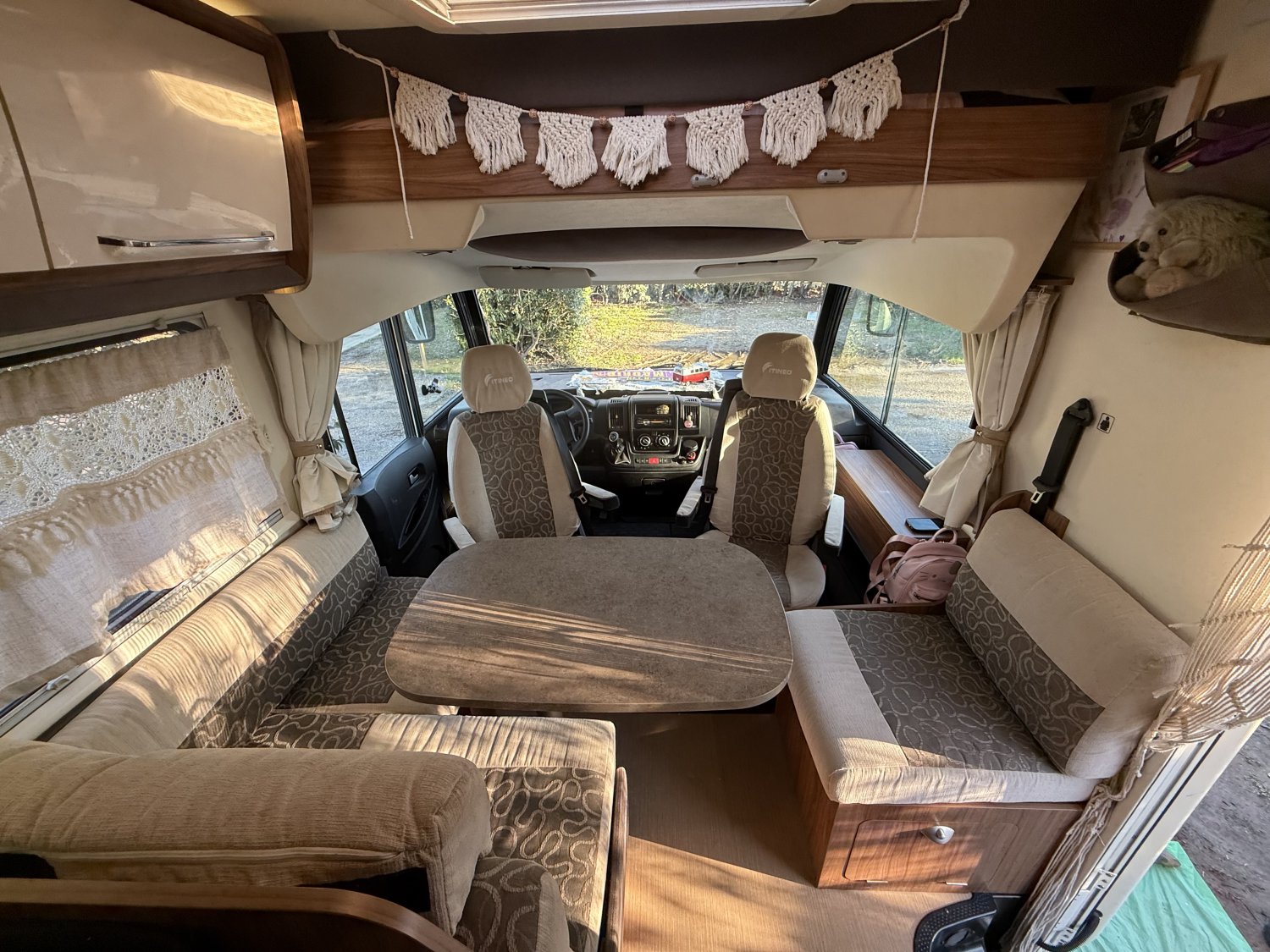 La cuisine équipée, le salon convivial avec sièges cabine pivotants et la salle d’eau avec douche indépendante créent une vraie sensation de confort au quotidien. La présence d’une douche rigide séparée du WC est un atout rarement rencontré sur un camping-car de moins de 7 mètres, rendant les séjours plus agréables en toutes saisons.