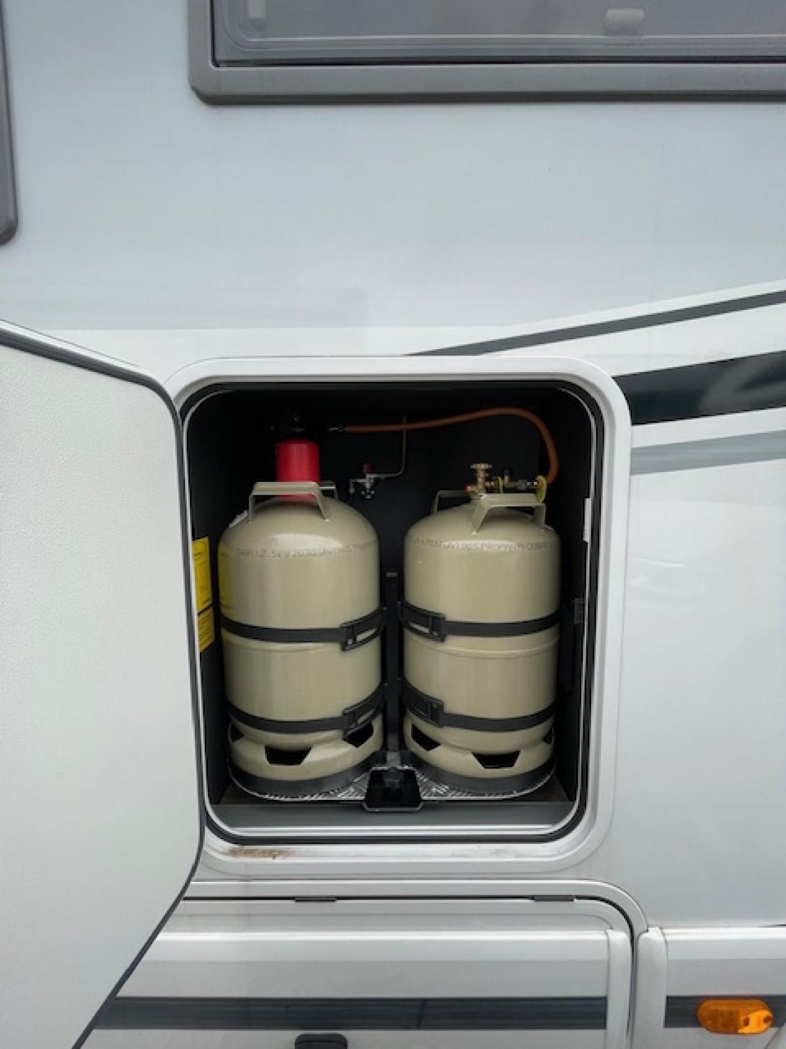 Nombreux accessoires de camping (table, chaises, alimentation électrique...) inclus