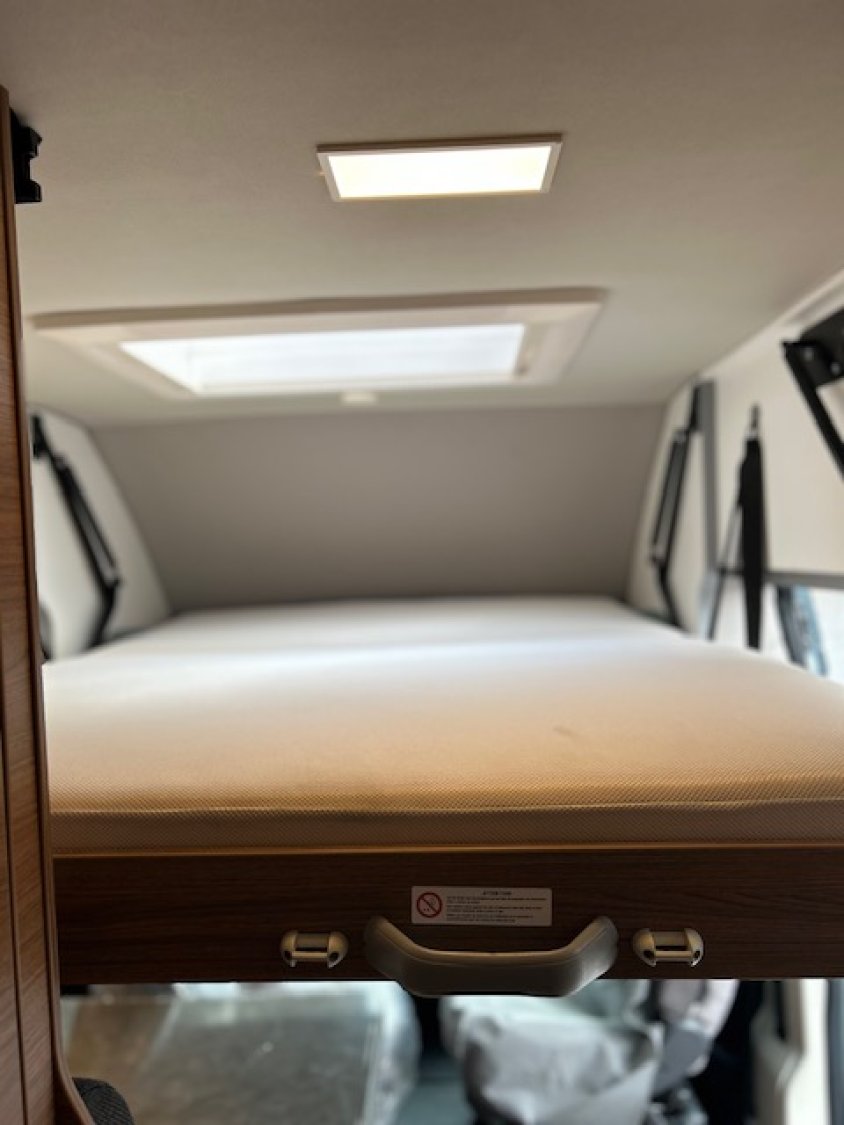 Lit transversal arrière relevable + lit double de pavillon.