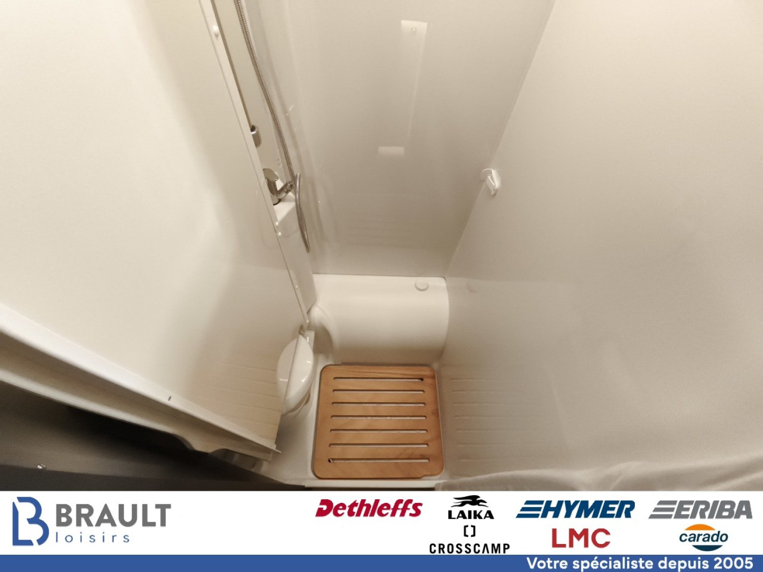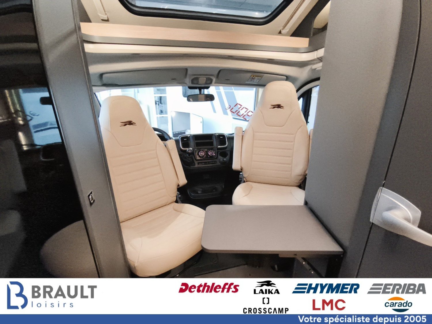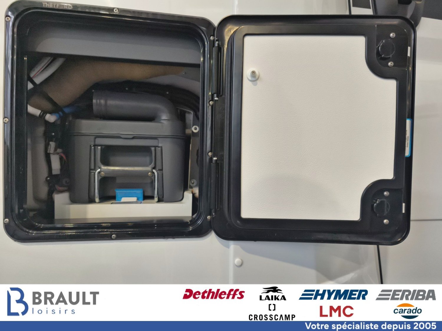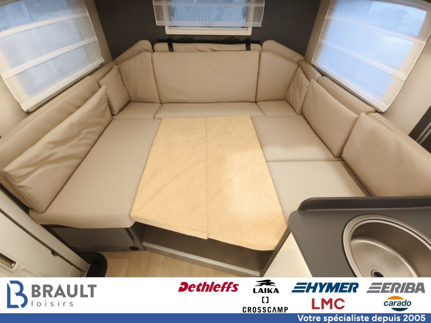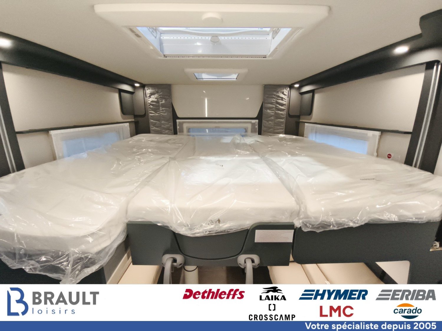 (réservoir d'eaux usées isolé et chauffé, lanterneau Skyview, hotte aspirante, prédisposition caméra de recul, stores plissés occultants de cabine, prédisposition panneau solaire, caillebotis de douche, tapis de cabine, porte cellule premium XL, habillage des parois de la chambre à coucher arrière en simili-cuir, grand tiroir et porte-bouteille coulissant dans la cuisine)