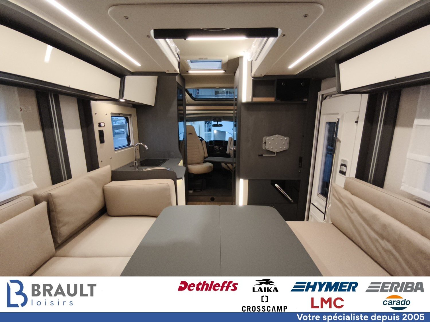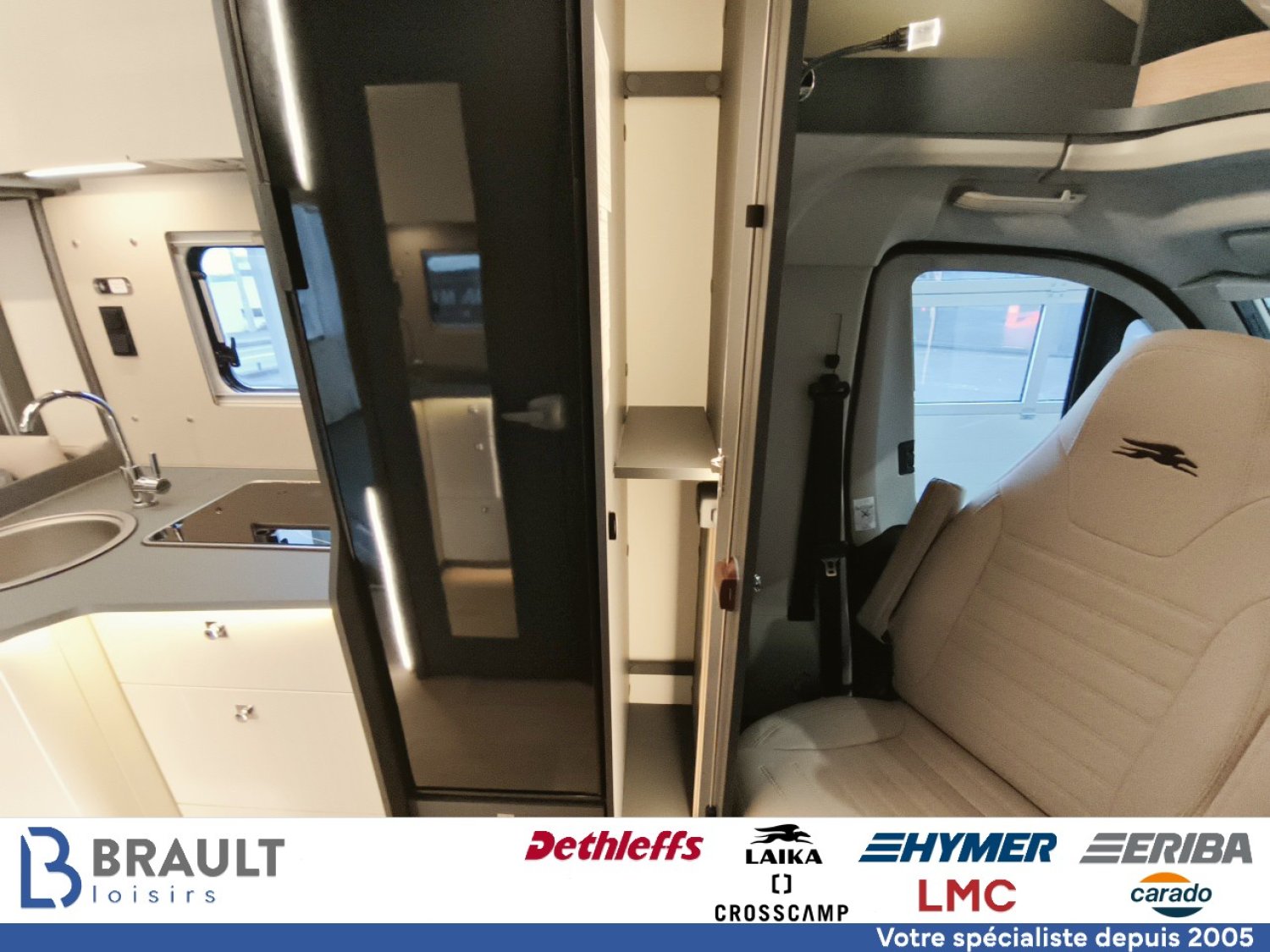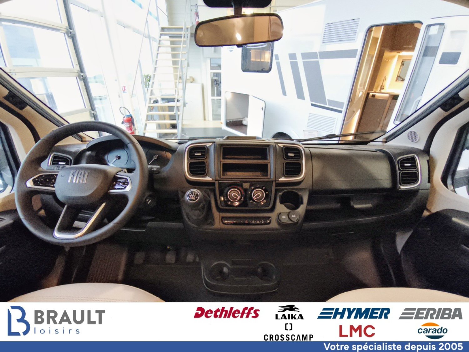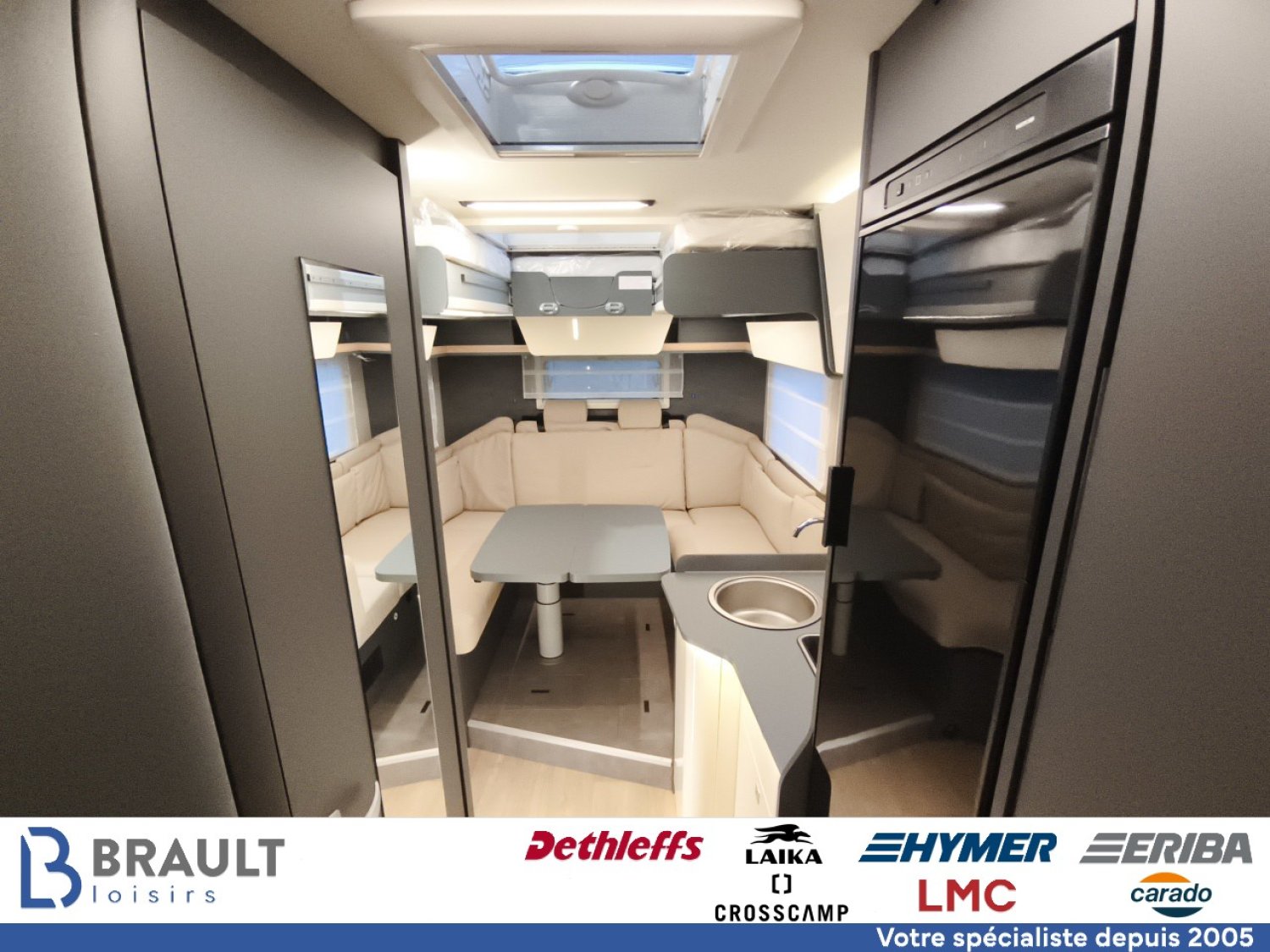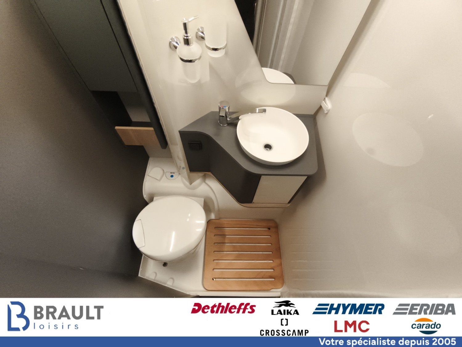(réservoir d'eaux usées isolé et chauffé, lanterneau Skyview, hotte aspirante, prédisposition caméra de recul, stores plissés occultants de cabine, prédisposition panneau solaire, caillebotis de douche, tapis de cabine, porte cellule premium XL, habillage des parois de la chambre à coucher arrière en simili-cuir, grand tiroir et porte-bouteille coulissant dans la cuisine)