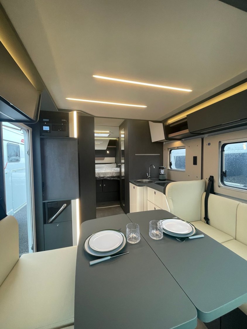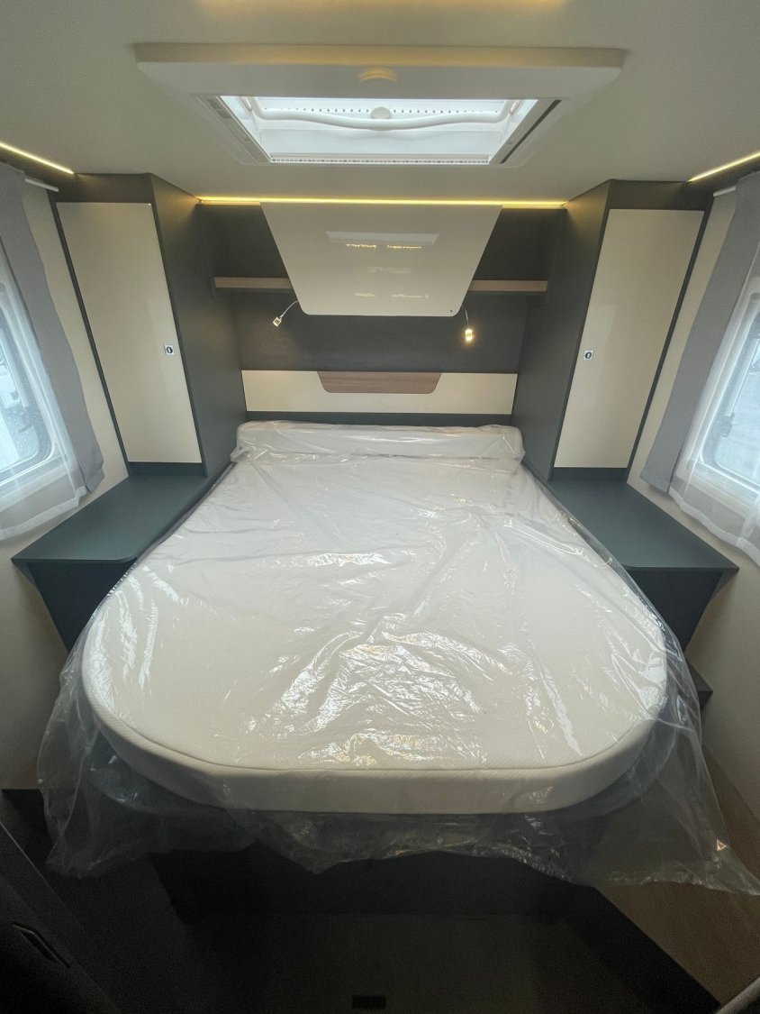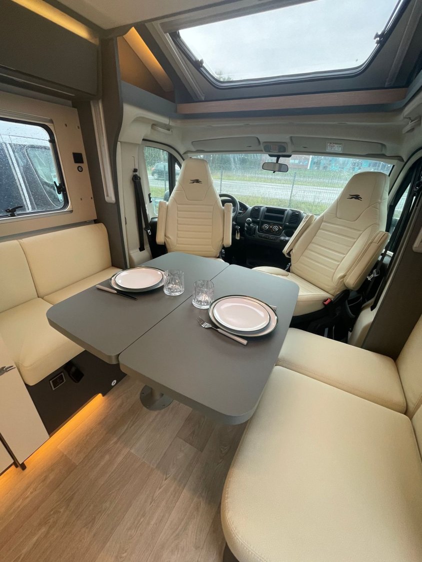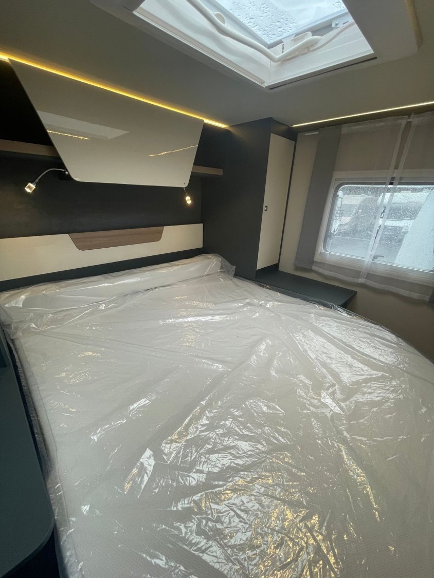 - Pack confort 2 389 € (Pack confort : Caillebotis de douche en bois, tapis de cabine, hotte aspirante, réservoir eaux usées isolé et chauffé, skyview de cabine intégré, habillage des parois de la chambre à coucher arrière en simili cuir, grand tiroir et porte-bouteille coulissants dans la cuisine, porte cellule Premium XL avec fermeture centralisée, télécommande, baie, store occultant, compartiment de rangement et vérin à gaz, prédisposition caméra de recul, sièges cabine assortis au salon.)