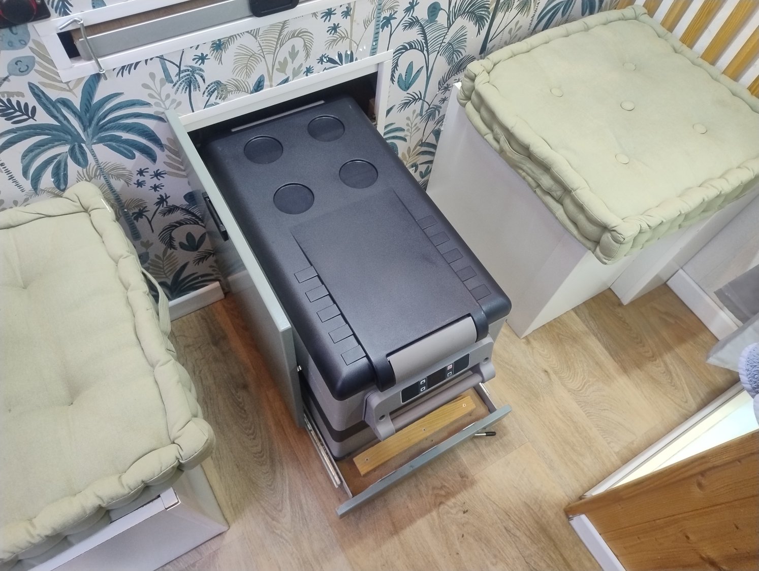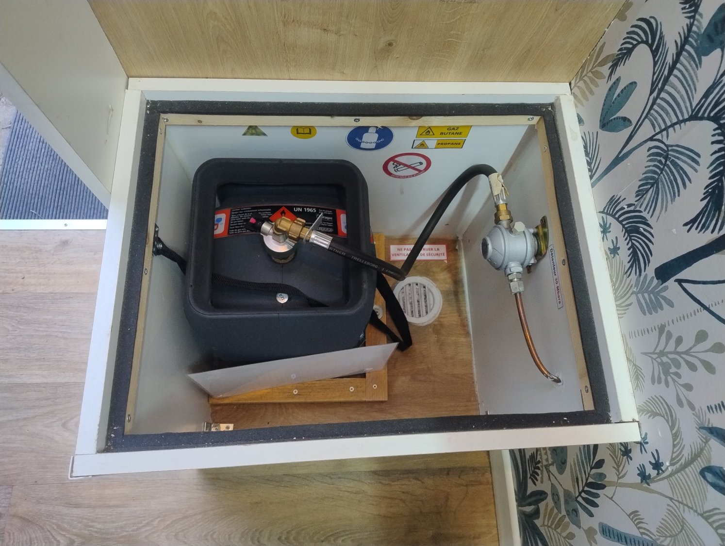 CHAUFFAGE CARBURANT, DOUCHETTE EXTERIEURE, ECLAIRAGE LED, EXTRACTEUR D'AIR, REFRIGERATEUR 12V A COMPRESSION, GAZINIERE 1 FEU, CHAUFFE-EAU GAZ