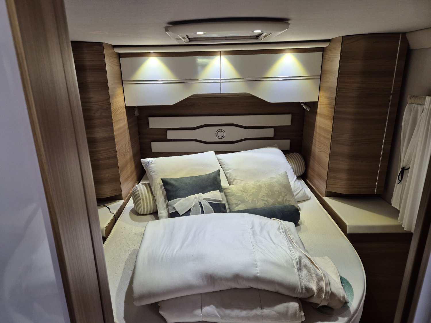 À l’arrière, profitez d’un lit central grand confort, accessible de part et d’autre, pour des nuits paisibles comme à la maison.