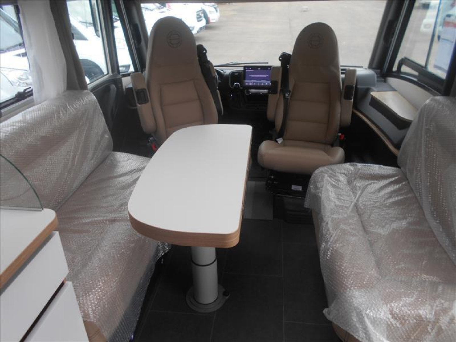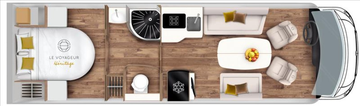 Batterie cellule 95 Ah AGM sans entretien, Caméra de recul grand angle avec écran 6,1" déporté, Centralisation porte cellule et porte chauffeu, Combi 6 Truma® chauffage/boiler 6000 W gaz, Dessus de lit, Douchette eau froide/chaude dans la soute arrière, Feux routes et diurnes à LED finition intérieure black bezel, Habillage tableau de bord finition alu, Jantes aluminium 16” finition noire, Kit réparation roue, Marchepied escamotable électrique sur porte cellule, Moquette noire en cabine, Panneau de contrôle tactile 7'' du véhicule, Pare-soleil conducteur et passager manuel, Porte cellule luxe serrure 2 points vitrée avec moustiquaire, Projecteurs antibrouillard avant, Ressorts de suspension avant renforcés et rehaussés, Réfrigérateur automatique à double ouverture 133L, Réservoirs eau propre et eaux usées isolés en double planche, Rétroviseurs électriques et dégivrants, Sièges chauffeur et passager Aguti, Store d'occultation parebrise avec ouverture intimité, Stores d'occultation plissé pour custodes, Support TV écran plat en salon, Toilettes avec cassette extractible 17 L à roulettes, Volant et pommeau de levier de vitesse en cuir