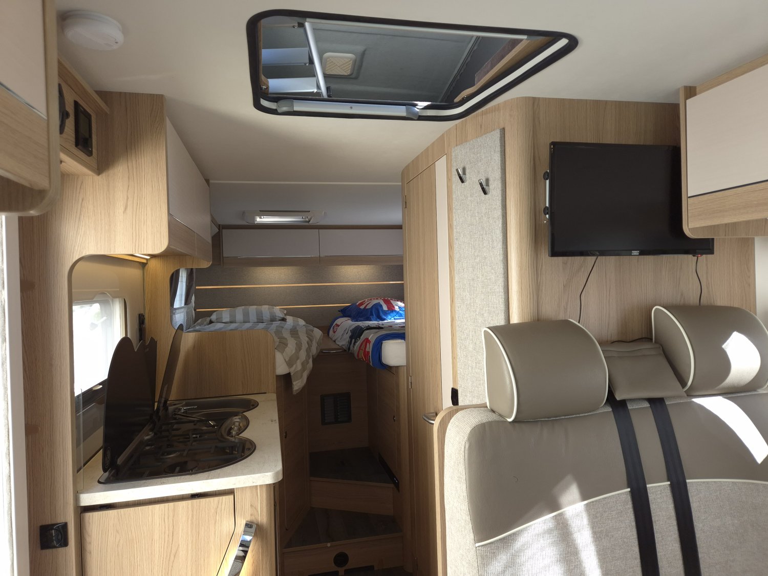 Le LMC Cruiser V646 G est un camping-car profilé compact et haut de gamme, offrant un excellent confort à bord, une grande autonomie et un agencement modulable idéal pour les couples ou petites familles en quête de liberté tout confort. Il dispose d’un toit relevable, de lits jumeaux et d’une grande soute, pour un maximum de praticité et de flexibilité lors de vos voyages.