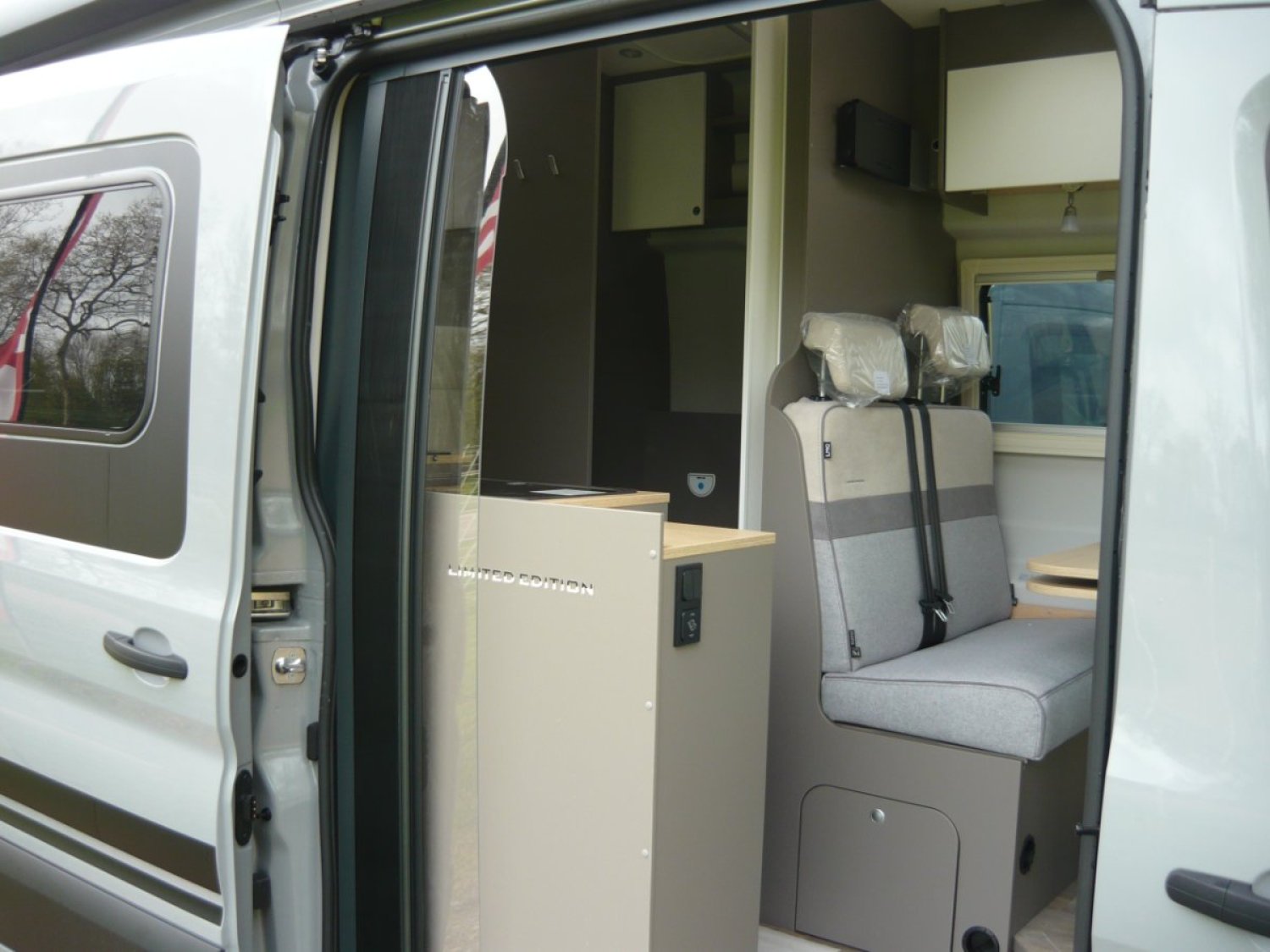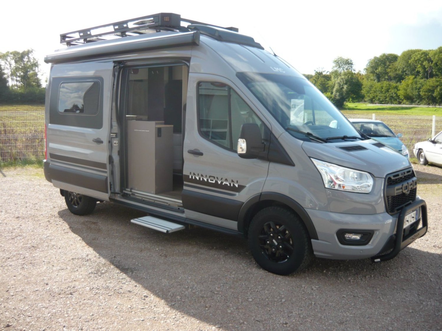 Pack Ford New Edition (incluant jantes aluminium 16 pouces Black, climatisation Ford, éclairage de virage, chauffage de lunette arrière, airbag conducteur et passager, porte moustiquaire, cassettes d’occultation Remis Ford, équipement de douche avec terrasse en bois, connexion USB dans le rail léger , rallonge de table pivotante, trappe de toit Midi Heki , auvent Thule Black cassette, sièges pilote pivotants, etc. )