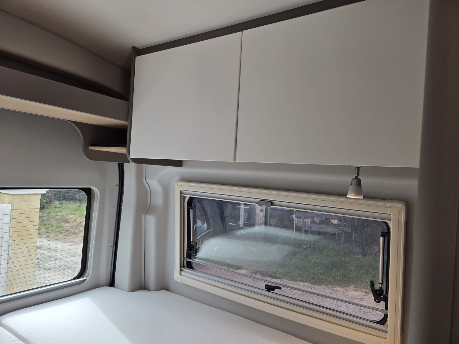L’intérieur séduit par sa qualité de fabrication allemande, ses matériaux modernes et son aménagement parfaitement pensé. L’espace de vie est lumineux et convivial, avec une dinette confortable, une cuisine fonctionnelle équipée de nombreux rangements, ainsi qu’une salle d’eau compacte avec douche et WC. À l’arrière, le couchage offre un excellent confort pour profiter pleinement de vos nuits lors de vos voyages.