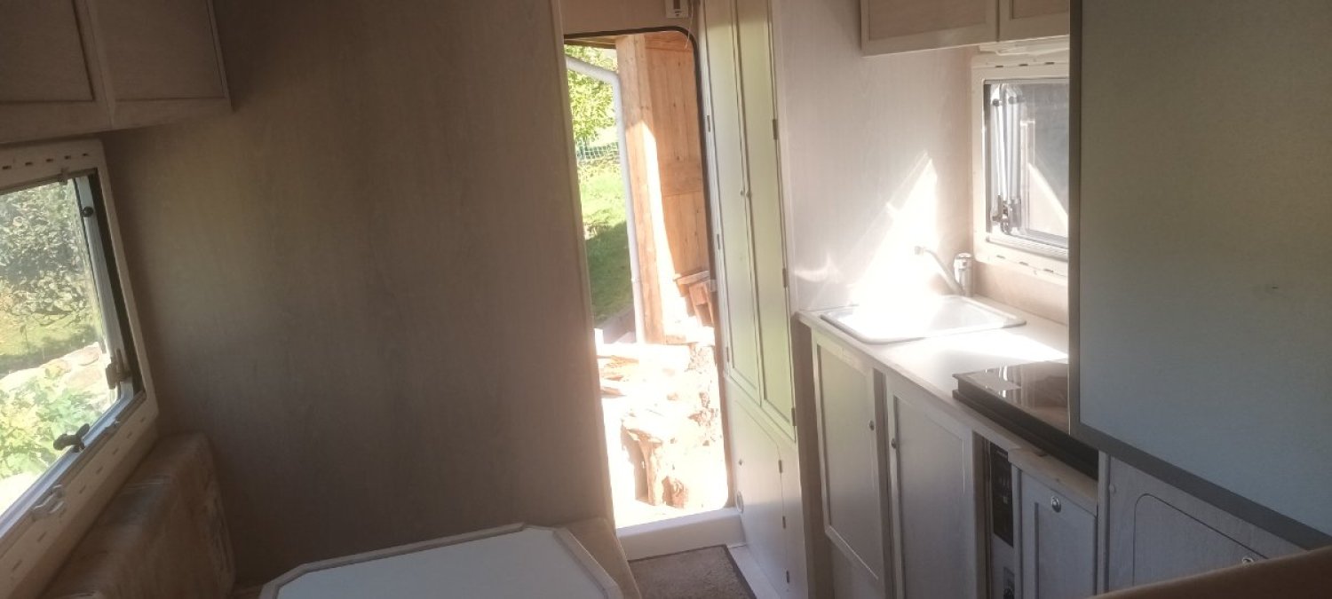 Cellule polycomposit logemobile Mangue GLS 2.50m, sur pick up Mitsibishi L 200, 6500 km, première main, de 2006, entièrement tout révisé, distribution neuve.