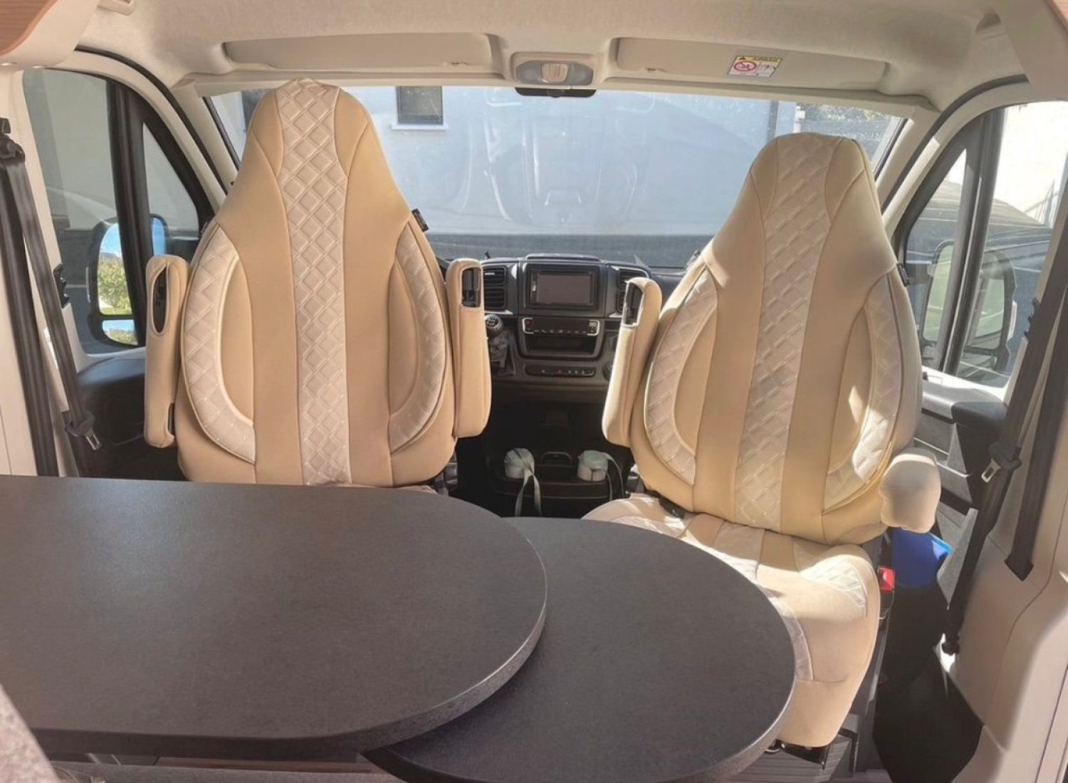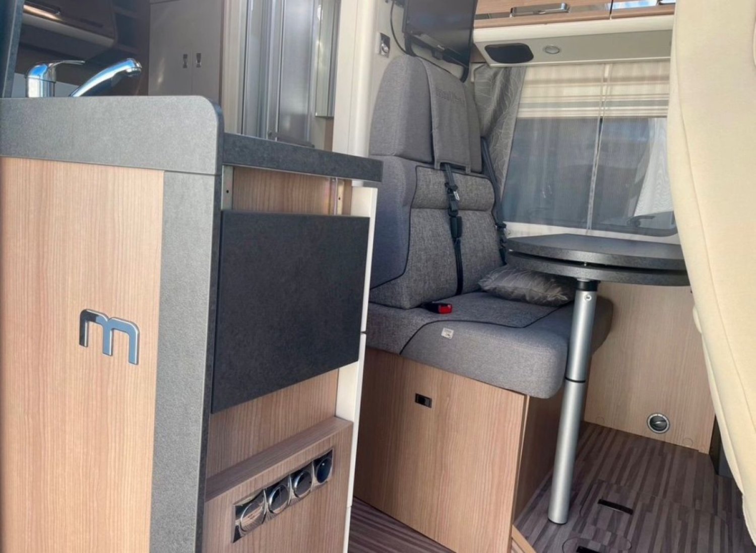 Équipé d’un panneau solaire, TV, autoradio avec CarPlay, caméra de recul et antenne satellite automatique.