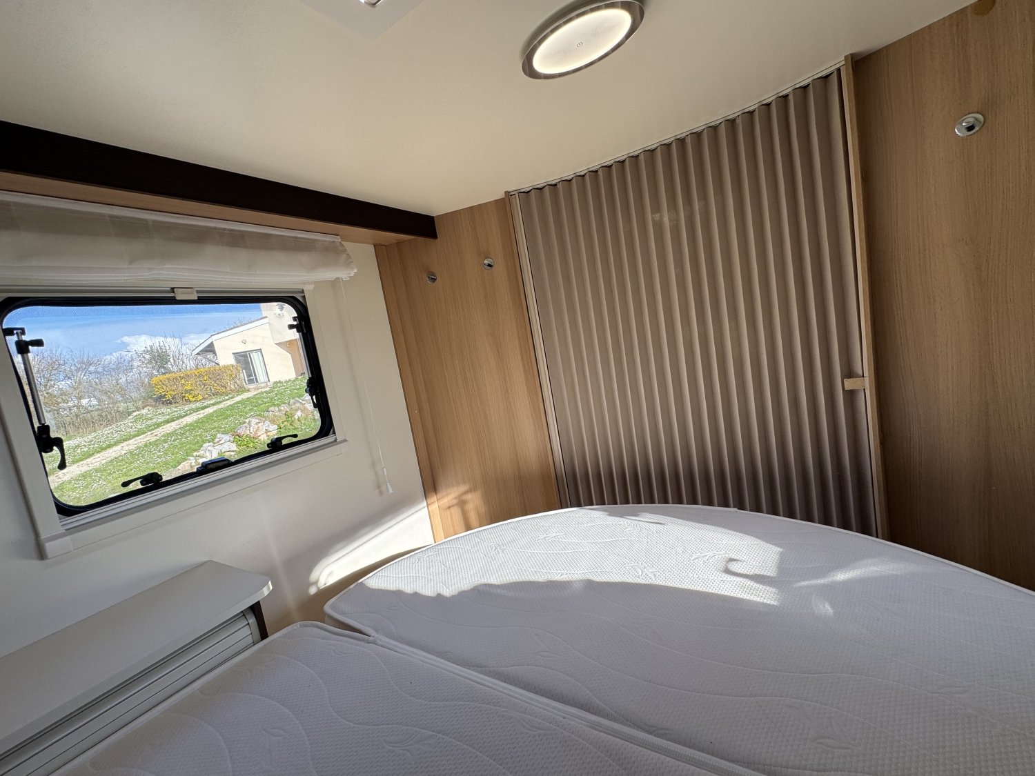 CHAUFFAGE COMBI TRUMA 4, FRIGO 140L AVEC TIROIR 9BOUTEILLES, STORE EXTERIEUR 4.5M, CUISINE EN L, DOUCHE ET WC SEPARES, ECLAIRAGE LED, REFRIGERATEUR TRI MIX, STORES PLISSES DE CABINE, VOLET ISOTHERME INTERIEUR, DOUBLE CLOISON DE SEPARATION, LANTERNEAU PANORAMIQUE