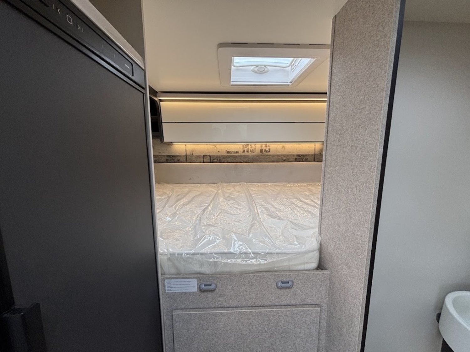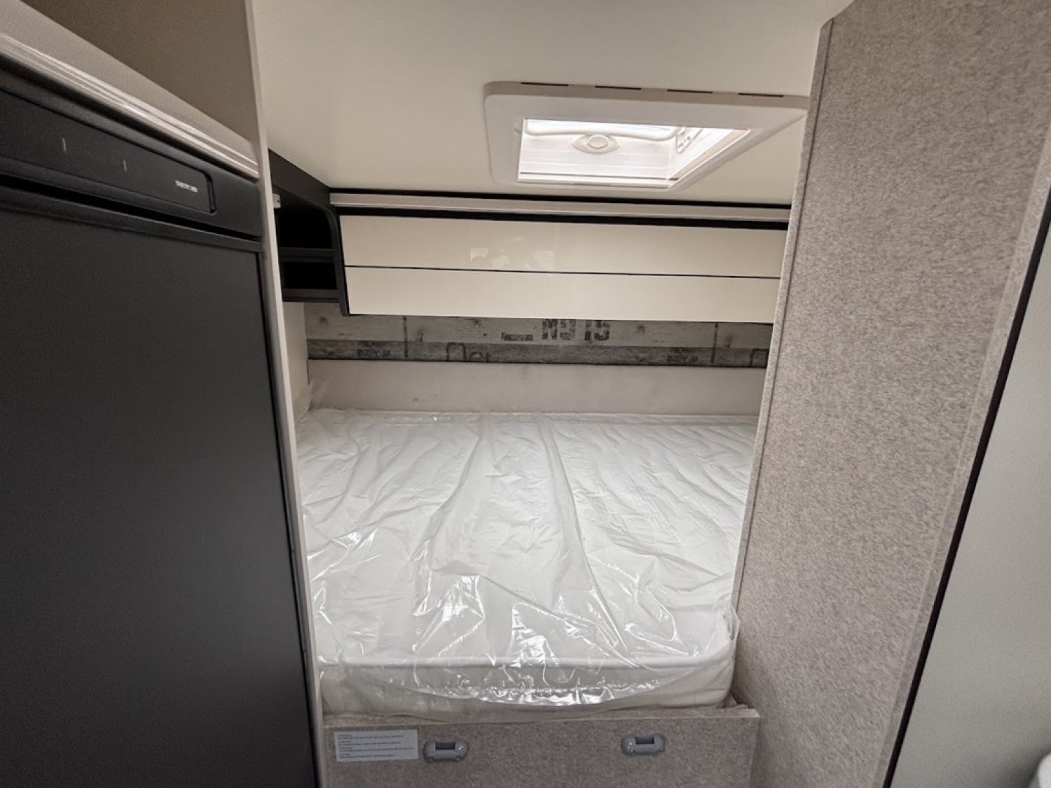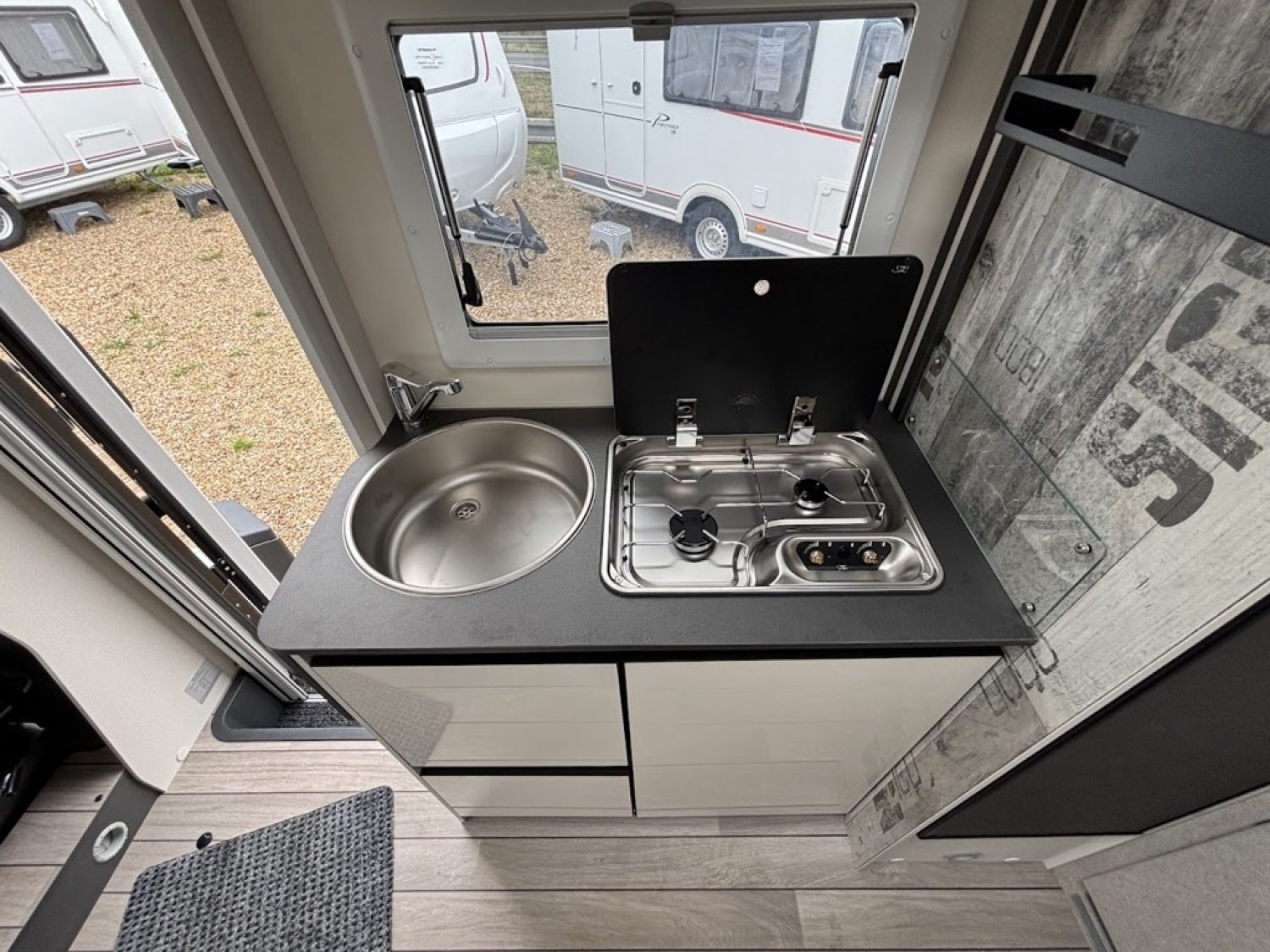 Cuisine en long, Douche à vario, Grande soute, Lit arrière transversal, lit pavillon, Salon avant sièges pivotants, WC Cassette.