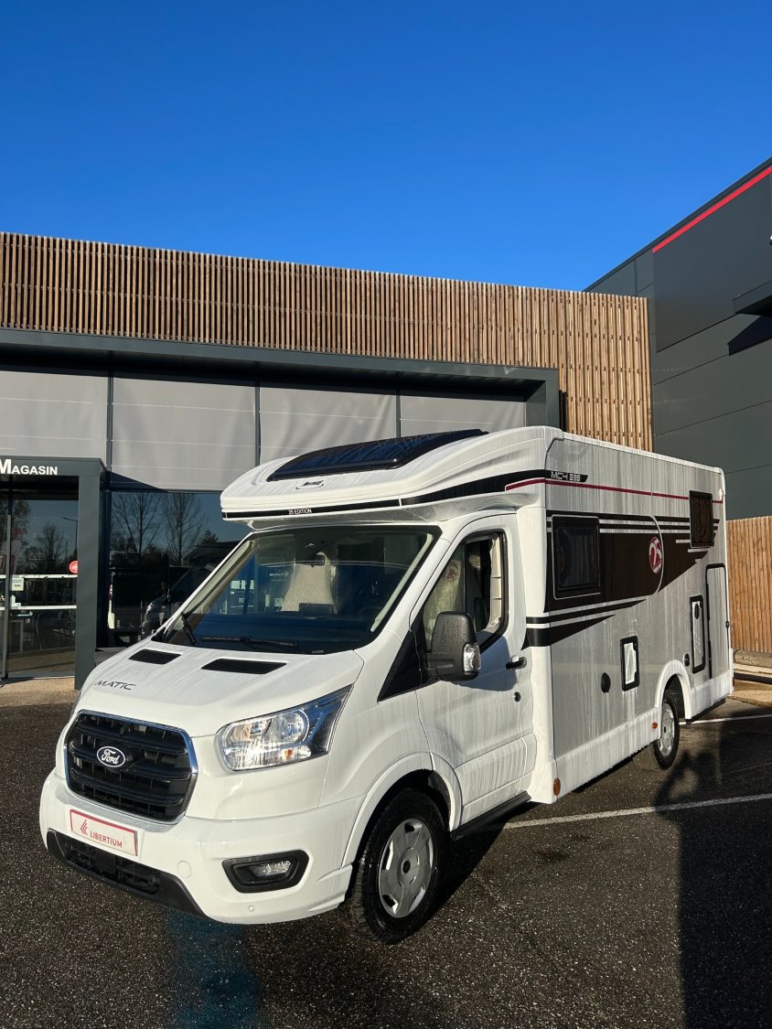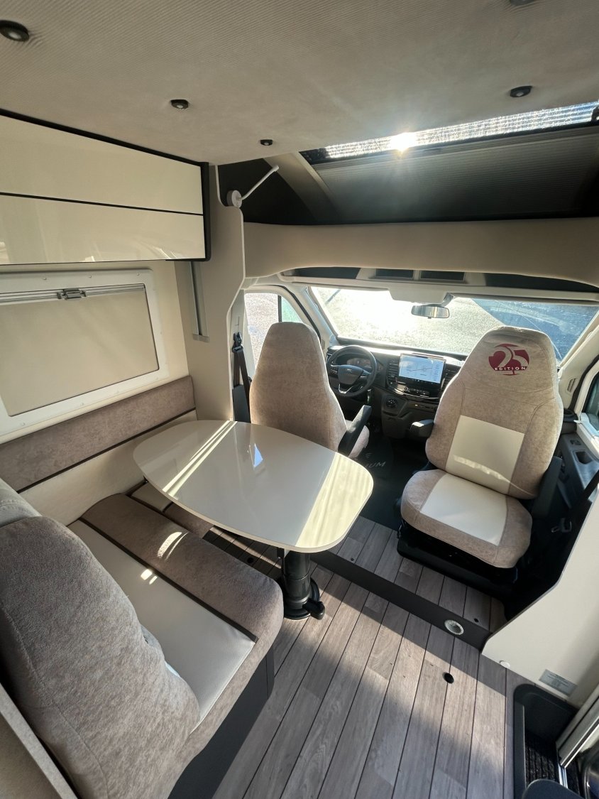 Le Slim 339 est un profilé avec une largeur réduite à 2.15m et une longueur de 6.69m. Il dispose d'une très grande soute garage avec des lits jumeaux, faciles d'accès. Sa salle de bain type Vario permet un gain de place à l'intérieur du véhicule. La version série limité 25eme Edition offre un niveau d'équipement important et une motorisation de 165 cv avec boite automatique.