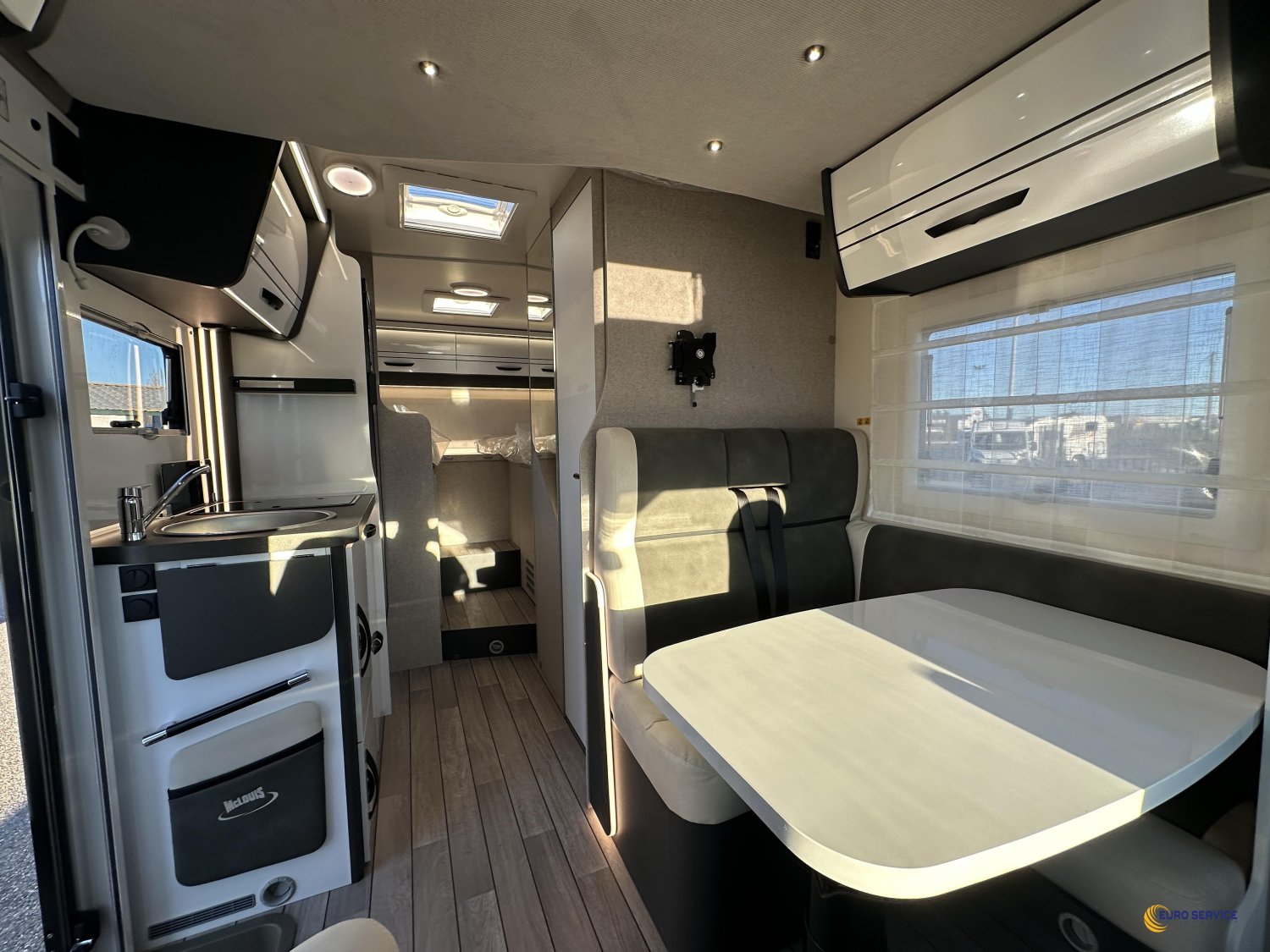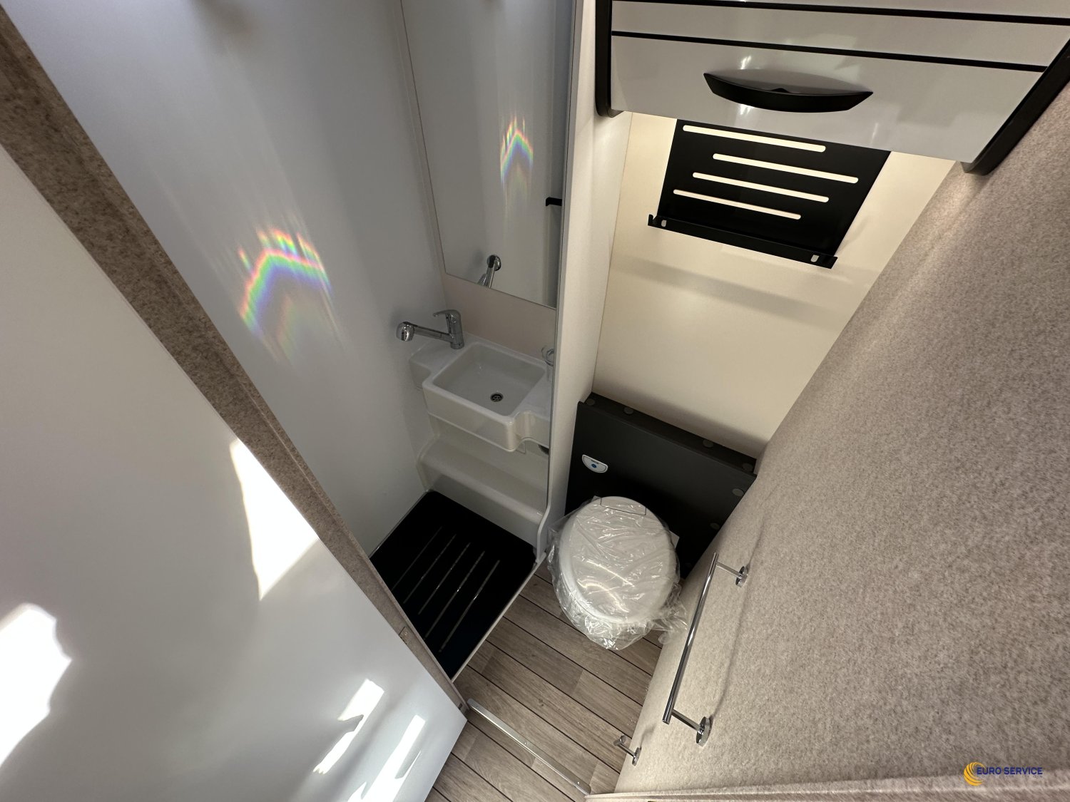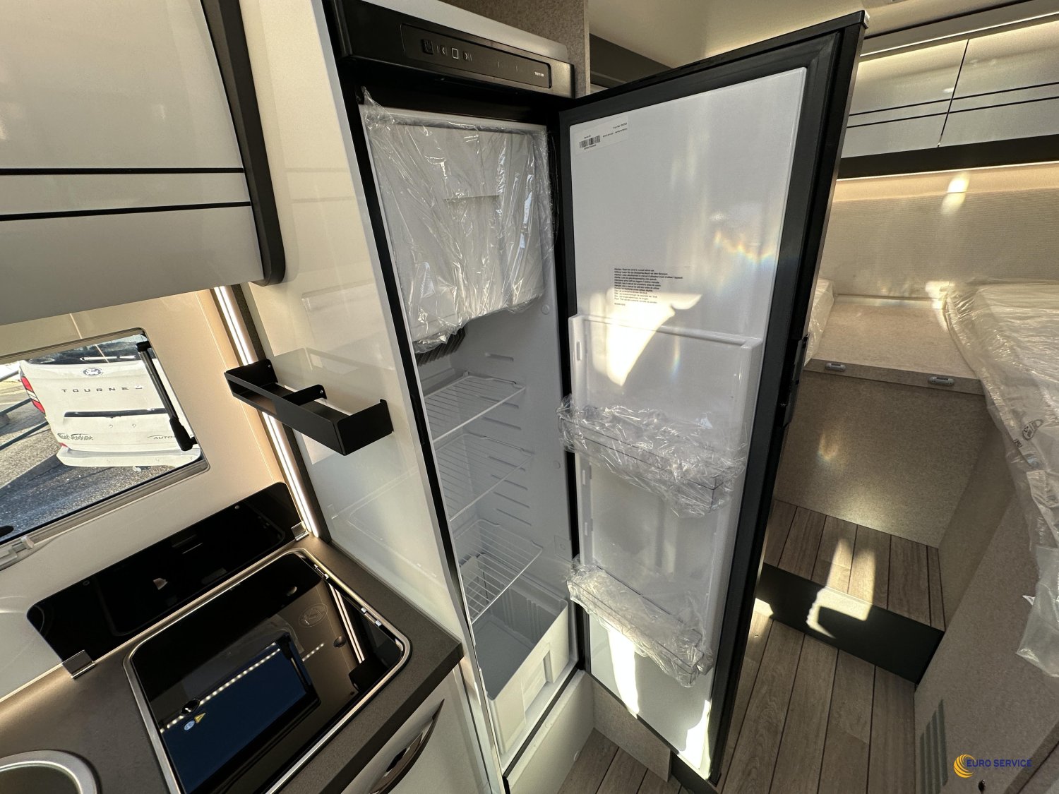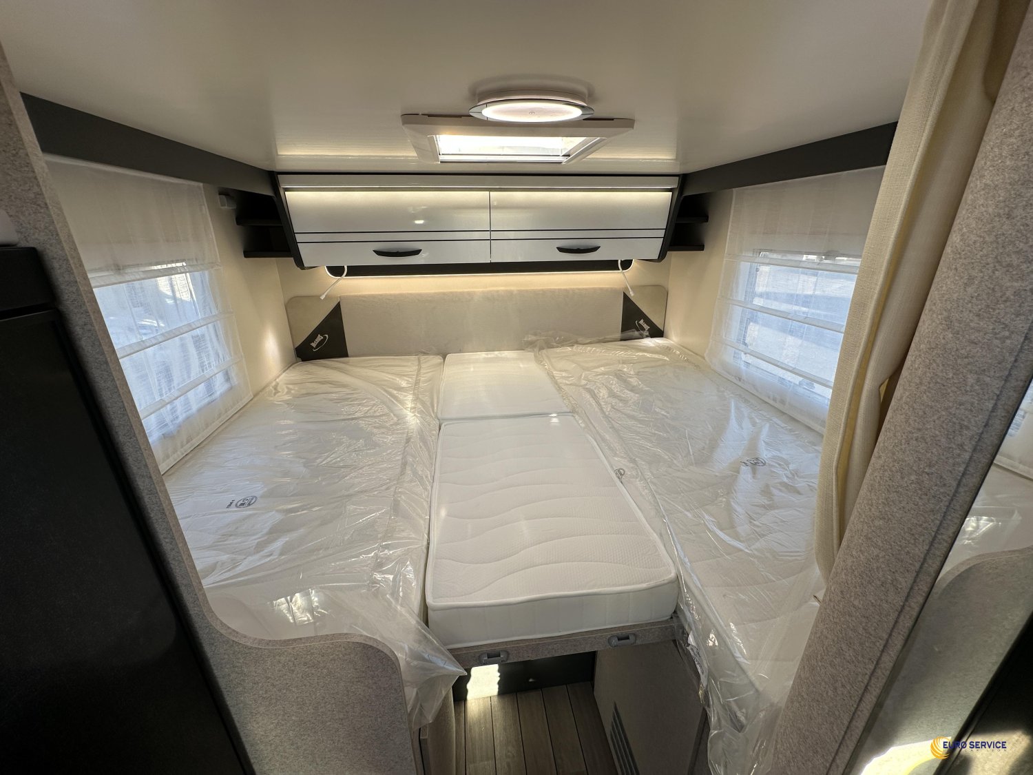 Pare-chocs avant blanc, Porte XL avec 2 points de fermeture fenêtre et fermeture centralisée, Panneau solaire 200W avec régulateur MPPT, Panneau de commandes CP-Plus, Support TV