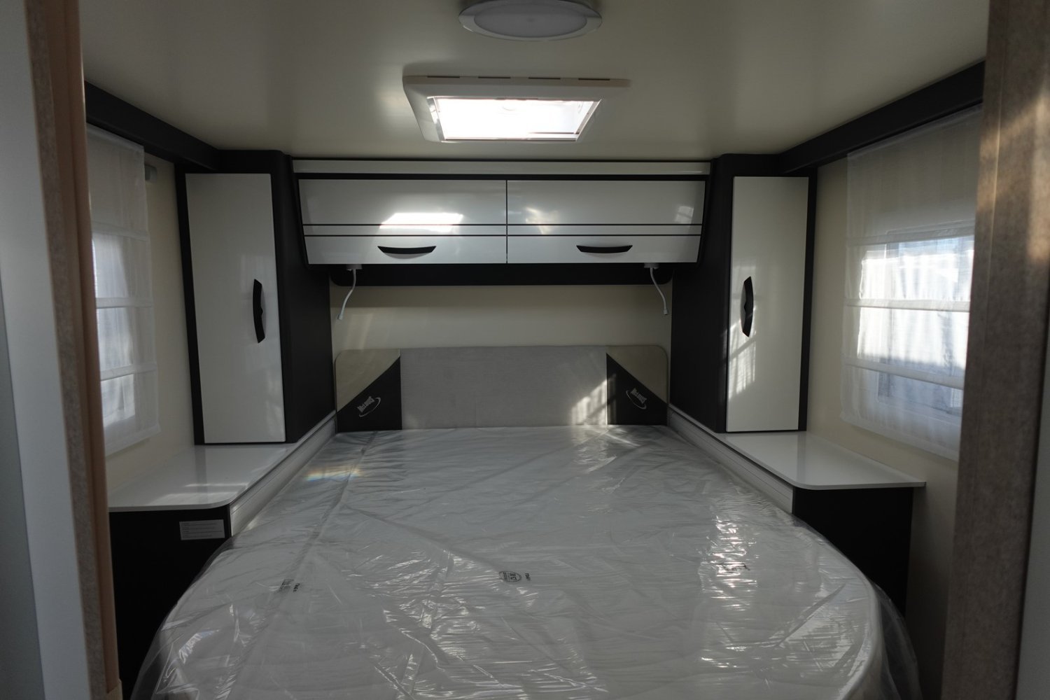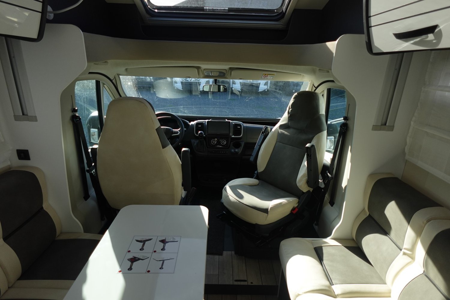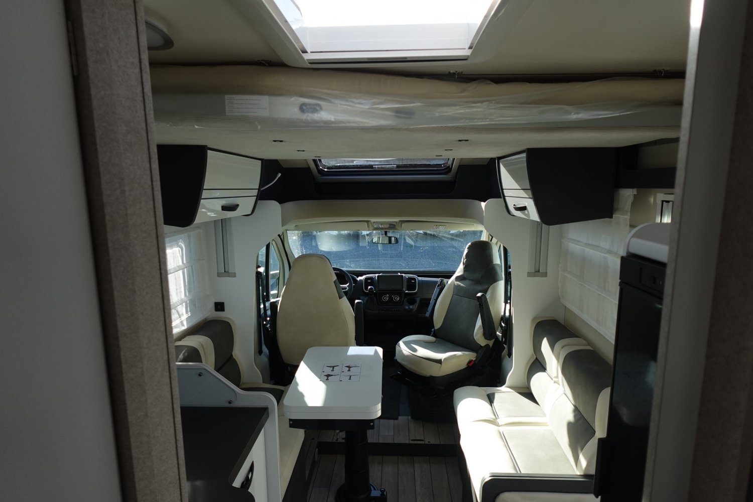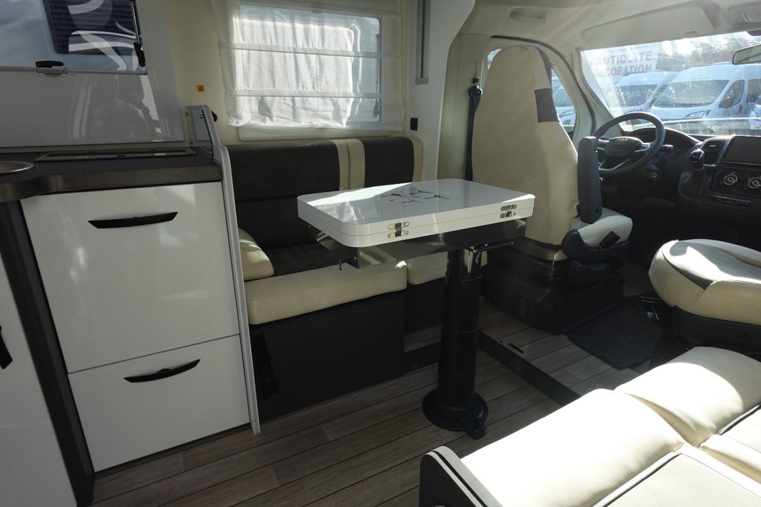 Magnifique profilé comprenant un grand salon avant panoramique avec banquette face / face, une douche indépendante de l’espace WC/lavabo, un lit central et une cuisine en L avec de nombreux rangements.
