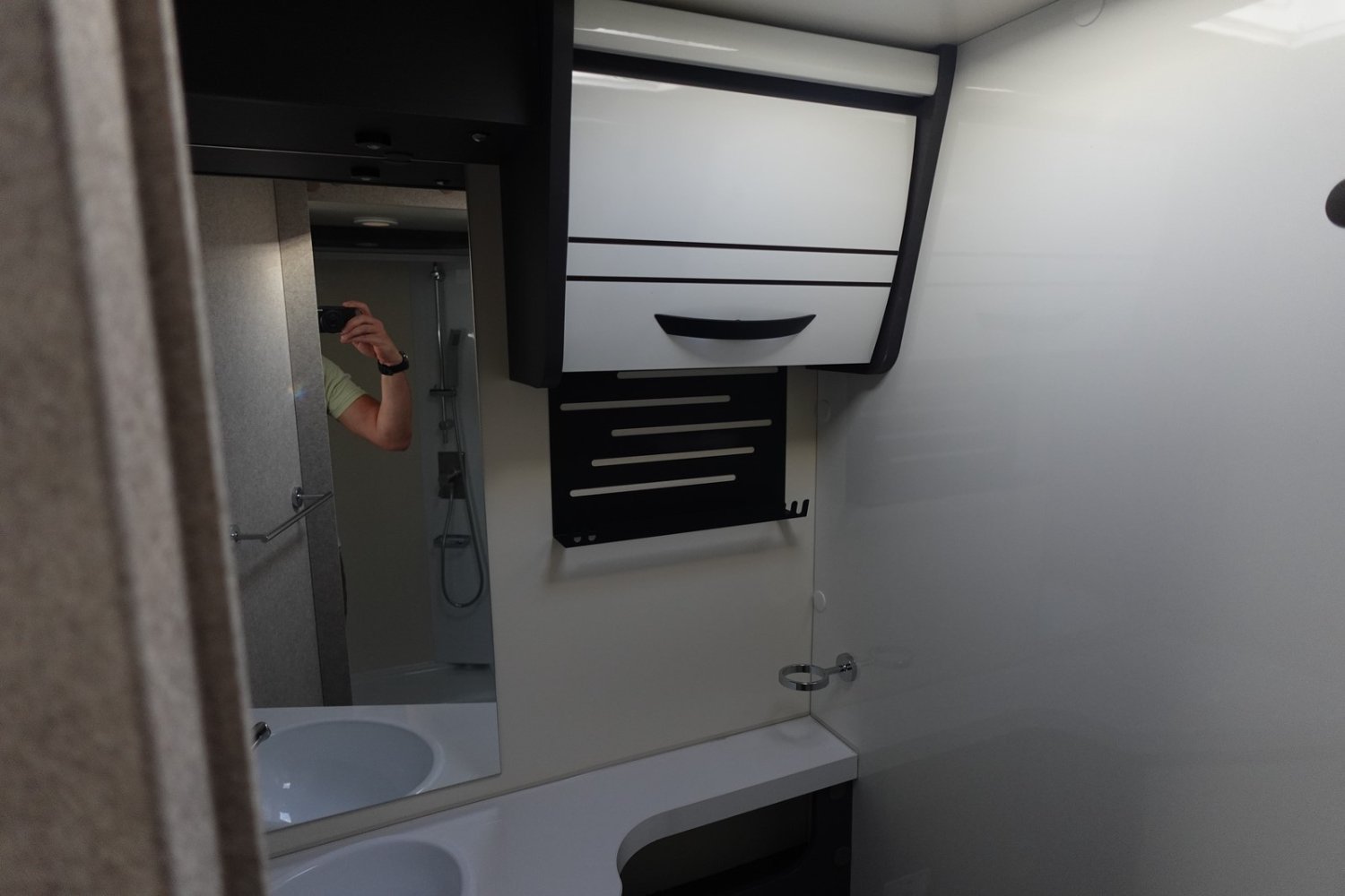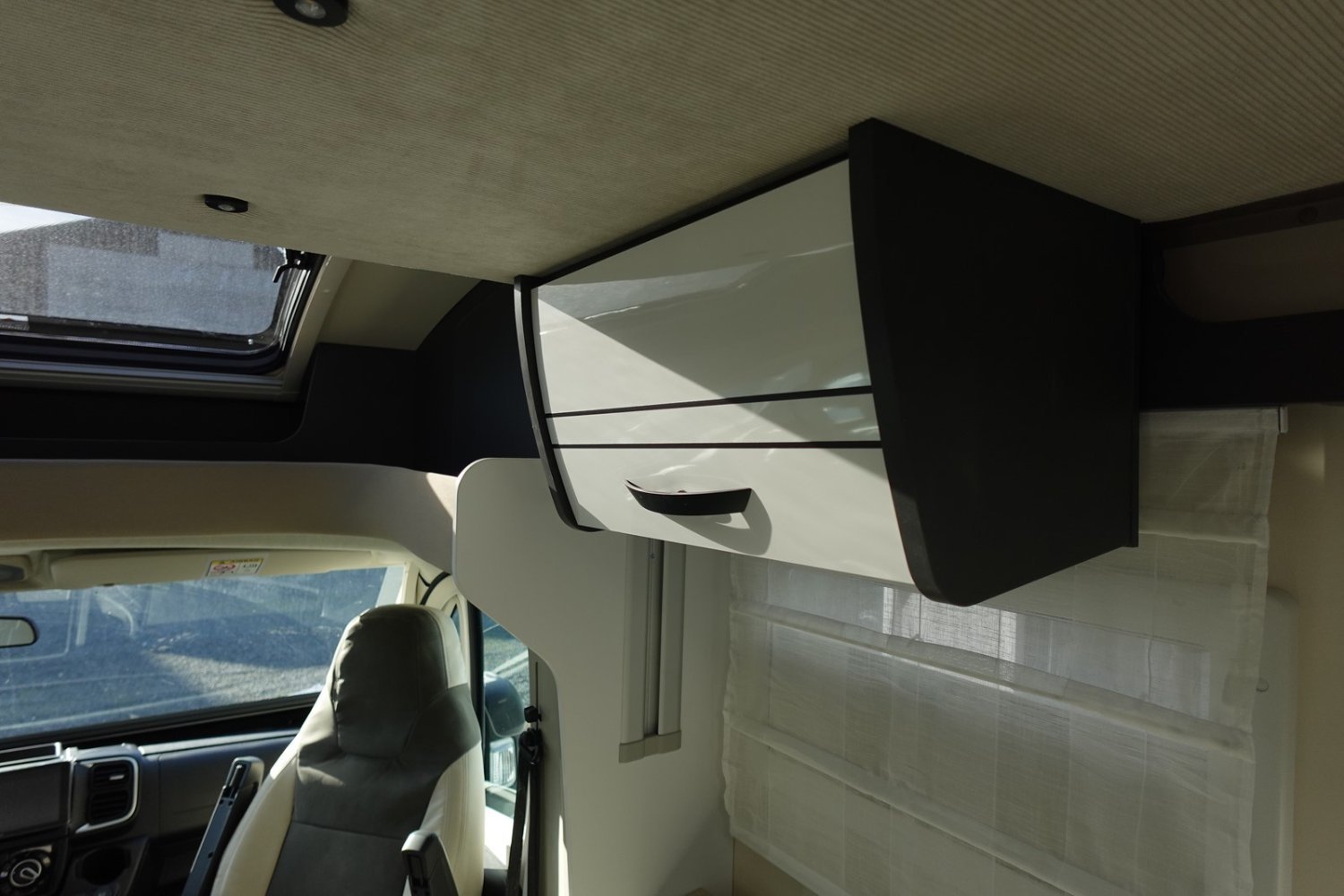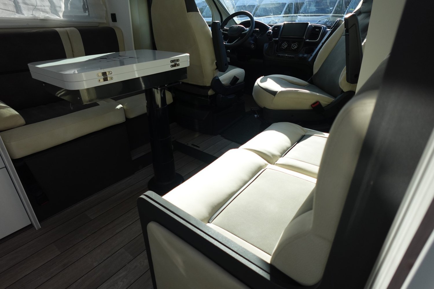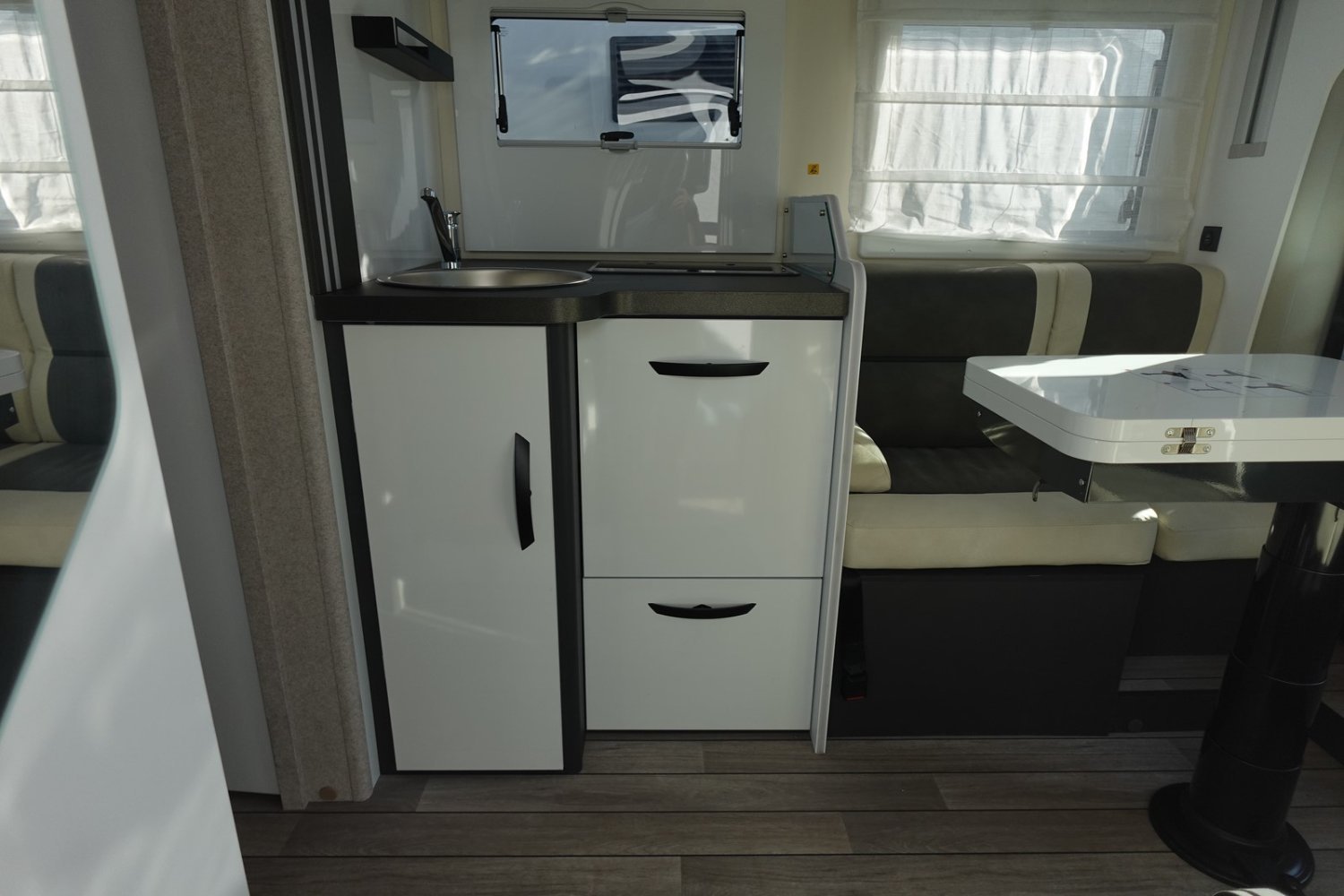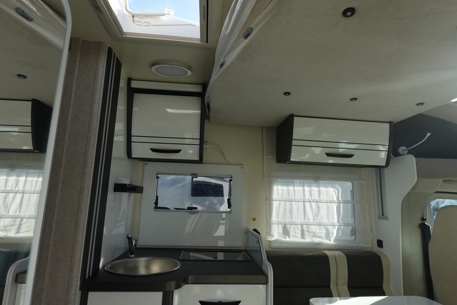 Magnifique profilé comprenant un grand salon avant panoramique avec banquette face / face, une douche indépendante de l’espace WC/lavabo, un lit central et une cuisine en L avec de nombreux rangements.