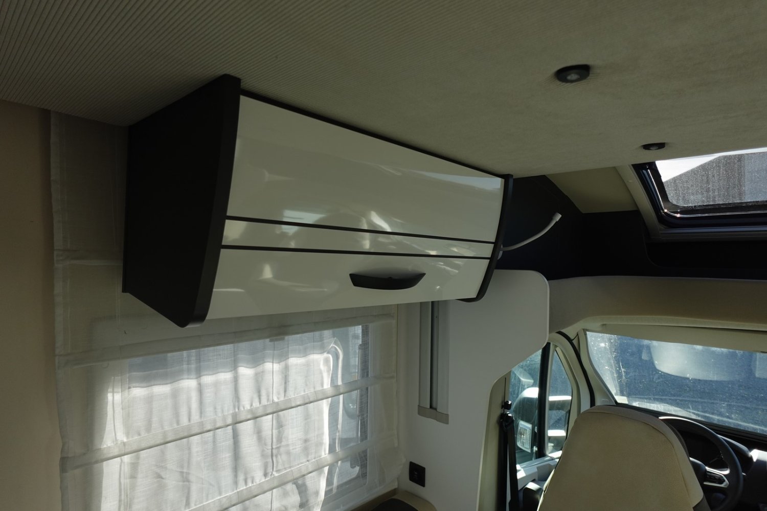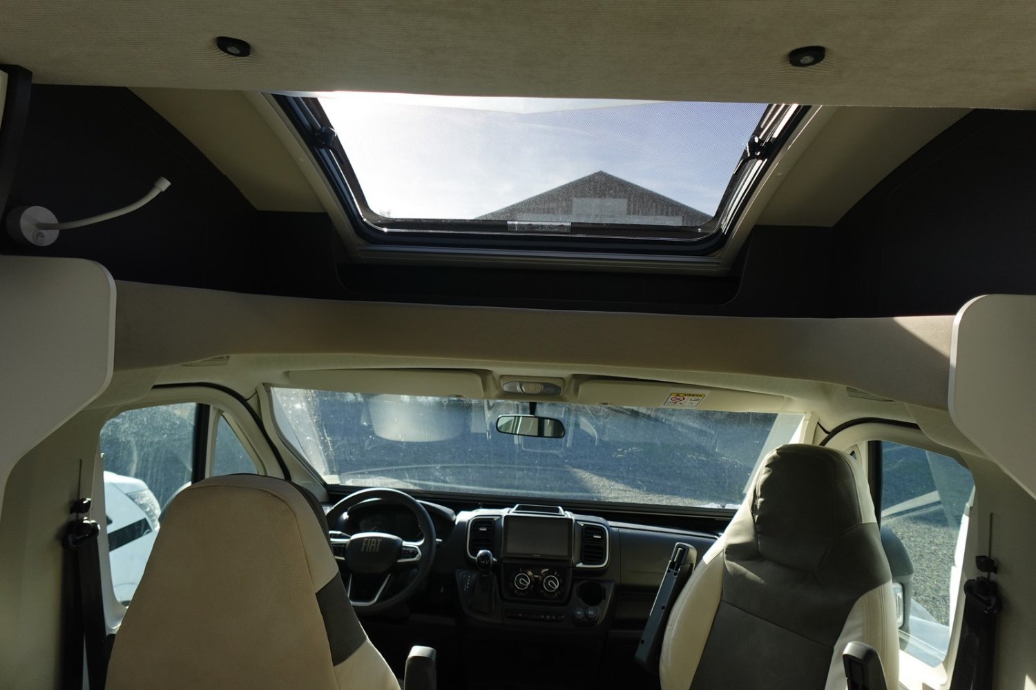 (Feux antibrouillard, Pare-chocs avant couleur carrosserie, Skid Plat Noir, Jantes en alliage 16 pouces, Volant et pommeau de levier de vitesse en cuir, Tableau de bord Techno, Contrôle de pression des pneus, Frein à main électrique, Porte cellule XL à 2 points de fermeture / fenêtre et centralisée, Panneau solaire 200 W avec régulateur MPPT, Skyroof, Store d’occultation plissé en cabine, Support TV, Housses de sièges cabine)