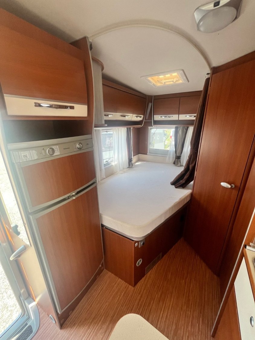 A l’arrière se trouve un superbe Lit à la Française pour 2 personnes avec de multiples placards au-dessus du lit pour un maximum de rangement