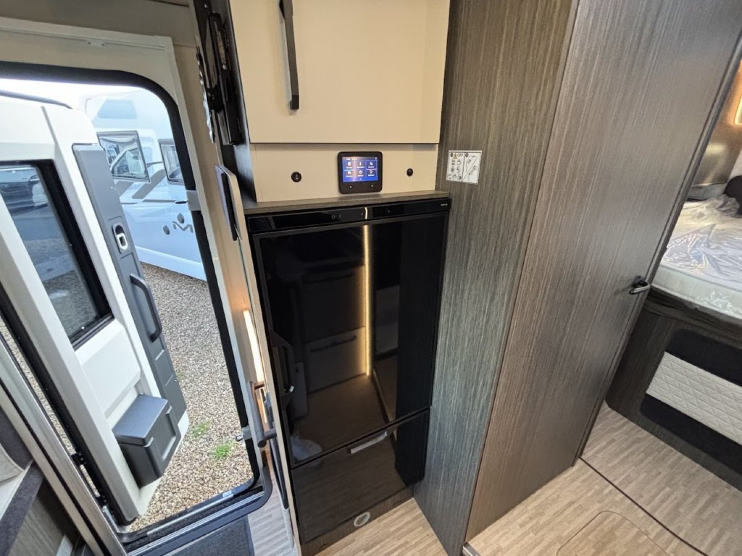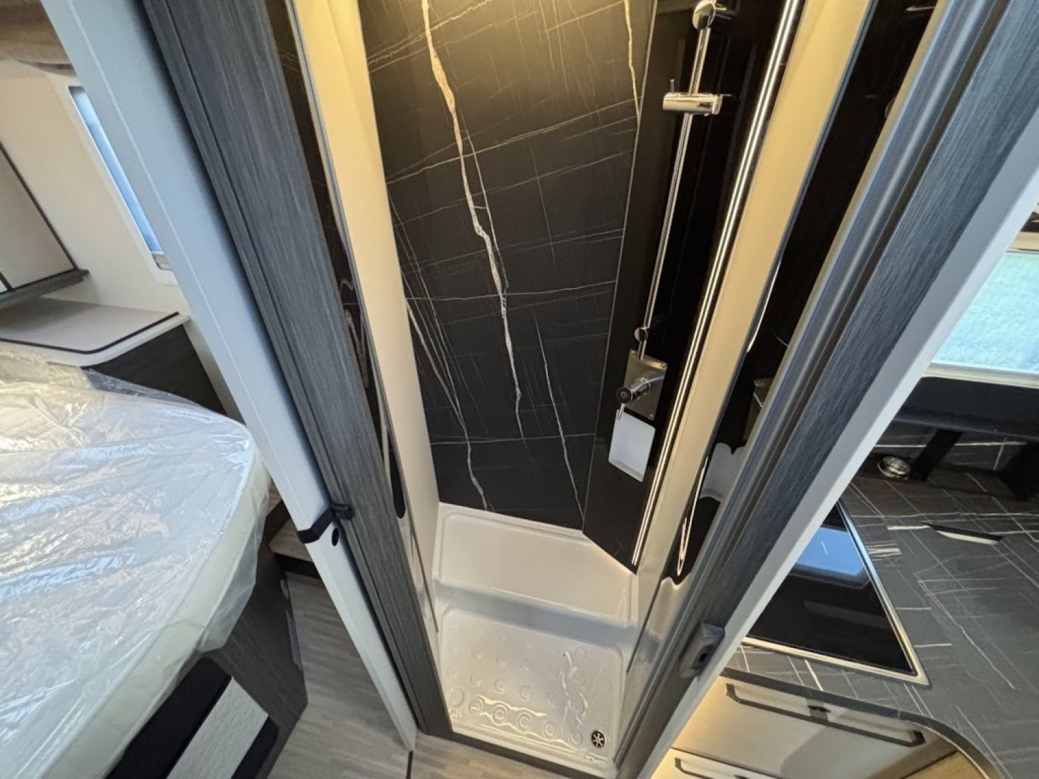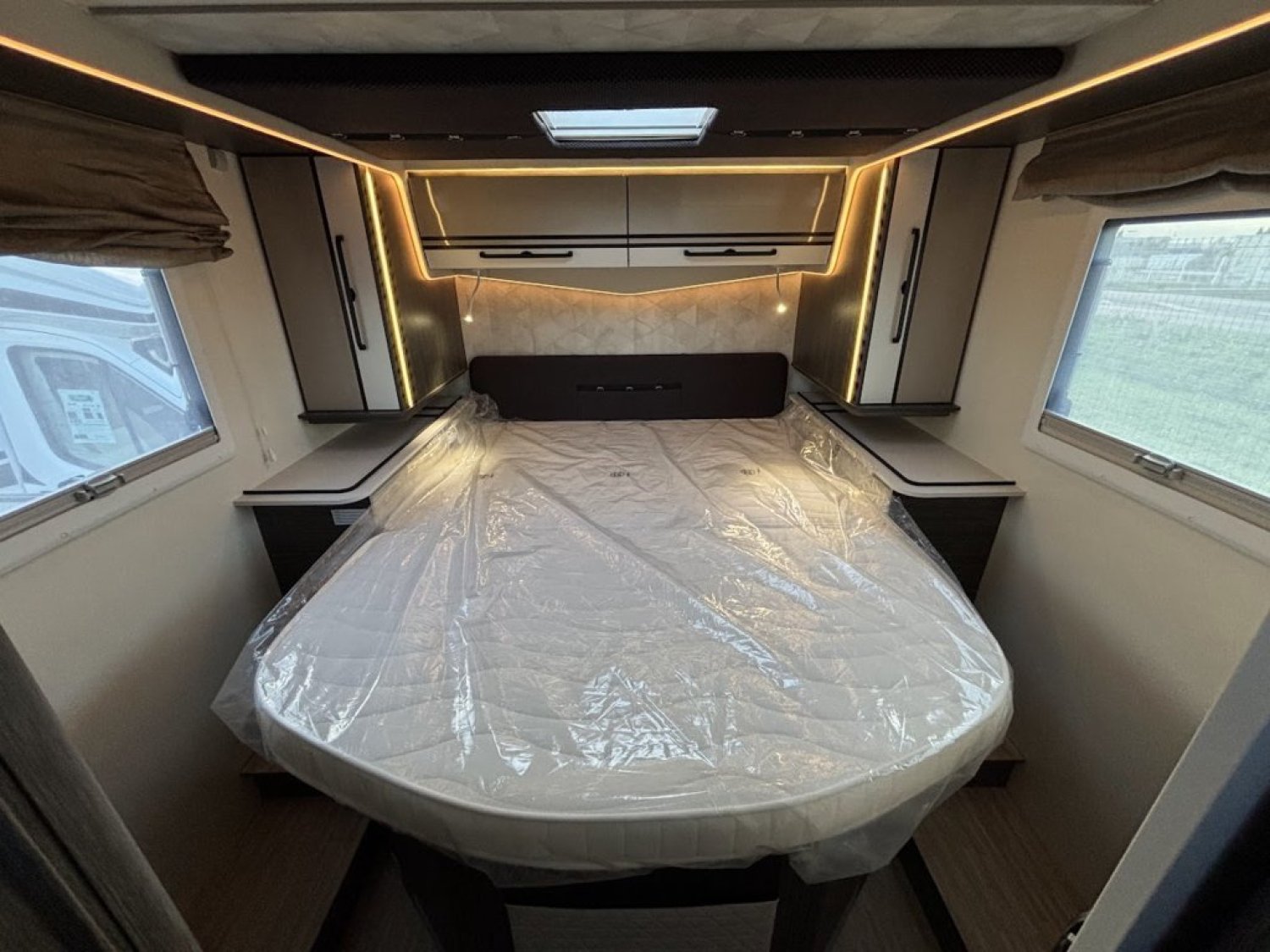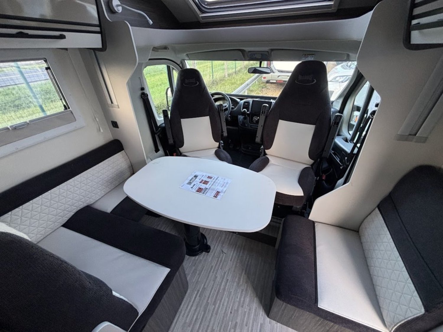 Cuisine en L, Douche indépendante, Grande soute, Lit central, Lit dînette avant, lit pavillon, Salon avant sièges pivotants, Salon en L, Soute réglable en hauteur, WC Cassette.