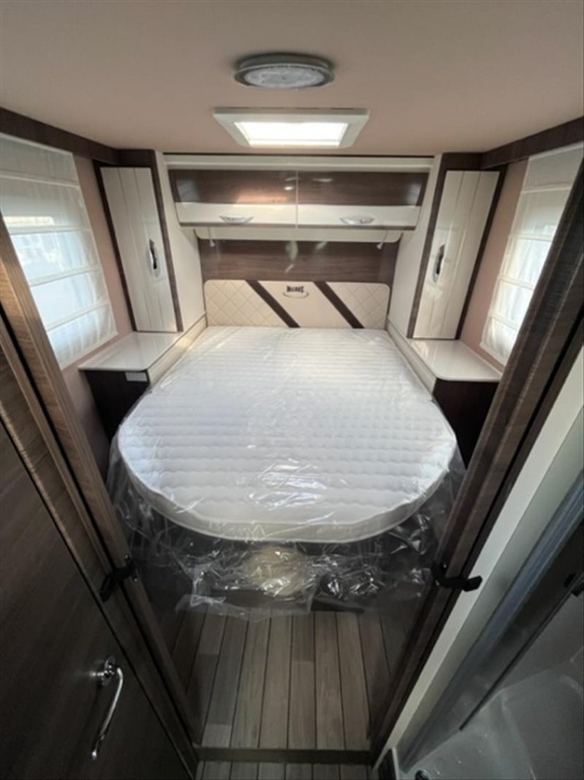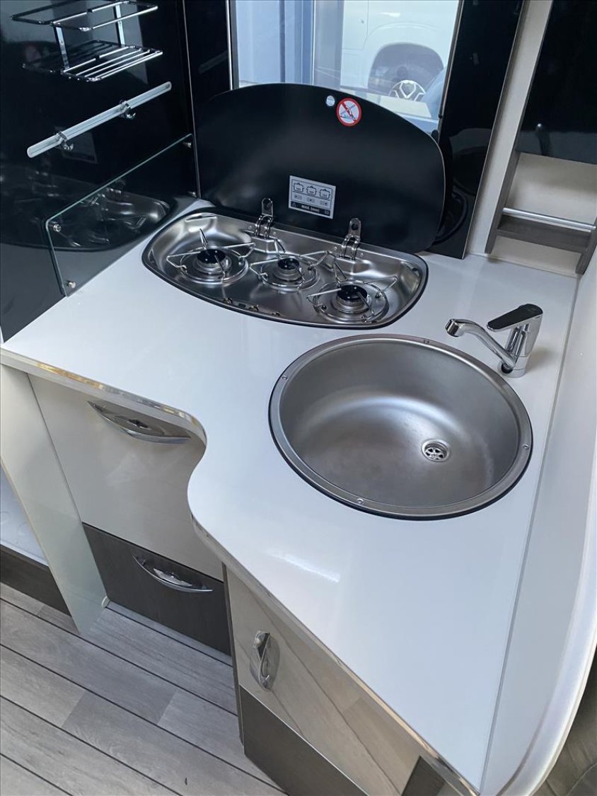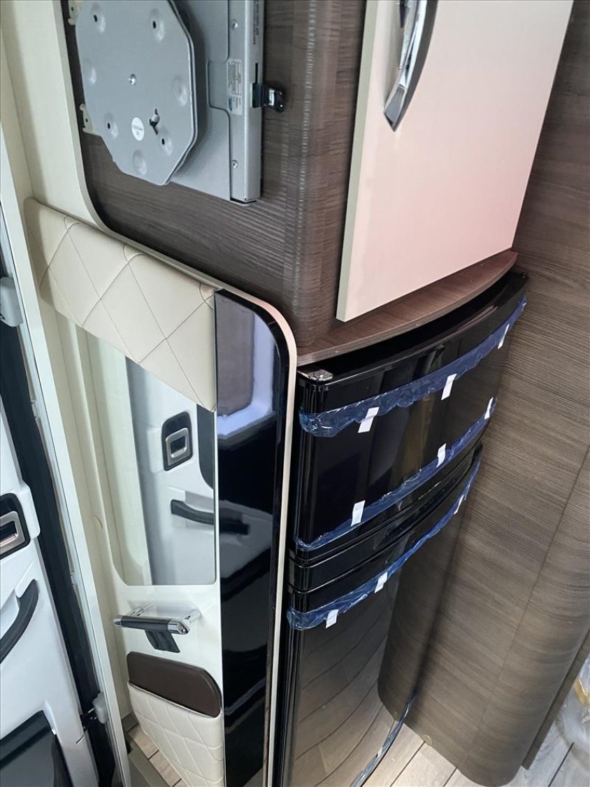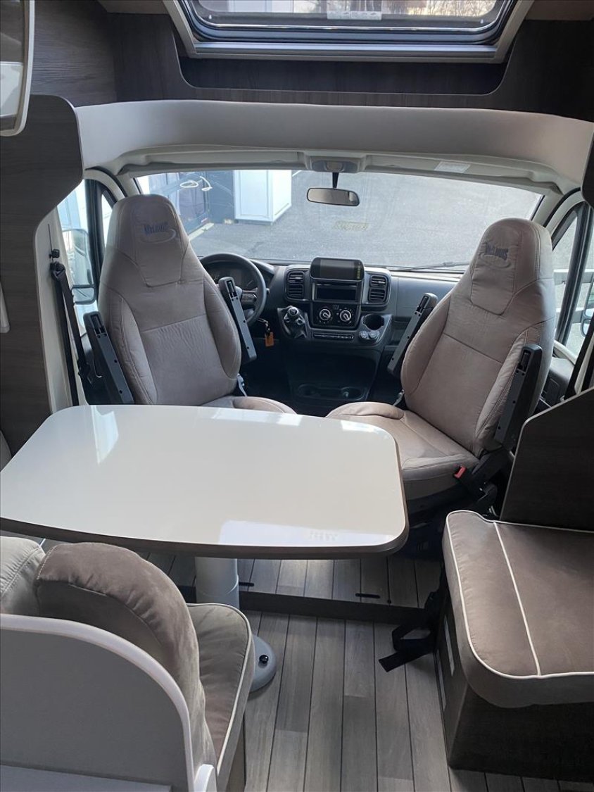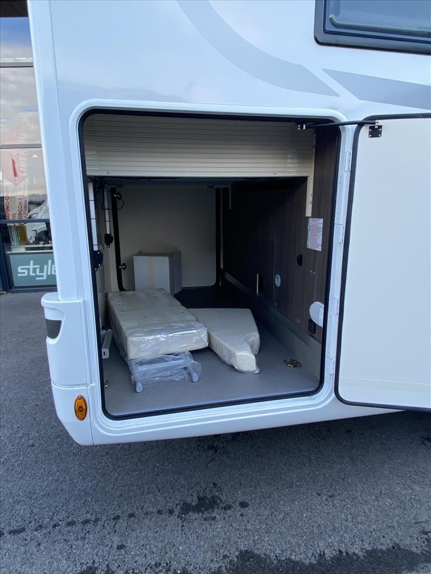 5e place homologuée, ABS/ESP, Start&Stop, double airbag, régulateur de vitesse, Baies Seitz, Cabine blanche avec pare-chocs blanc, Chauffage Truma combi 4 gaz (4000W), Fix&Go, Housses de sièges, Jantes en acier 15" standard, Lit de pavillon électrique, Moustiquaire coulissante plissée (porte d'entrée), Panneau de commande CP-Plus, Plan de cuisson 3 feux linéaires, Porte cellule XL à 2 points, avec fenêtre et fermeture centr, Porte rigide séparation jour/nuit, Prise 220 v dans le garage, Prises usb dans la chambre, Réfrigérateur trimixte automatique 145 l, 2 portes, Réservoir diesel 75 l, Rétroviseurs dégivrants, climatisation cabine, Skyroof, Store d'occultation thermique cabine, Support TV, Transformation de la dinette en lit (lits supplémentaires)