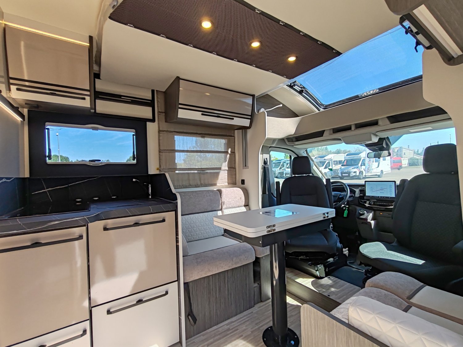 SUPPORT TV, CHAUFFAGE TRUMA COMBI GAZ EN 4000 W, RECONNAISSANCE DES PANNEAUX DE SIGNALISATION DE VITESSE, RESERVOIR EAUX USEES ISOLE ET CHAUFFE, ABS / ESP, PREDISPOSITION DOUBLE BATTERIE LITHIUM, PHARES ADAPTATIFS, RECHAUD 2 FEUX, EVIER DE CUISINE AVEC BONDE INVISIBLE ET PORTE-EPONGE, CAPTEURS DE STATIONNEMENT AVANT, ECRAN TACTILE 12" APPLE CARPLAY & ANDROID AUTO, PANNEAU SOLAIRE 200W AVEC REGULATEUR MPPT, STORE EXTERIEUR 4,5 M, PRISE EXTERNE DE GAZ, LIT DE PAVILLON ELECTRIQUE, PORTEUR :, BOITE DE VITESSES AUTOMATIQUE, LIT ARRIERE REGLABLE ELECTRIQUEMENT EN HAUTEUR, JANTES EN ACIER 16", RESERVOIR DIESEL 70 L, REGULATEUR DE VITESSE AVEC "INTELLIGENT SPEED ASSIST", FEUX ANTI-BROUILLARD, FREIN A MAIN ELECTRIQUE, CAMERA DE RECUL, SYSTEME DE FREINAGE AVEC ATTENUATION DE COLLISION N2, START & STOP, CELLULE :, CARROSSERIE EXPS, ISOFIX, PORTE CELLULE XL AVEC 2 POINTS DE SECURTE, REFRIGERATEUR A COMPRESSION DE 158 L AVEC 2 PORTES, MOUSTIQUAIRE DE PORTE CELLULE, ALERTE ET ASSISTANCE DE MAINTIEN DE VOIE, PANNEAU DE CONTROLE TRUMA INETX