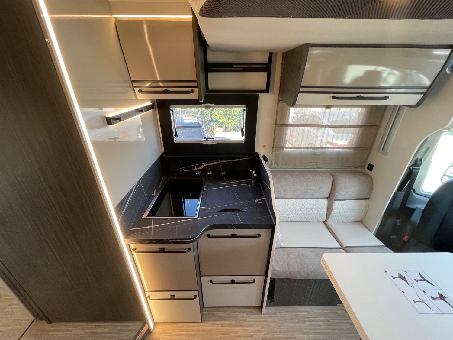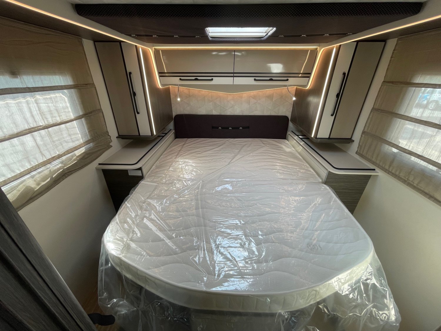 STORE EXTERIEUR, FRIGO COMPRESSION 158 L, DOUCHE GARAGE, STORE OCCULTANT PLISSE, PANNEAU SOLAIRE 200W, SKYROOF, SU¨PPORT TV, RESERVOIR EAUX USEES ISOLE CHAUFFE, BOITE AUTOMATIQUE, CAMERA DE RECUL, RES DIESEL 70 L, FREIN A MAIN ELEC, ECRAN TACTILE 12", LIT ARRIERE ELECTRIQUE, CHAUFFAGE TRUMA COMBI 4 GAZ 4000W