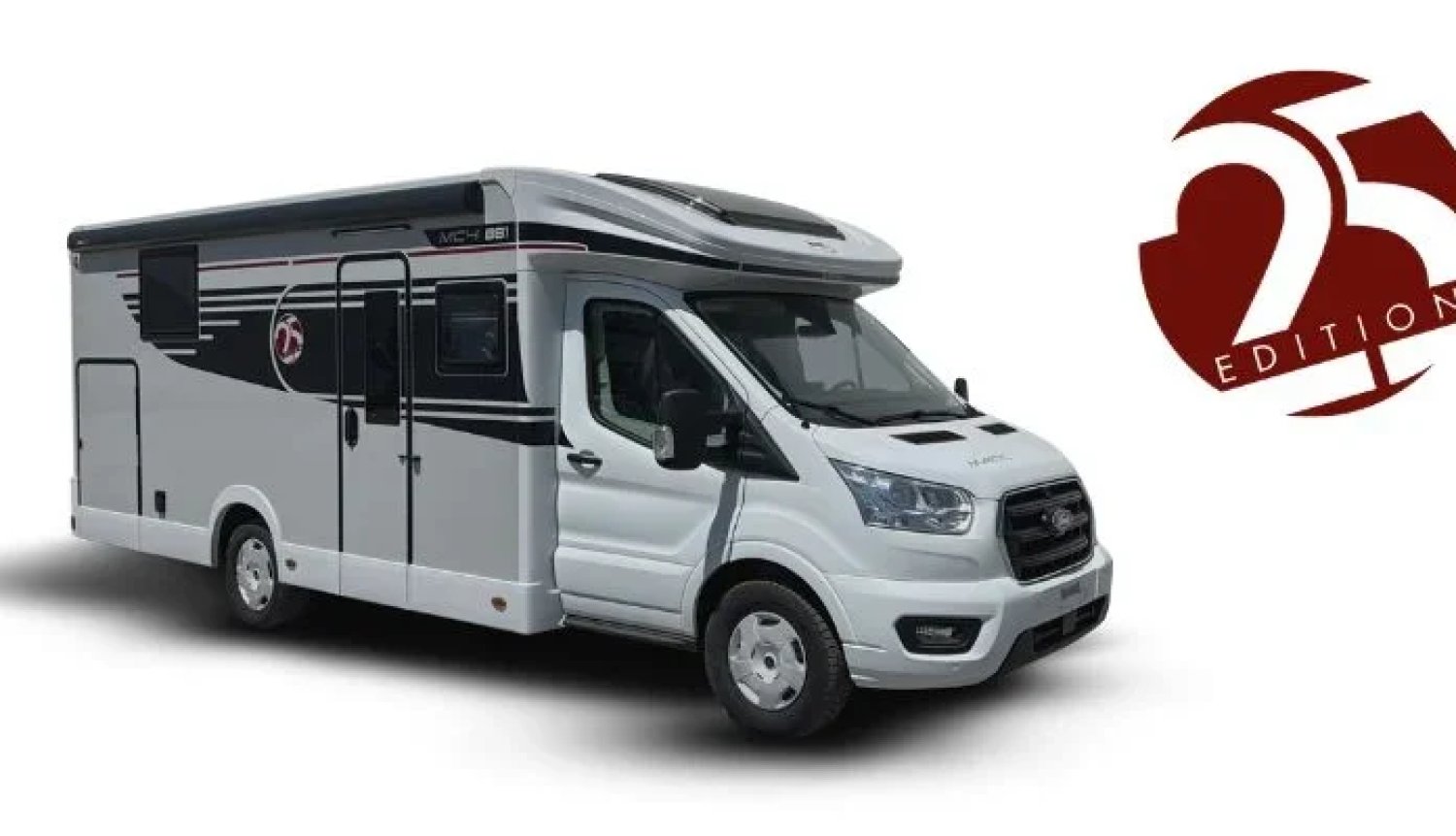 Pack Série 800 Mc4 Ford (Motorisation 165 CV ; Feux « High Séries » adaptatifs ; Boîte à gants avec serrure ; Habillages intérieurs et tableau de bord «Trend» ; Pare-chocs et bas de caisse latérales peints couleur de la carroserie; Porte XL à 2 points avec fenêtre et fermeture centralisée; Support TV 32 »; Skyroof ; Housses de siège coordonnées avec les tissus ; Panneau solaire 200 W avec régulateur MPPT ; Store occultants plissés cabine)