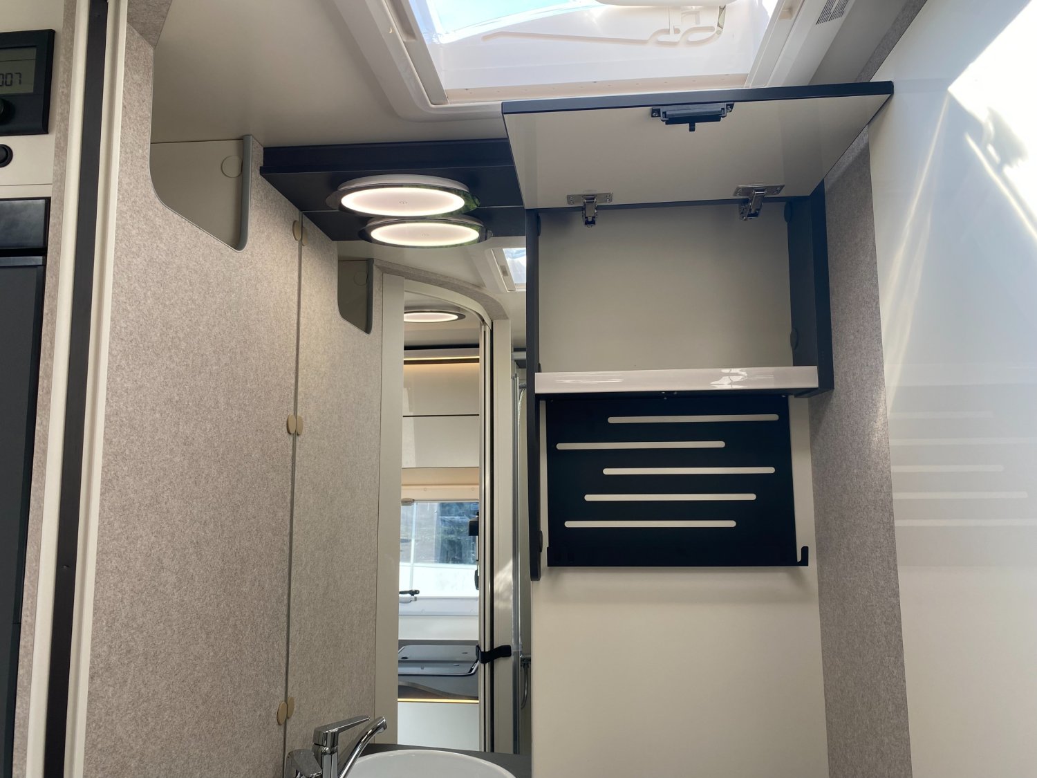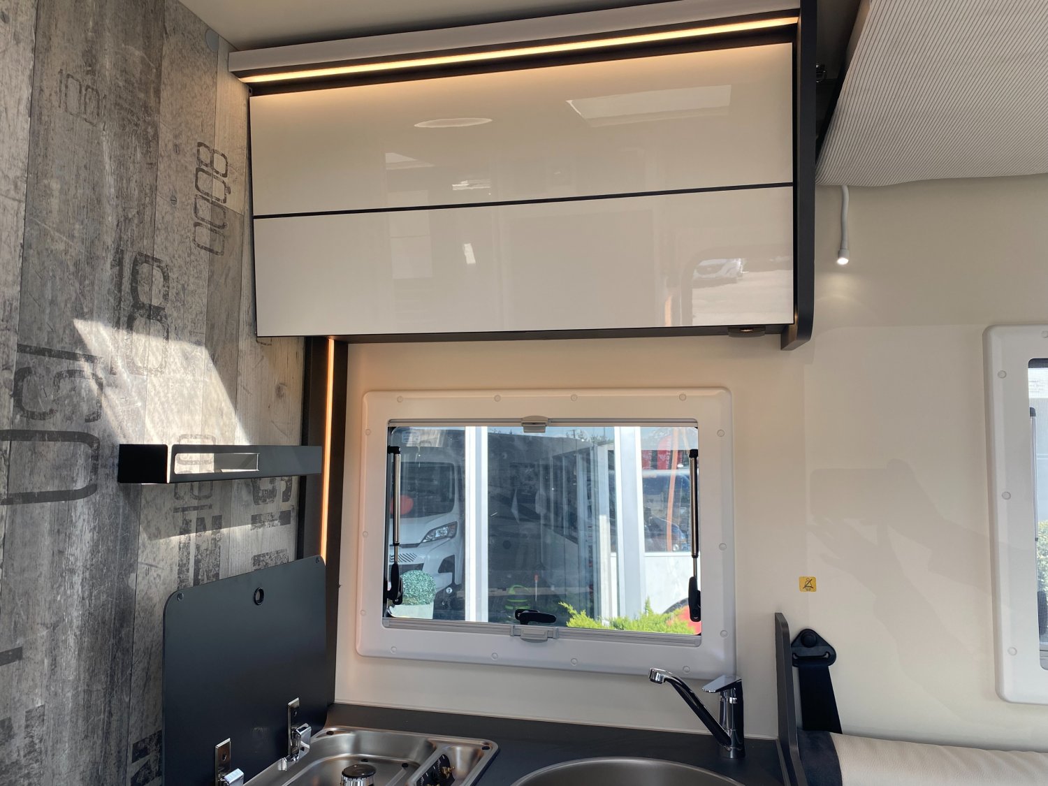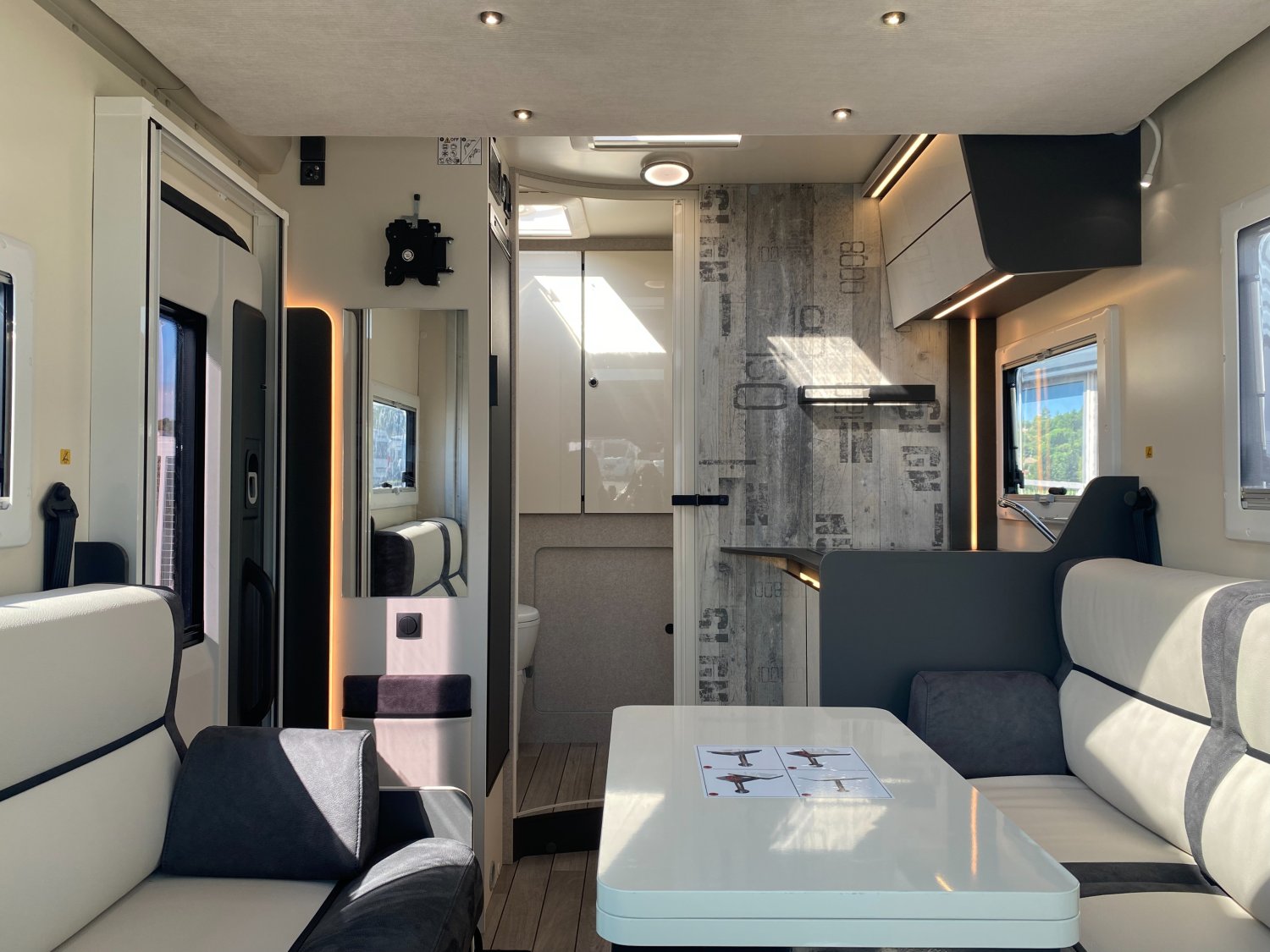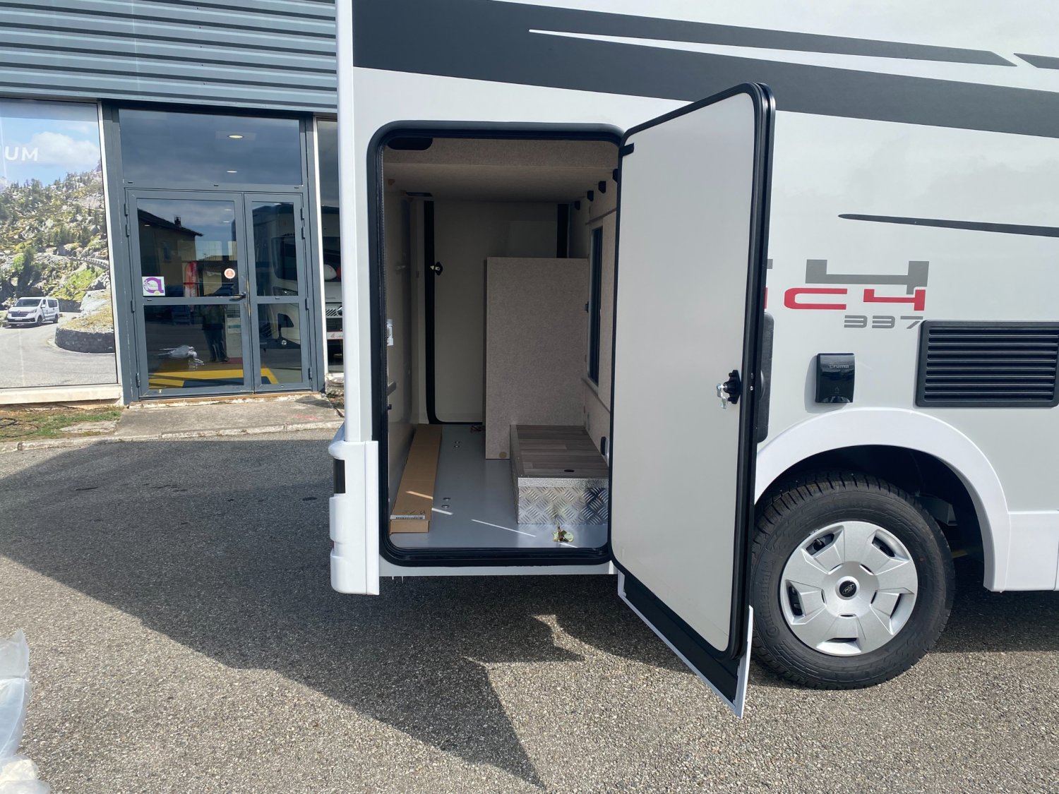 Modèle phare de la marque, le SLIM 337 est un profilé compact avec une largeur de seulement 2.15m. Ce véhicule dispose d'un grand lit de pavillon, un séjour immense, une grande cuisine latérale et une grande salle de bain arrière avec cabine de douche indépendante et toilette séparé. On y retrouve également un très beau dressing et une soute garage.
