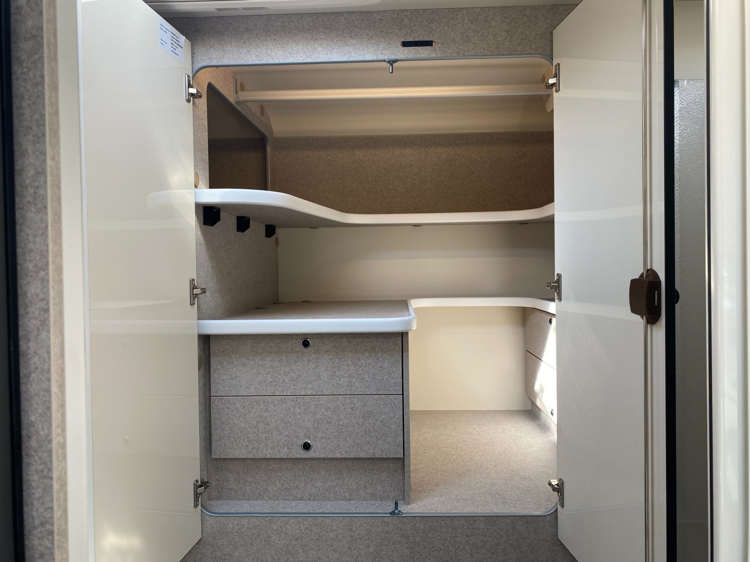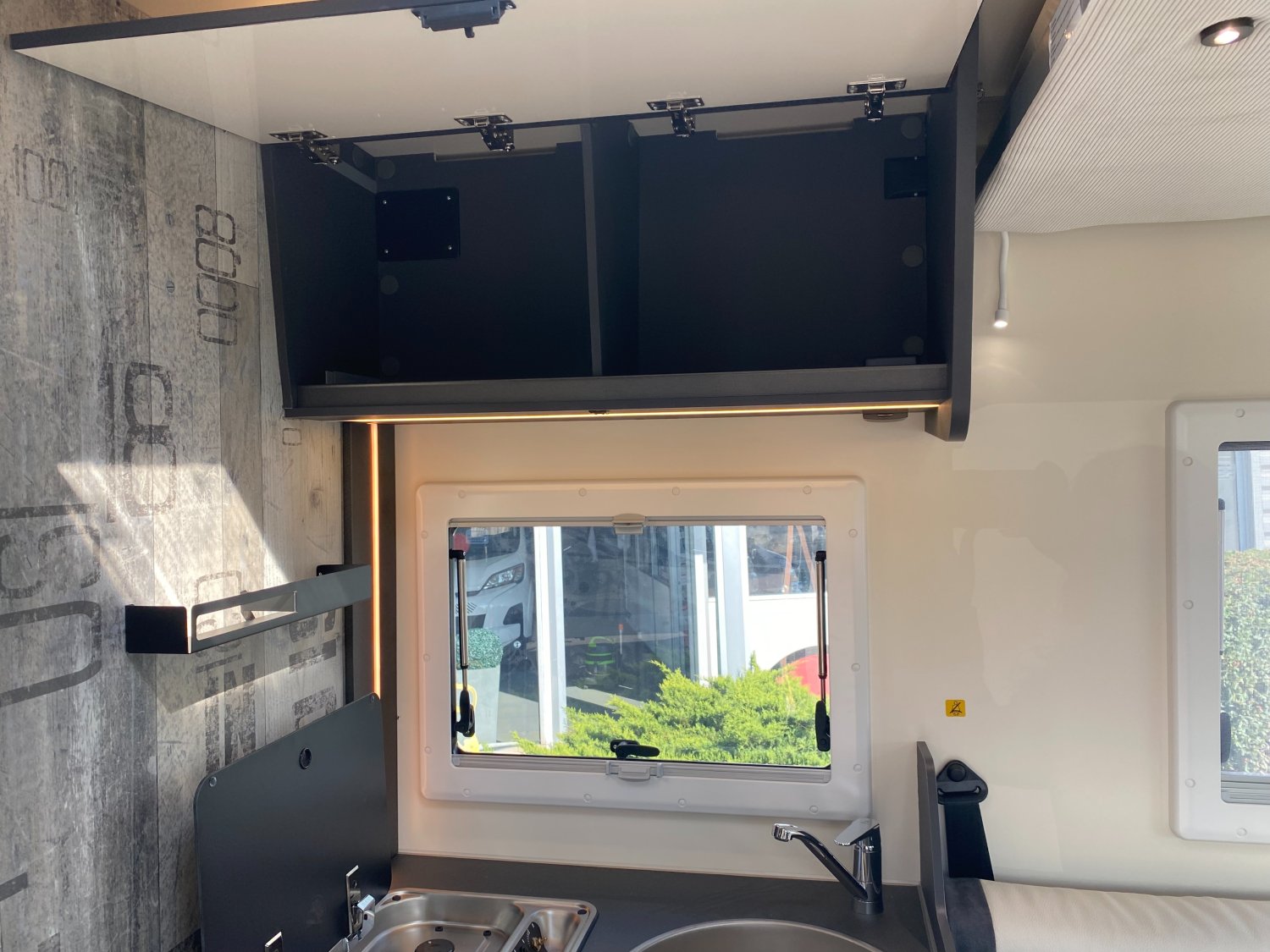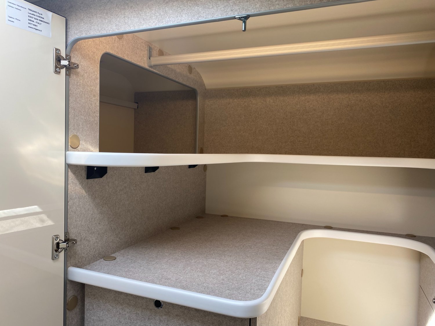Modèle phare de la marque, le SLIM 337 est un profilé compact avec une largeur de seulement 2.15m. Ce véhicule dispose d'un grand lit de pavillon, un séjour immense, une grande cuisine latérale et une grande salle de bain arrière avec cabine de douche indépendante et toilette séparé. On y retrouve également un très beau dressing et une soute garage.