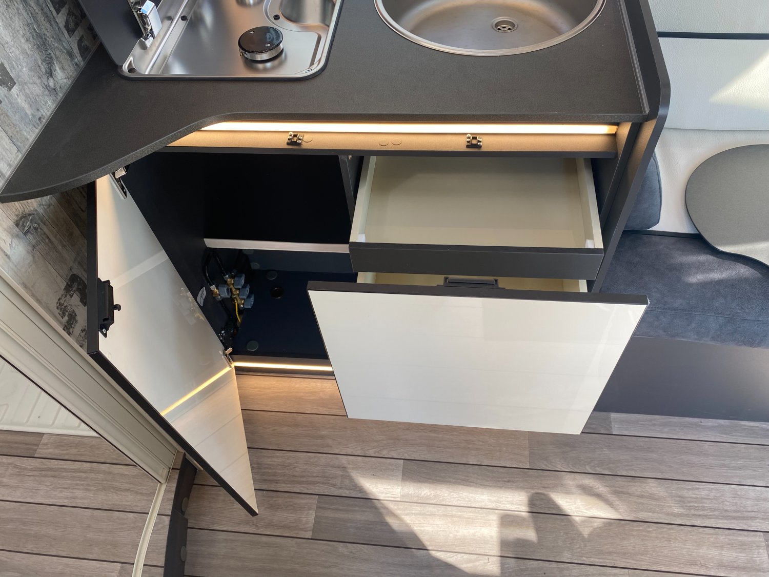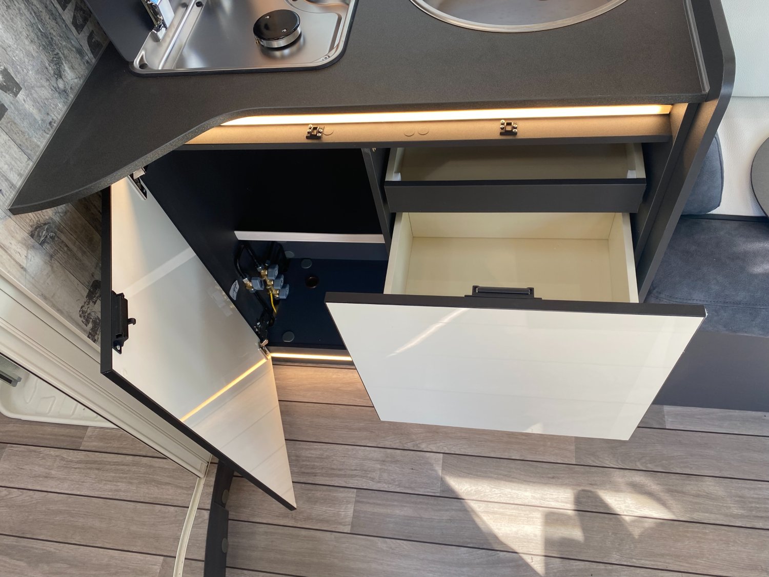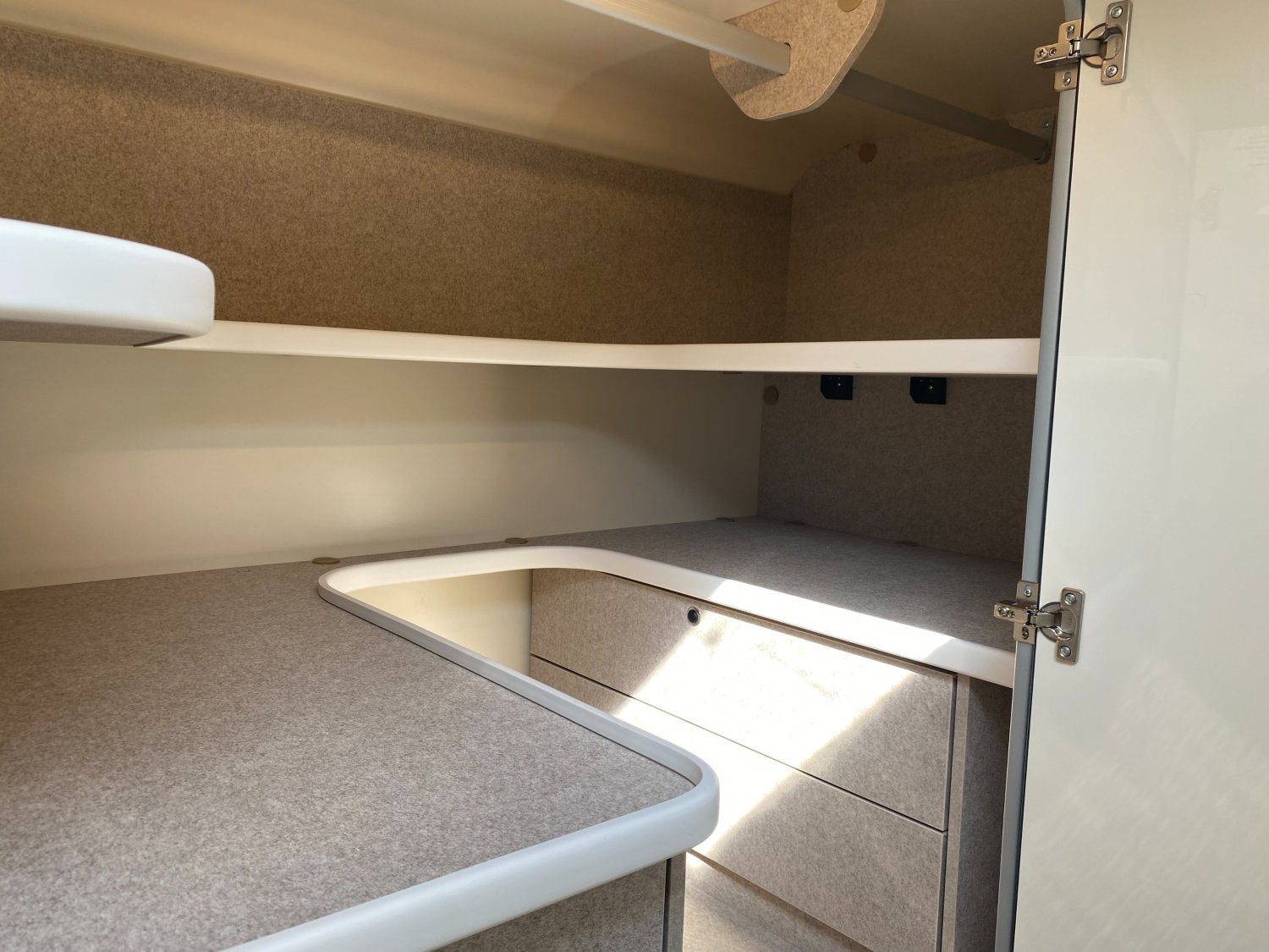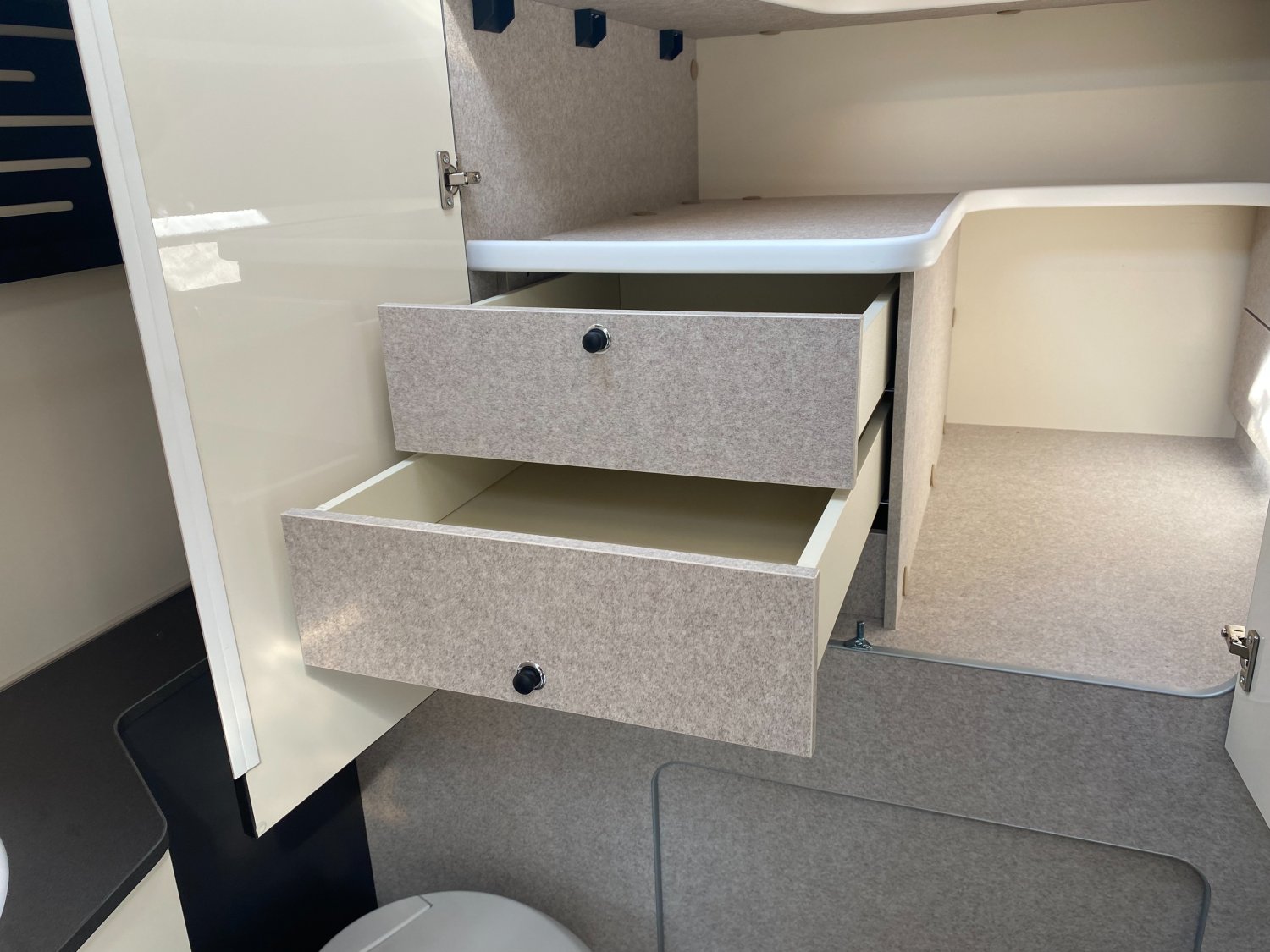 Modèle phare de la marque, le SLIM 337 est un profilé compact avec une largeur de seulement 2.15m. Ce véhicule dispose d'un grand lit de pavillon, un séjour immense, une grande cuisine latérale et une grande salle de bain arrière avec cabine de douche indépendante et toilette séparé. On y retrouve également un très beau dressing et une soute garage.