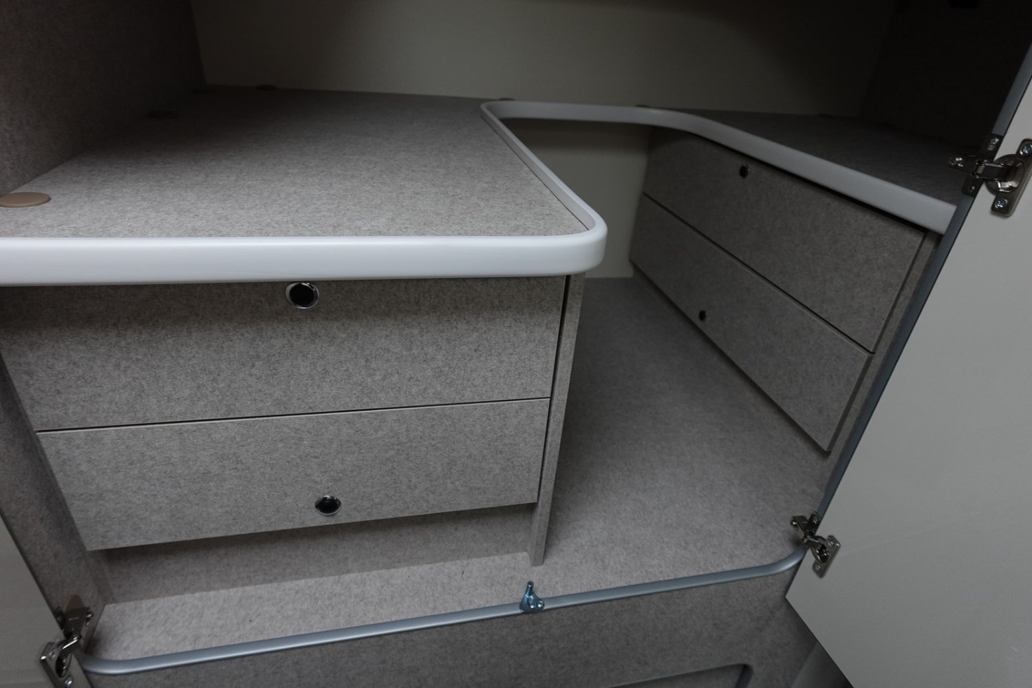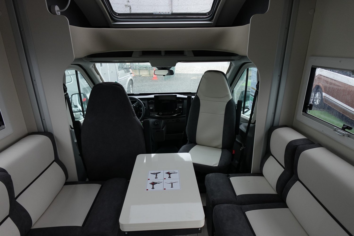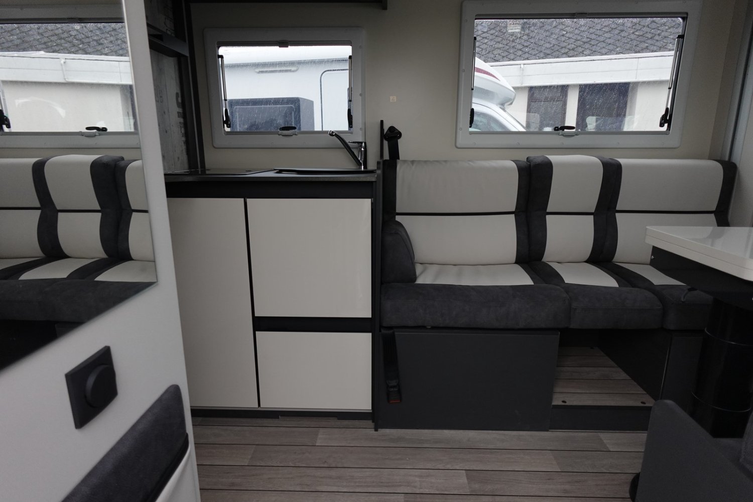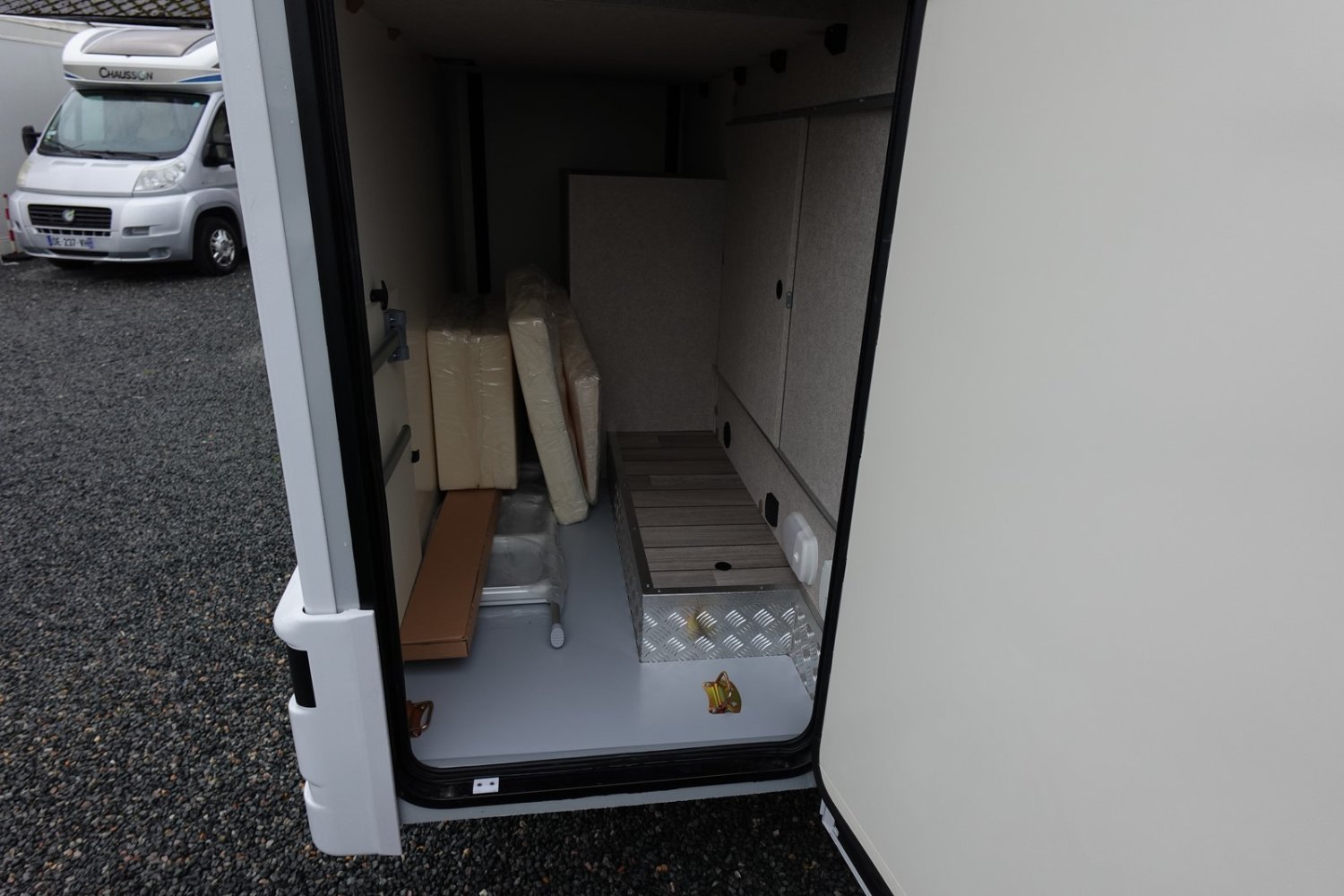 (Motorisation 165 CV, Feux High Series adaptatifs, Boite à gants avec serrure, Habillage intérieur et tableau de bord Trend, Pare-chocs et bas de caisse latérales peints couleur carrosserie, Porte XL avec 2 points de fermeture, fenêtre et fermeture centralisée, Panneau solaire 200 W avec régulateur MPPT, Panneau de commande CP Plus, Support TV, Skyroof, Couvercle d’évier, Housses de sièges cabine, Stores occultants plissés de cabine)