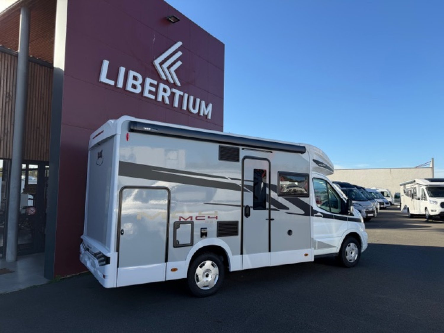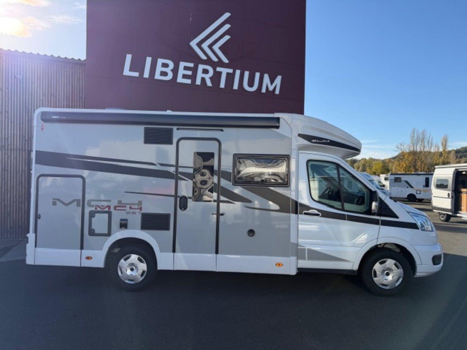 Profilé avec lit de pavillon, grande dinette face à face, salle de bain arrière et garde-robe arrière. Dimensions compactes : seulement 2,15 m de large, avec une longueur et une hauteur réduites. Lit de pavillon 2 places 190 cm de série.