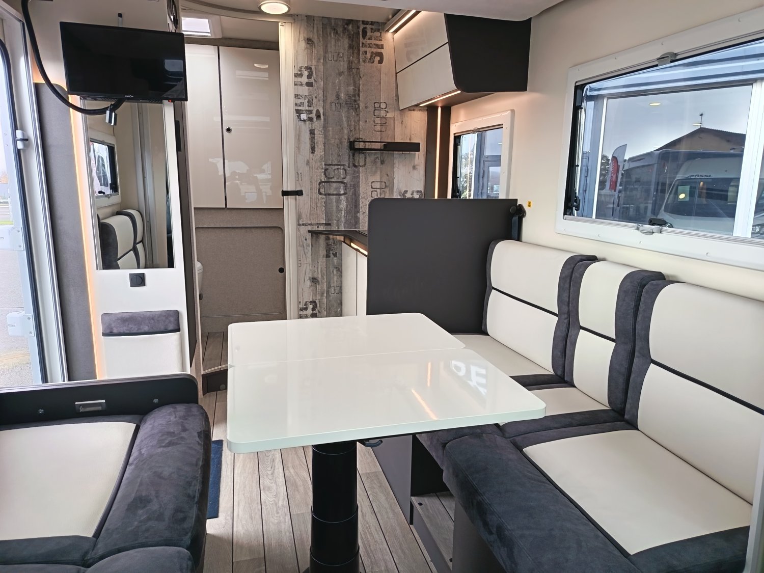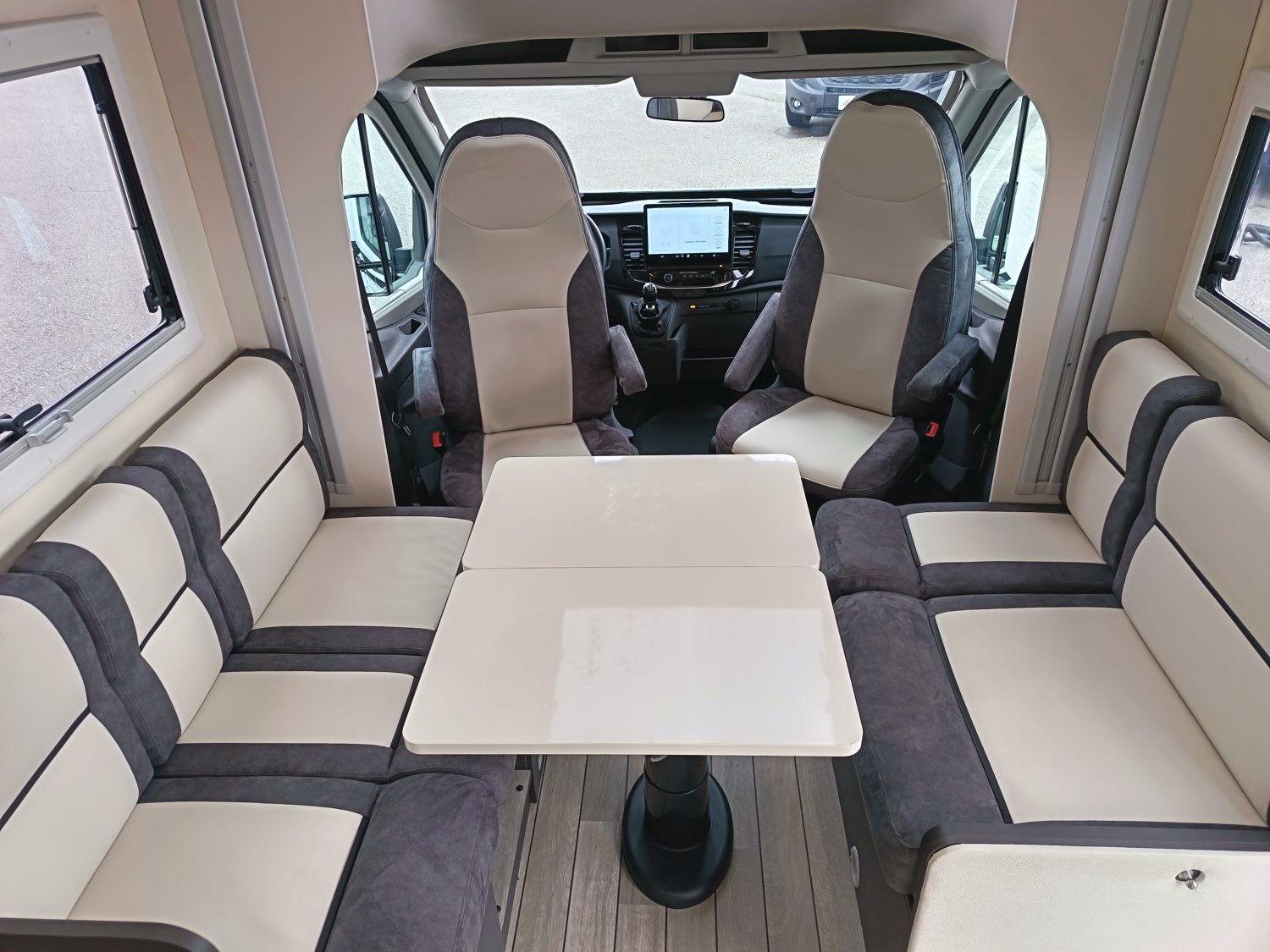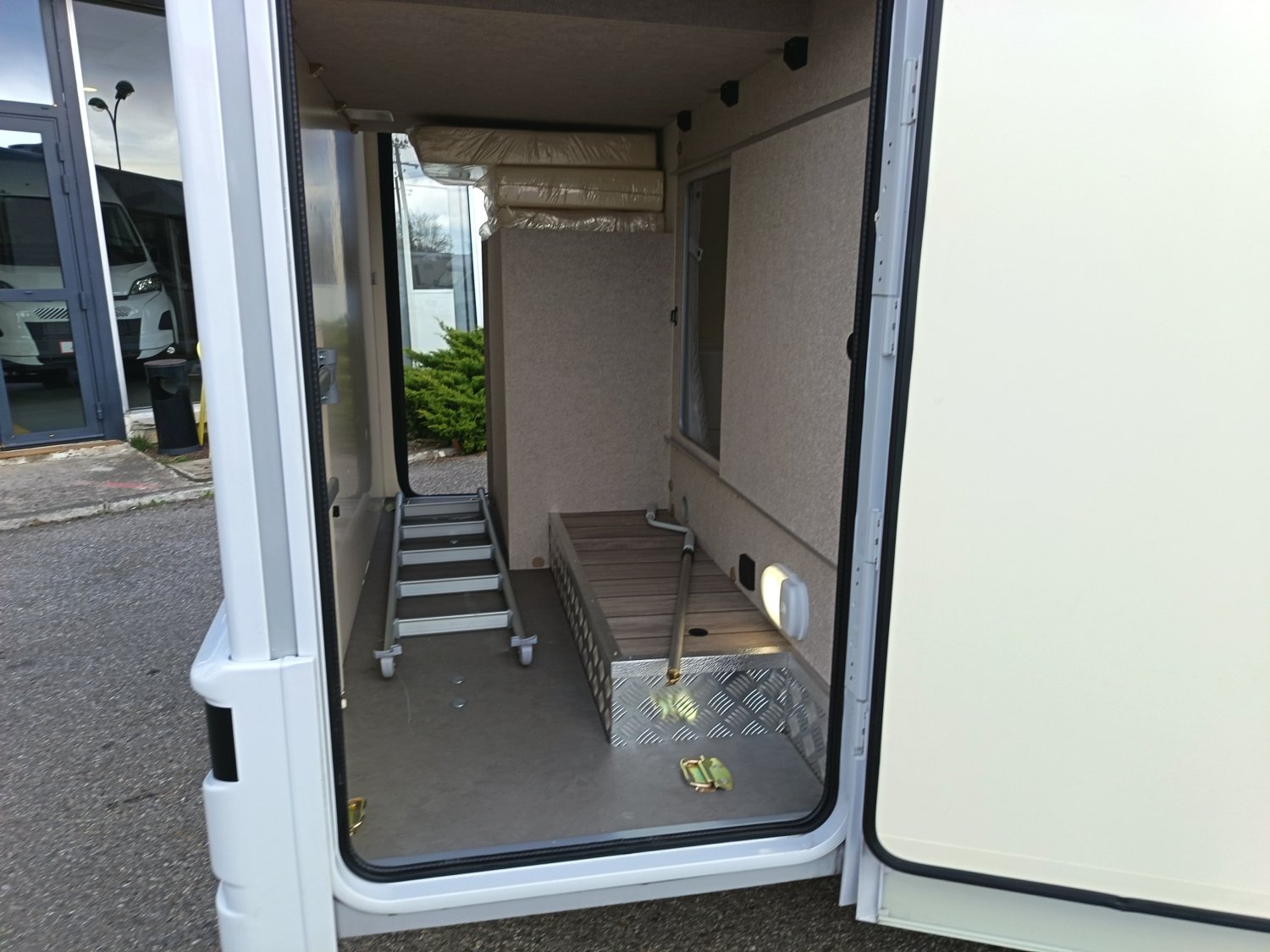 Occasion très récente, première main, très peu utilisé, tout petit kilométrage et très bien équipé. Format très compact avec une largeur de 2.15m et une longueur de 6.39m seulement. Implantation avec grande salle de bain arrière, dressing, toilette séparé, lit de pavillon électrique 2 places et maxi salon en face à face.
