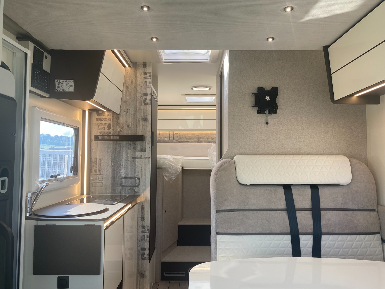 CLIMATISATION AUTOMATIQUE, DOUCHETTE EXTERIEURE, REGULATEUR DE VITESSE, STORE EXTERIEUR 3M50 ANTHRACITE, STORES PLISSES OCCULTANTS DE CABINE, SUPPORT TV, PRISE GAZ EXTERIEURE, PORTE XL AVEC FENETRE ET 2 POINTS DE SECURITE CENTRALISEE, ECRAN TACTILE 12" APPLE CARPLAY ET ANDROID AUTO, ESSUIE GLACE AUTOMATIQUE, FEUX ANTI BROUILLARD, FEUX ARRIERE FULL LED, PANNEAU SOLAIRE 200W + MPPT REGULATEUR, ALLUMAGE AUTOMATIQUE DES FEUX, BOITE DE VITESSE AUTOMATIQUE, CAMERA DE RECUL