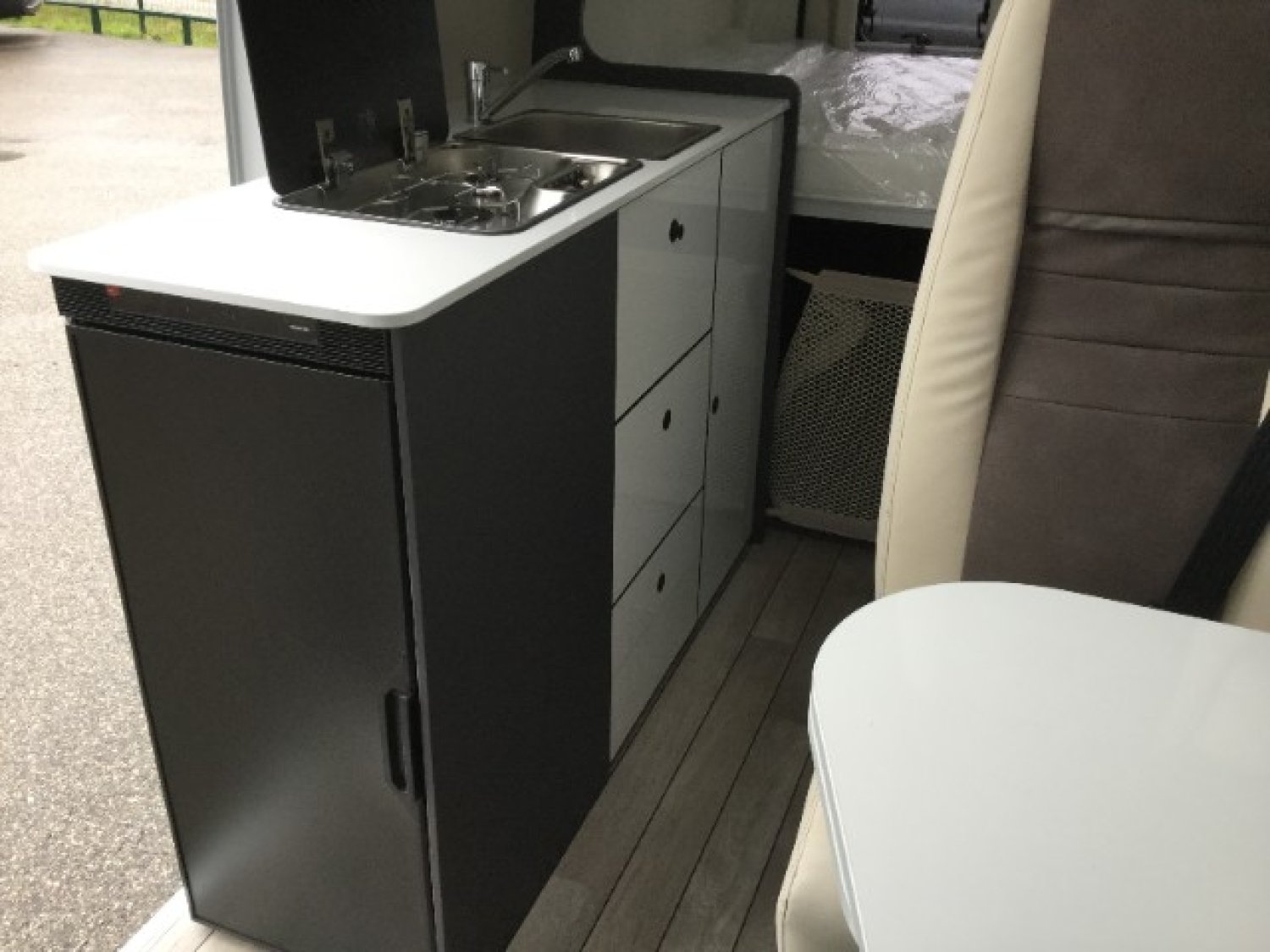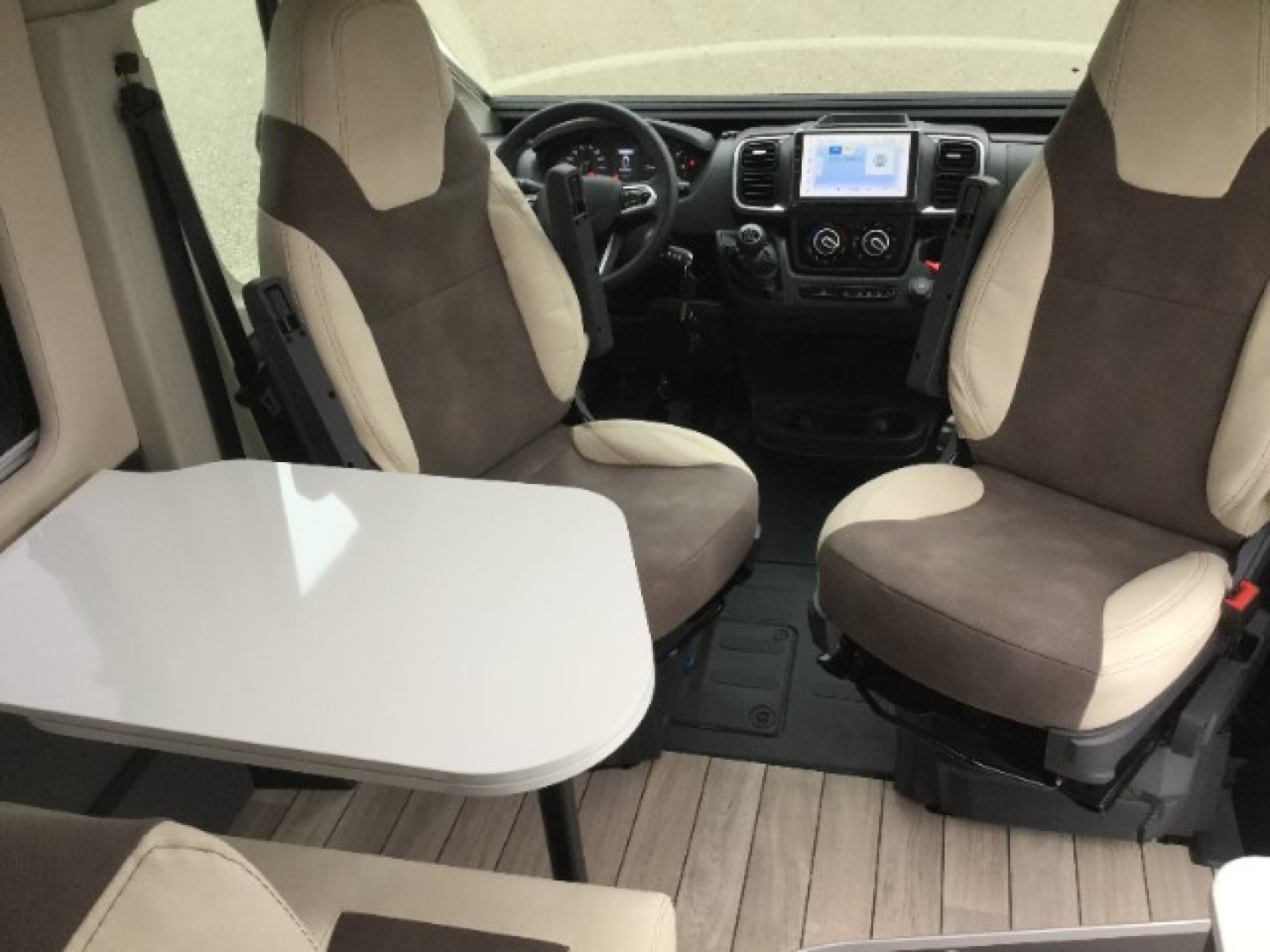 Caméra de recul, Chauffage Truma 4 diesel avec commande CP plus, Commandes radio au volant, Feux anti-brouillard, Frein a main électrique, Jantes alliage 16", Lumière extérieur, Marche pied électrique, Moustiquaire porte coulissante, Panneau solaire 200w, Pare choc avant peint, Pneus 4 saisons, Poste multimédia 9" Pioneer, Réfrigérateur a compression 84l, Réservoir carburant 90 l, Store plissé occultant cabine, Traction +, Volant cuir