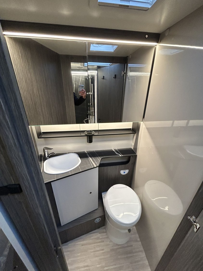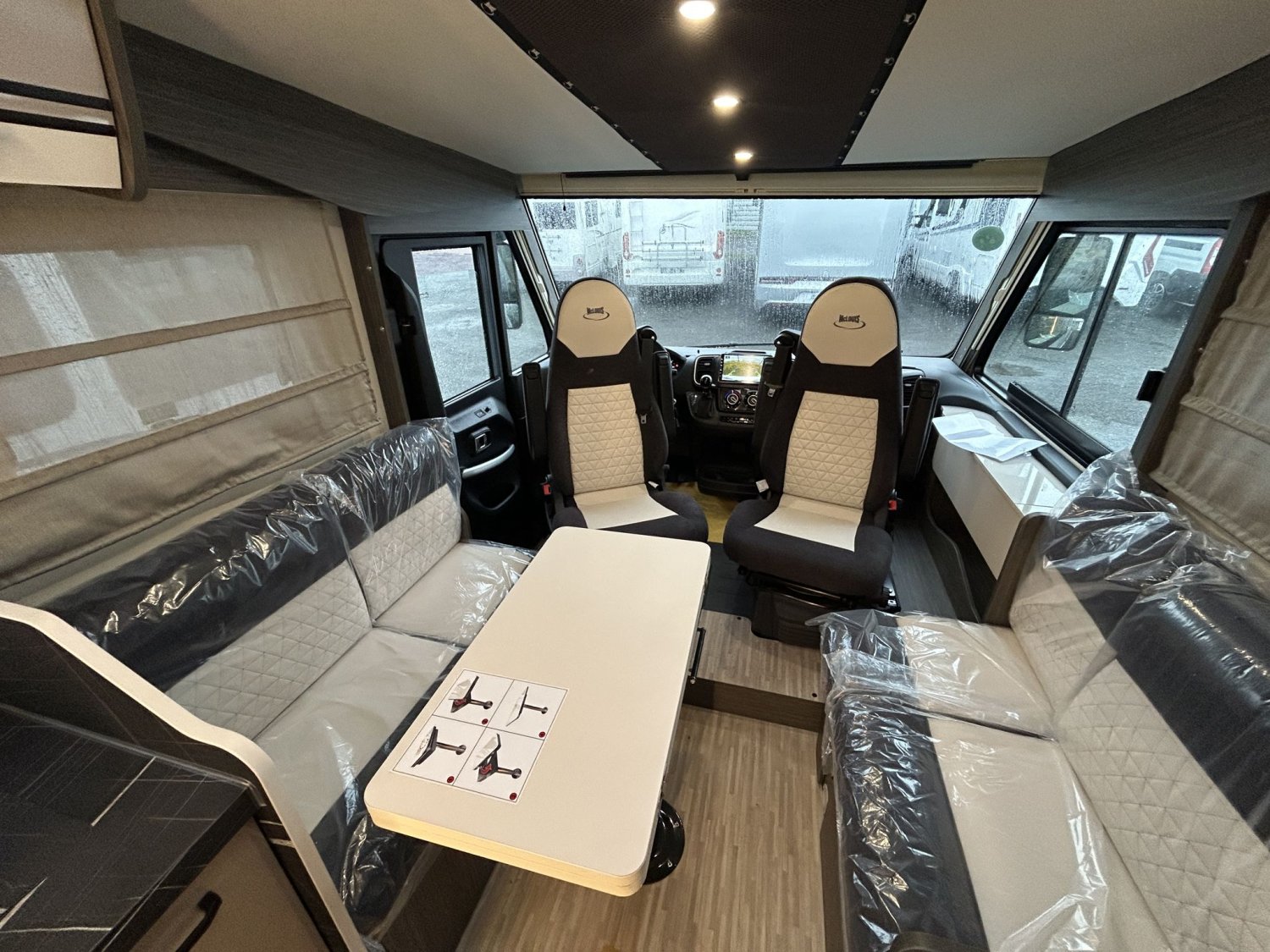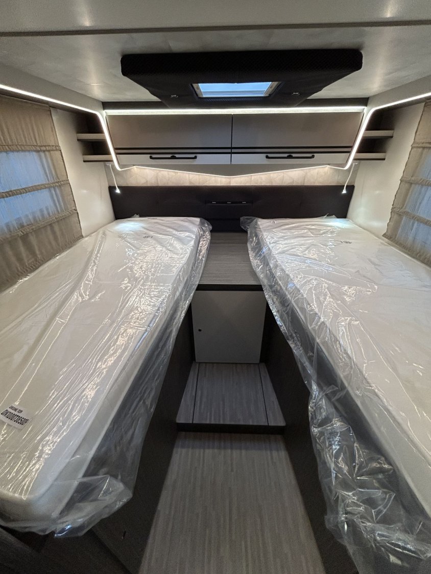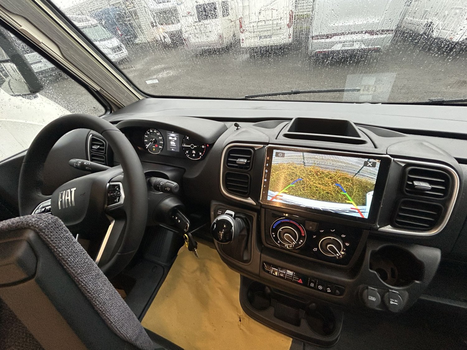 électrique ; TPMS (capteur de contrôle de la pression des pneus) ; Porte XL à 2 points avec fenêtre et fermeture centralisée ; Support TV ; Panneau solaire 200 W avec régulateur MPPT ; Store plissé cabine