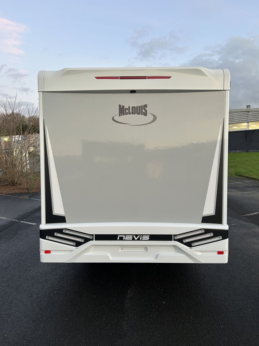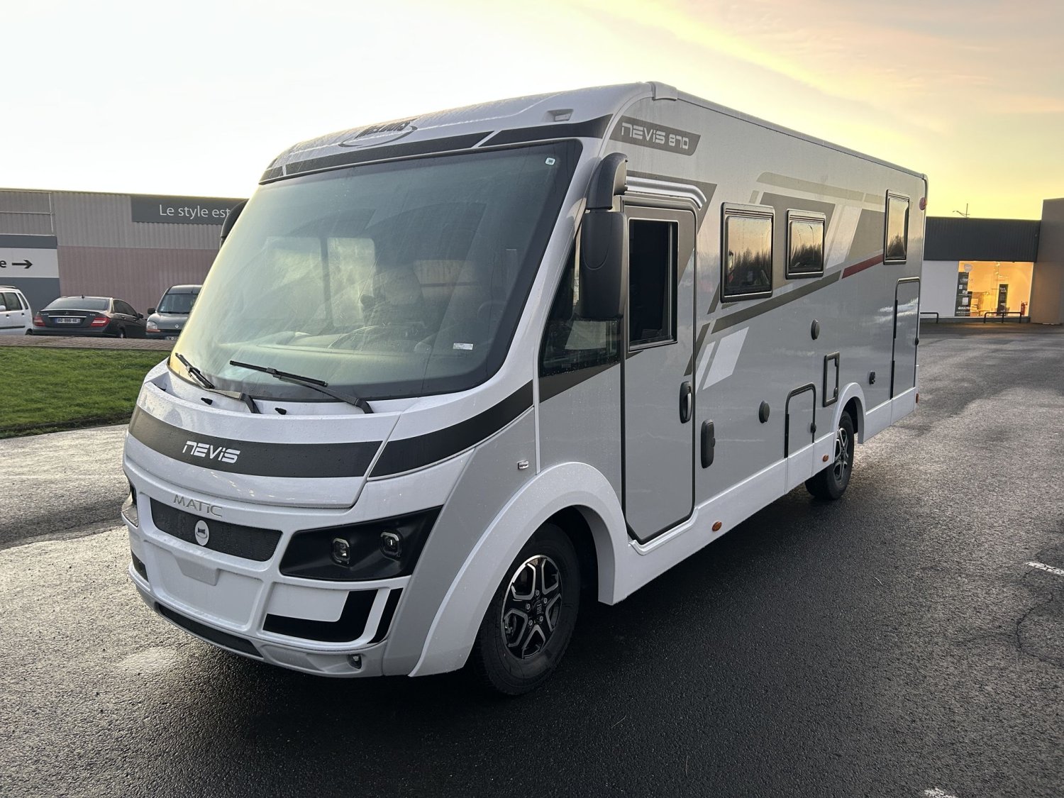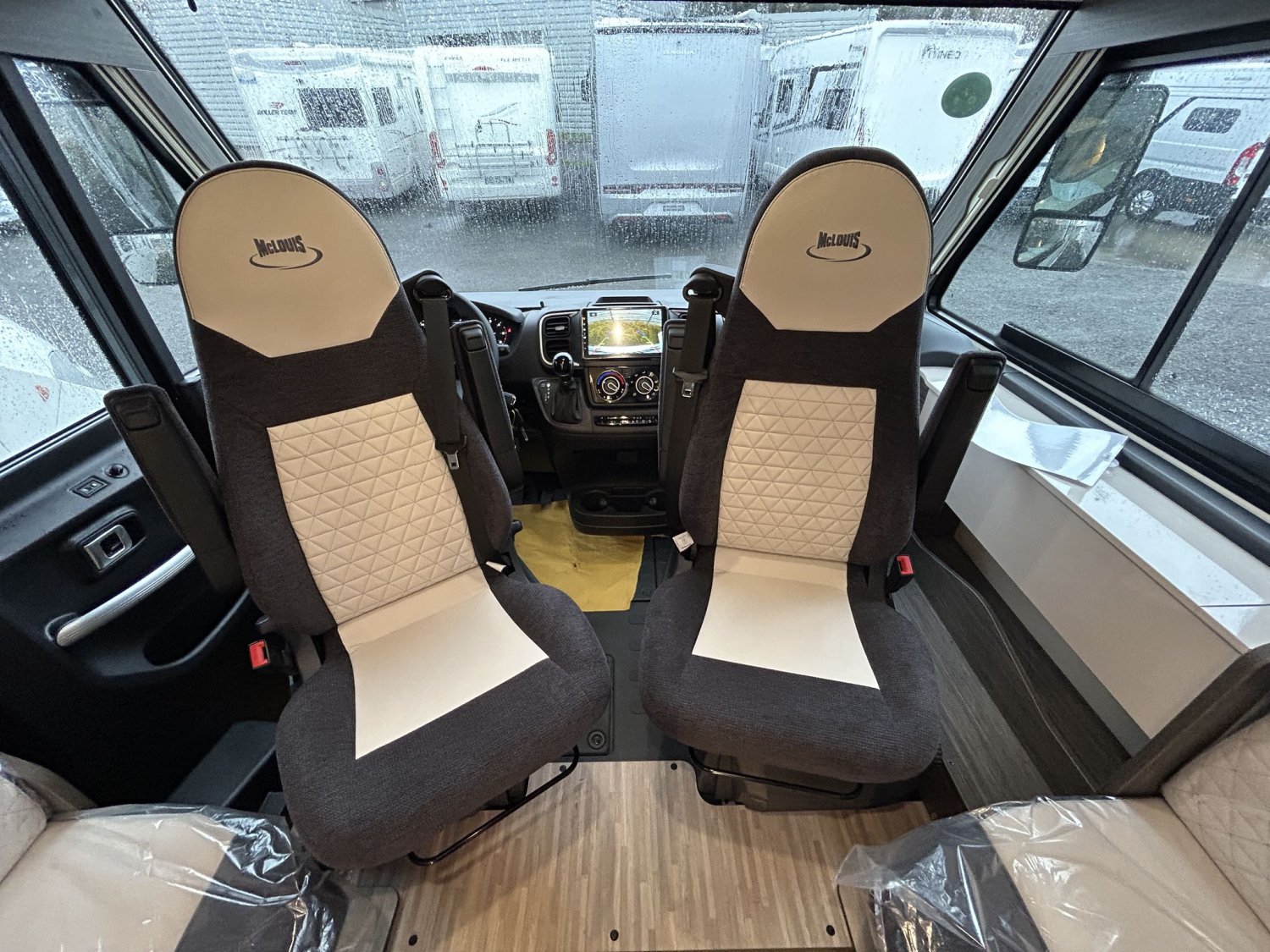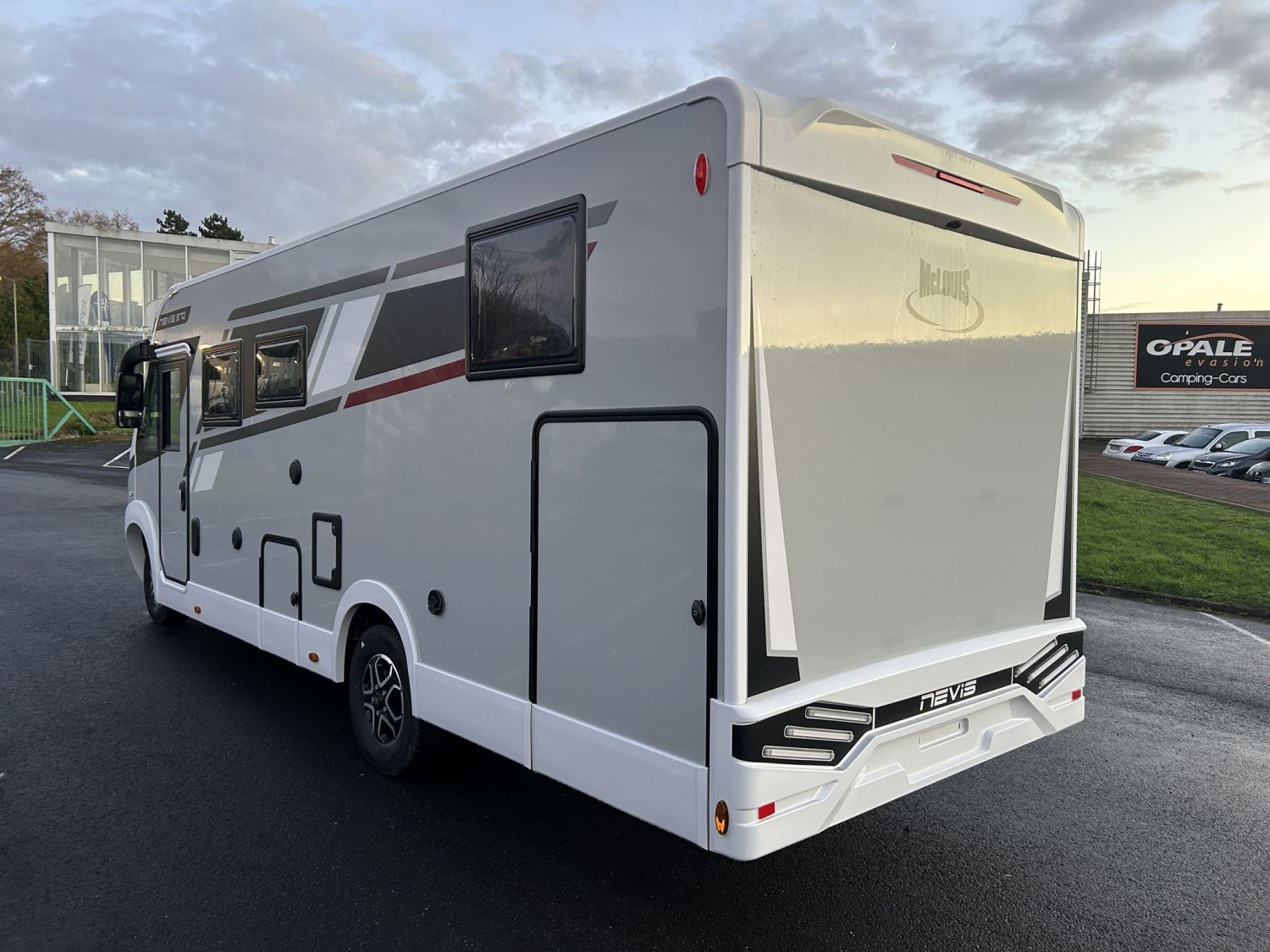 électrique ; TPMS (capteur de contrôle de la pression des pneus) ; Porte XL à 2 points avec fenêtre et fermeture centralisée ; Support TV ; Panneau solaire 200 W avec régulateur MPPT ; Store plissé cabine