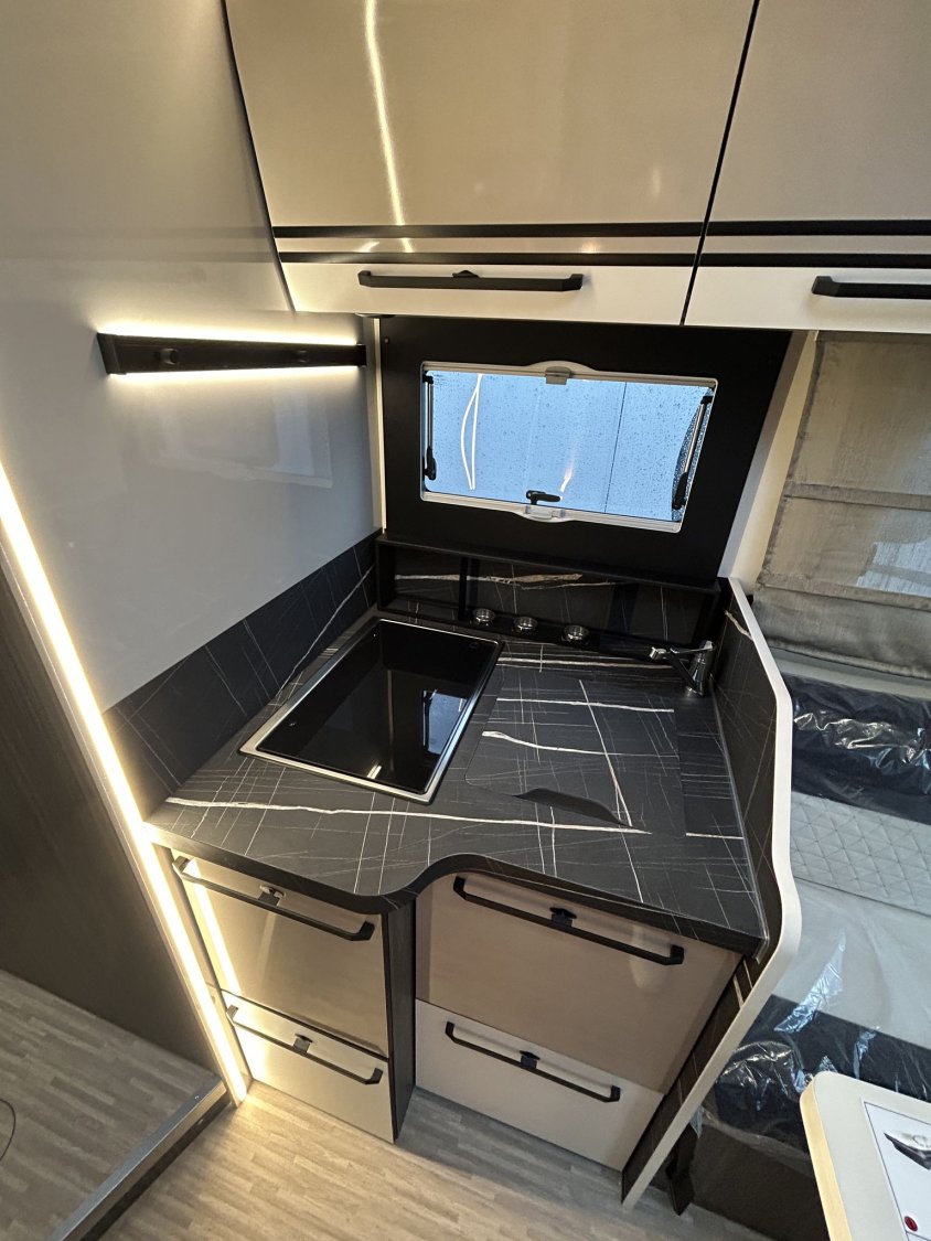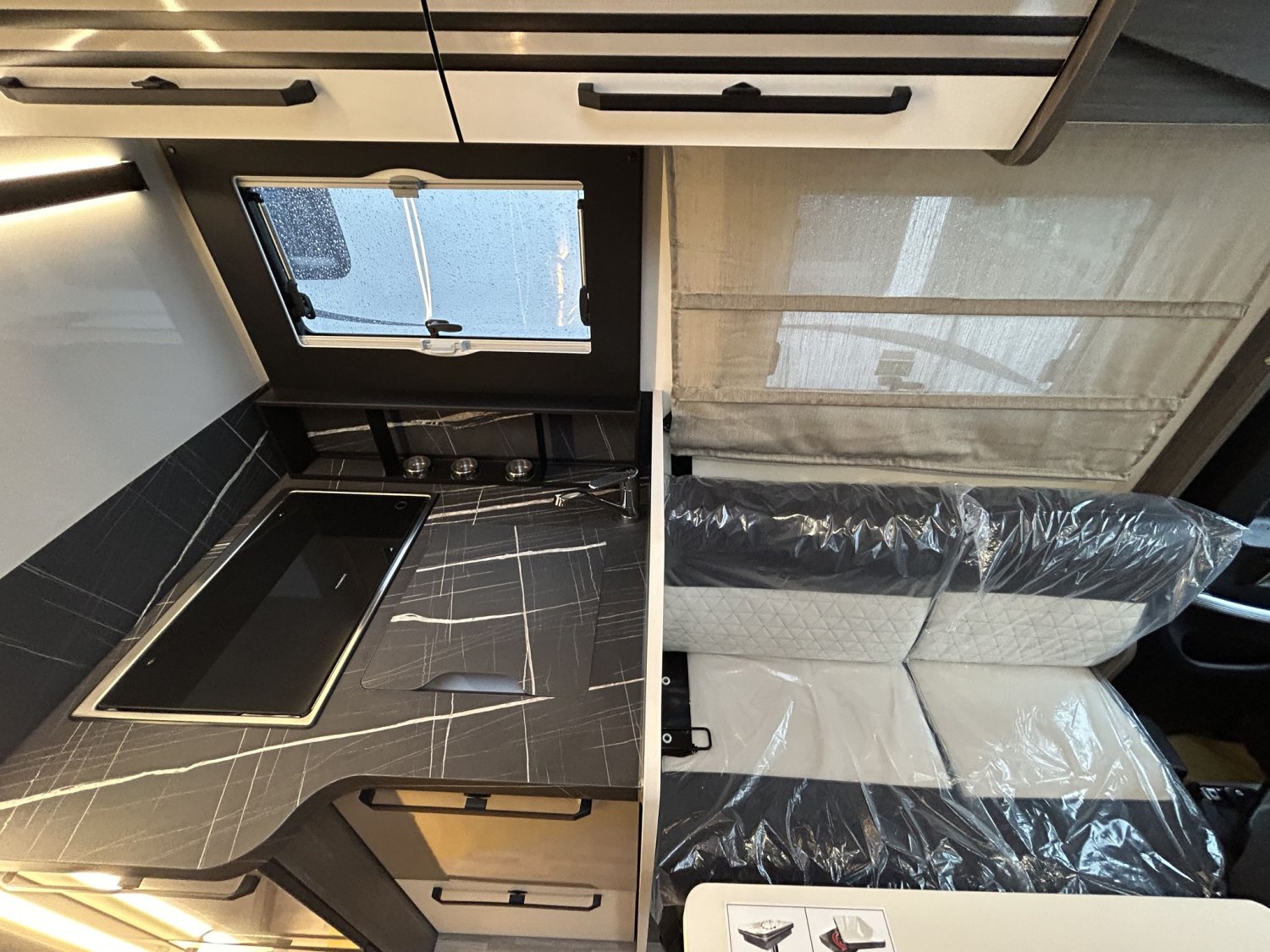Winter Pack (réservoir d’eaux usées isolé et chauffé, marchepied isolé) ; Prise 220 V dans la cuisine ; Plaque de cuisson premium à deux feux ;