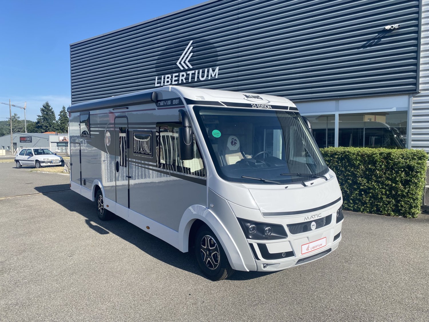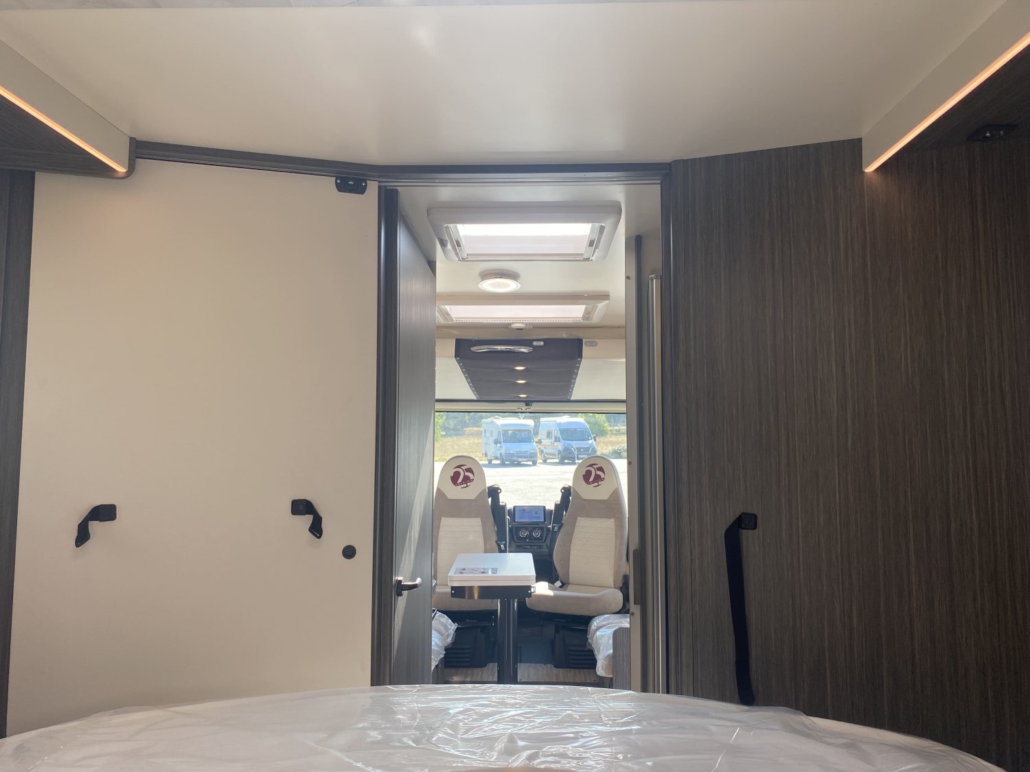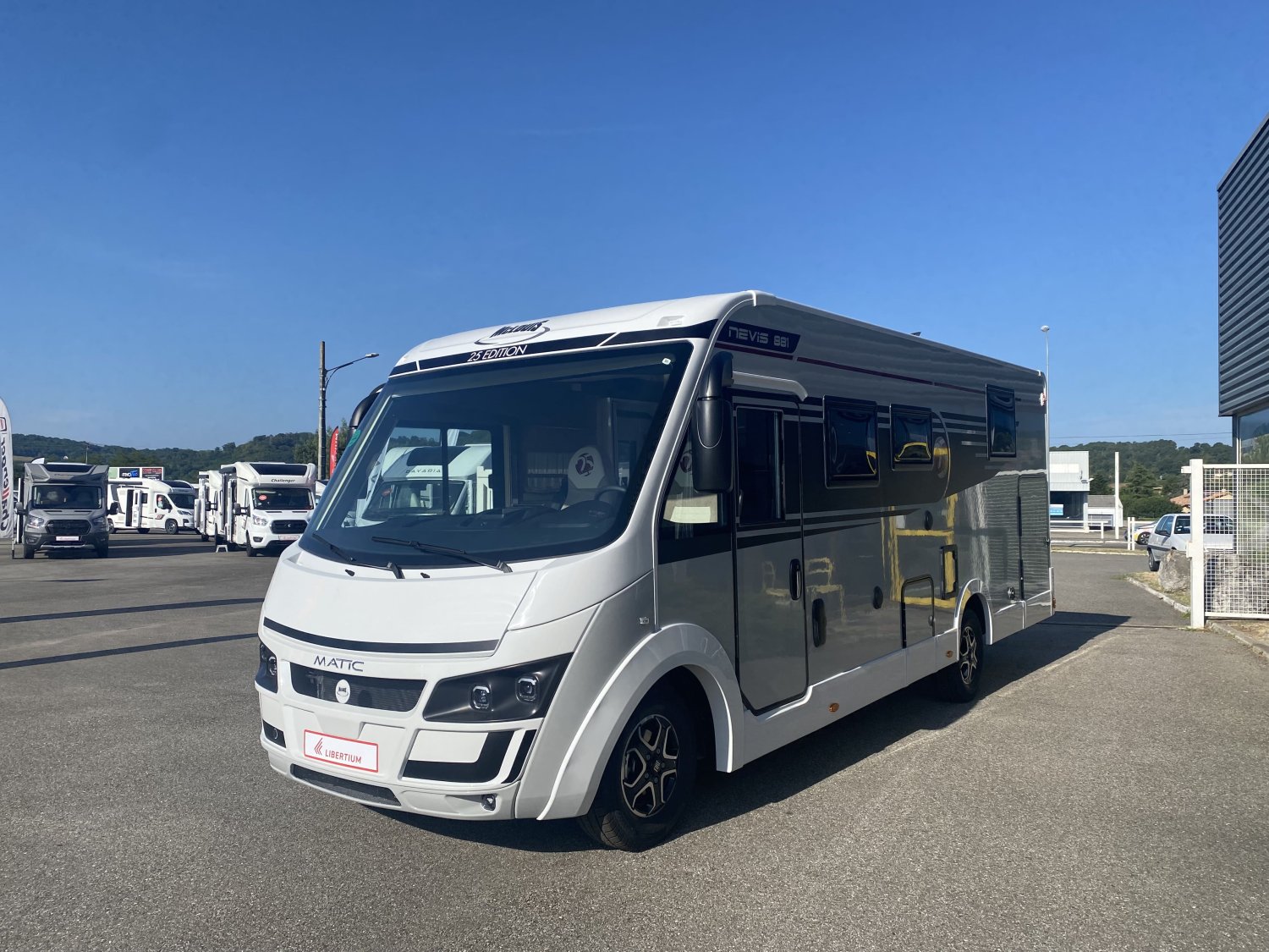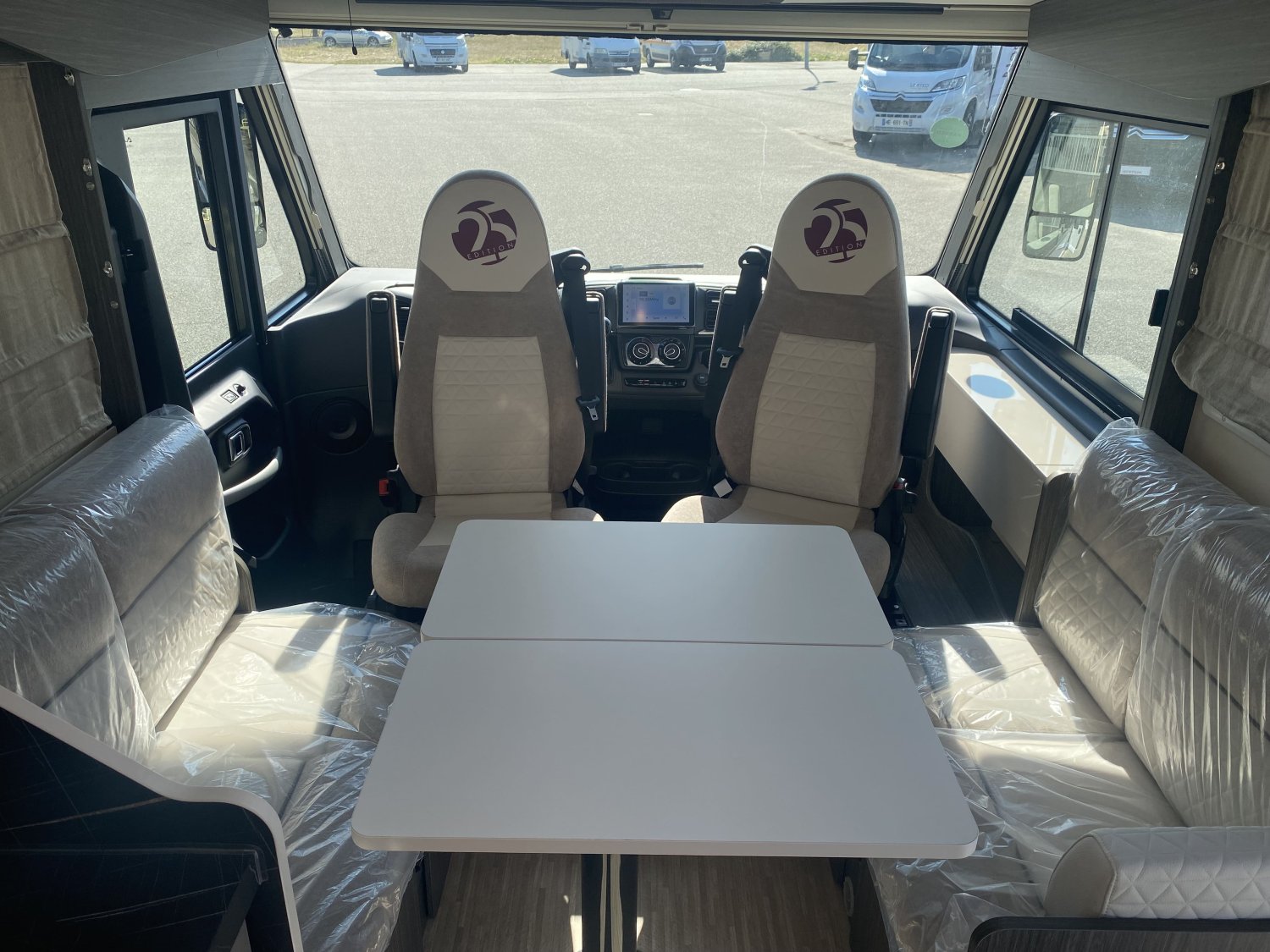 Intégral lit central sur soute garage réglable en hauteur, lit de cabine, salon en face à face et douche indépendante pour cette nouvelle série 25 Edition de chez Mc Louis. Véhicule sur équipé avec une finition spécifique, intérieure et extérieure et qui aborde une nouvelle face avant.