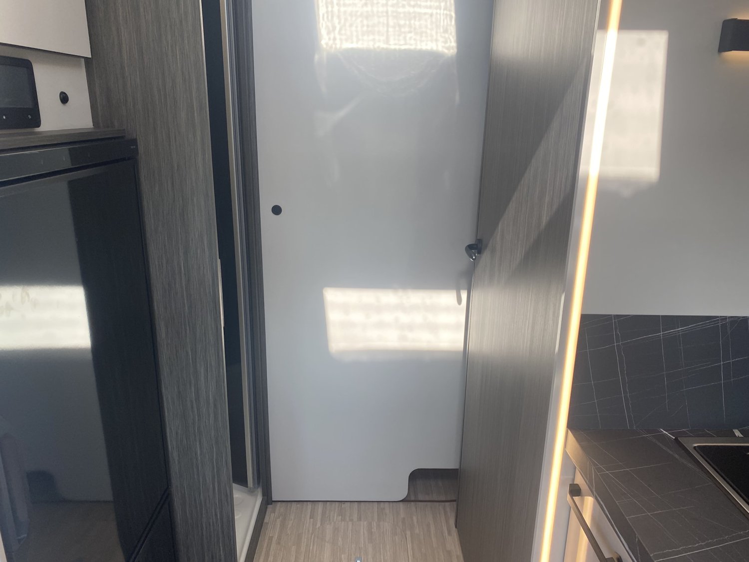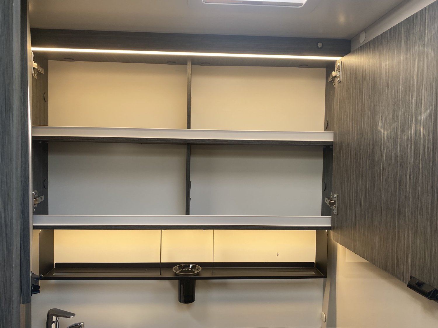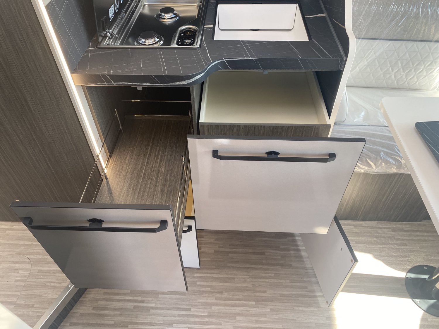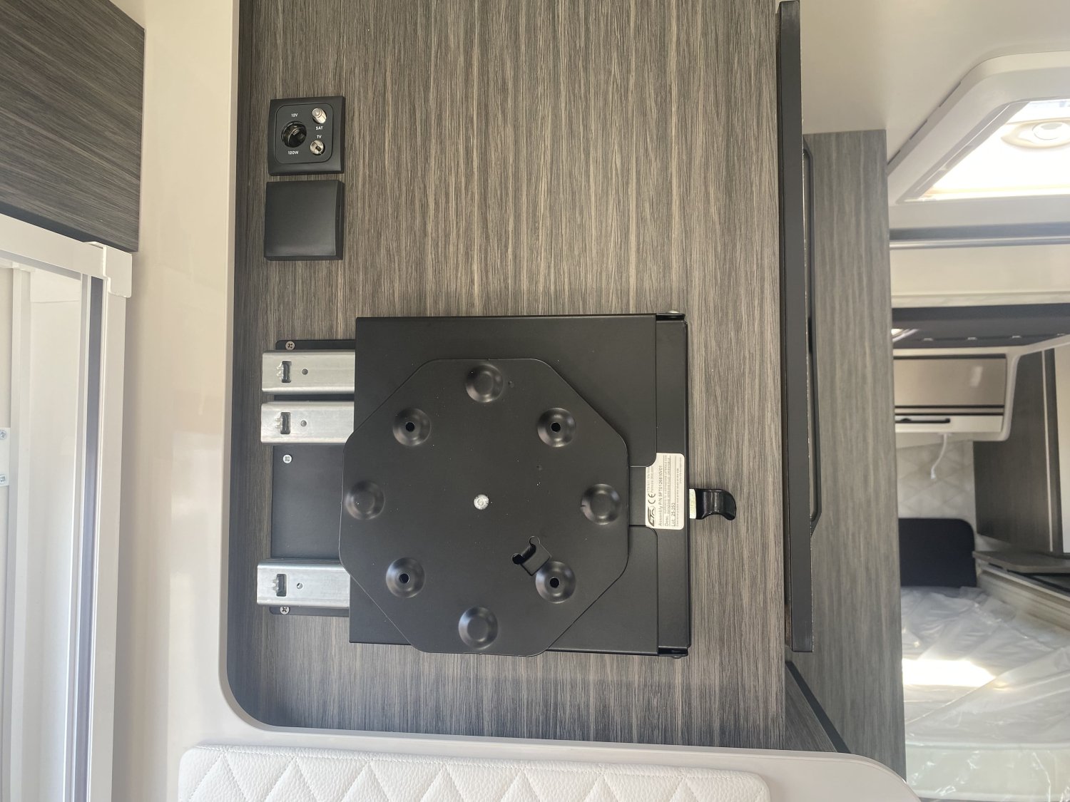 Intégral lit central sur soute garage réglable en hauteur, lit de cabine, salon en face à face et douche indépendante pour cette nouvelle série 25 Edition de chez Mc Louis. Véhicule sur équipé avec une finition spécifique, intérieure et extérieure et qui aborde une nouvelle face avant.