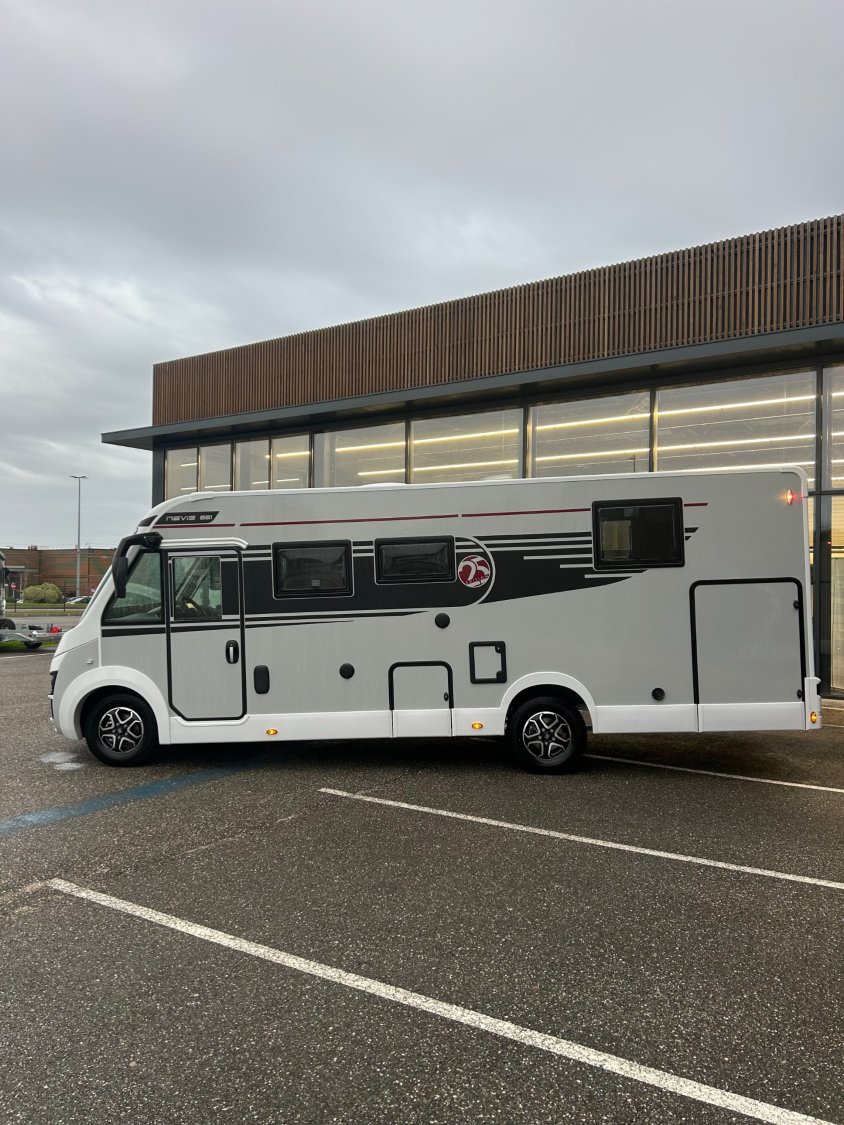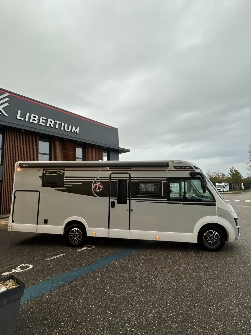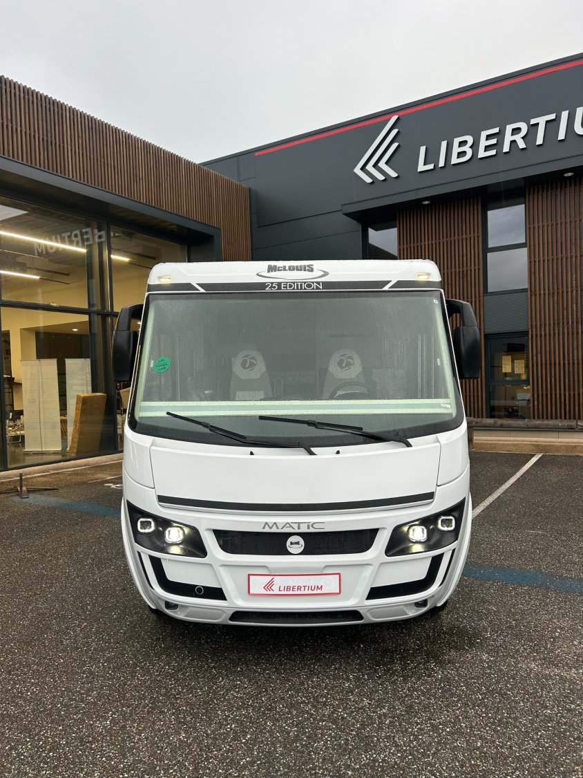 McLouis Nevis 881 25 Edition – L’intégral haut de gamme par excellence Le McLouis Nevis 881 25 Edition séduit par son confort, son style raffiné et sa technologie de pointe. Construit sur le Fiat Ducato 2.2 L – 140 ch automatique, il garantit une conduite fluide et sécurisée. Avec ses 4 places carte grise et 4 couchages, ce camping-car intégral offre un vaste espace intérieur avec un lit central réglable électriquement, parfait pour des nuits paisibles. Son équipement complet comprend la climatisation porteur, le régulateur de vitesse, la caméra de recul, un autoradio 9" Pioneer Apple CarPlay/Android Auto, et des feux arrière full LED. Les finitions haut de gamme — jantes alu 16", panneau solaire 200 W, store extérieur anthracite, prise et douchette extérieures — renforcent son autonomie et son élégance. McLouis Nevis 881 25 Edition – un intégral luxueux, pensé pour voyager avec confort et distinction.