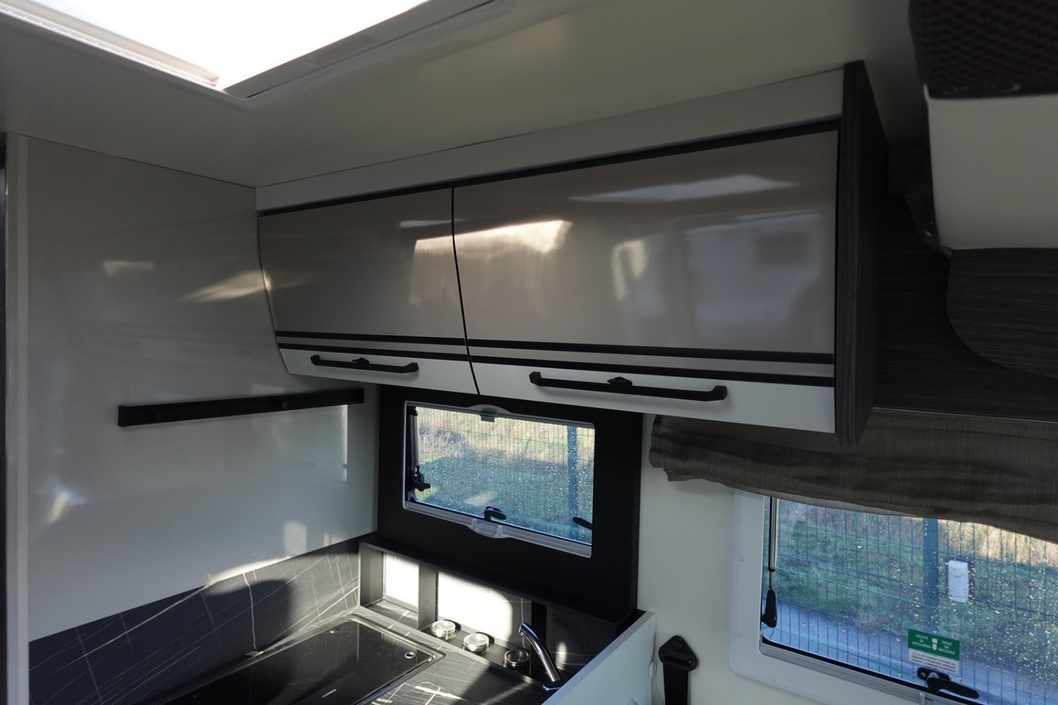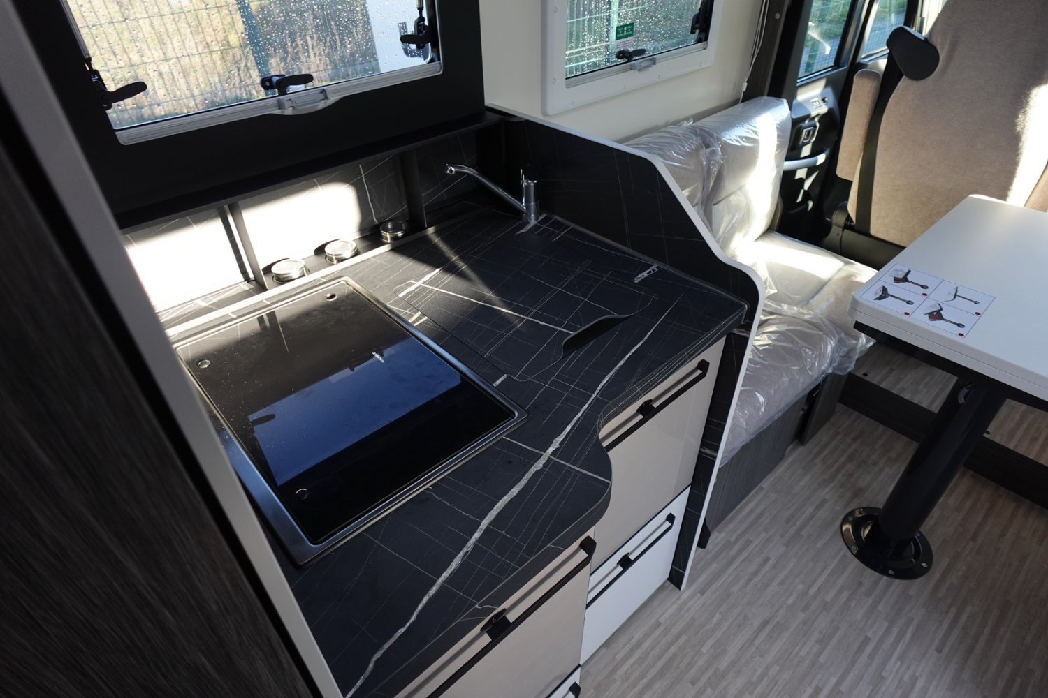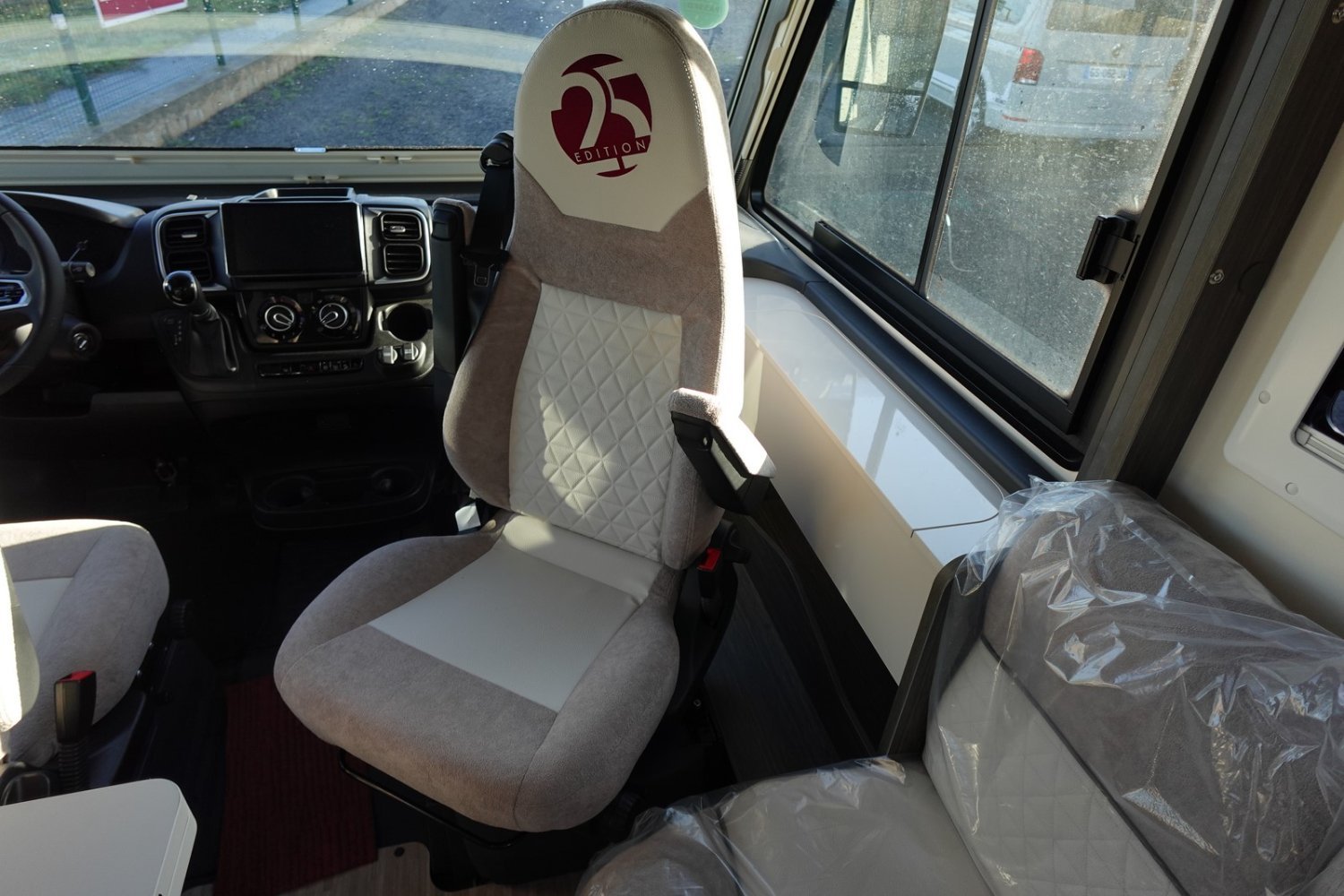 (Nouveaux graphismes extérieurs et sellerie 25 EDITION, Boite de vitesse automatique, Store extérieur, Prise de gaz externe, Douchette extérieure, Feux antibrouillard, Skid Plate noir, Jantes en alliage 16 pouces, Volant et pommeau de levier de vitesse en cuir, Tableau de bord Techno, Frein à main électrique, Capteur de contrôle de la pression des pneus, Porte XL à 2 points avec fenêtre et fermeture centralisée, Support TV 32 pouces, Panneau solaire 200 W avec régulateur MPPT, Store plissé cabine