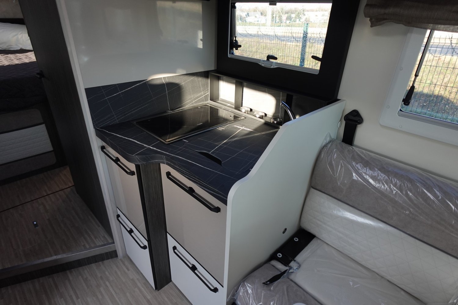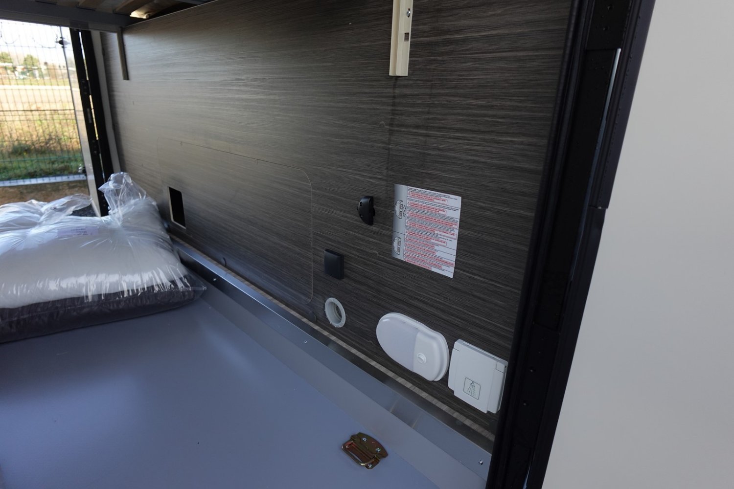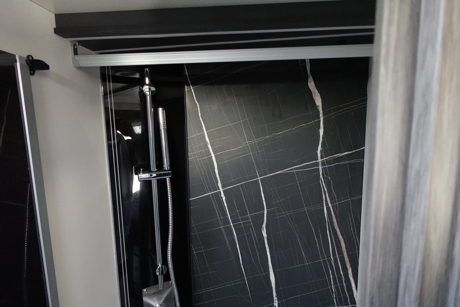 (Nouveaux graphismes extérieurs et sellerie 25 EDITION, Boite de vitesse automatique, Store extérieur, Prise de gaz externe, Douchette extérieure, Feux antibrouillard, Skid Plate noir, Jantes en alliage 16 pouces, Volant et pommeau de levier de vitesse en cuir, Tableau de bord Techno, Frein à main électrique, Capteur de contrôle de la pression des pneus, Porte XL à 2 points avec fenêtre et fermeture centralisée, Support TV 32 pouces, Panneau solaire 200 W avec régulateur MPPT, Store plissé cabine