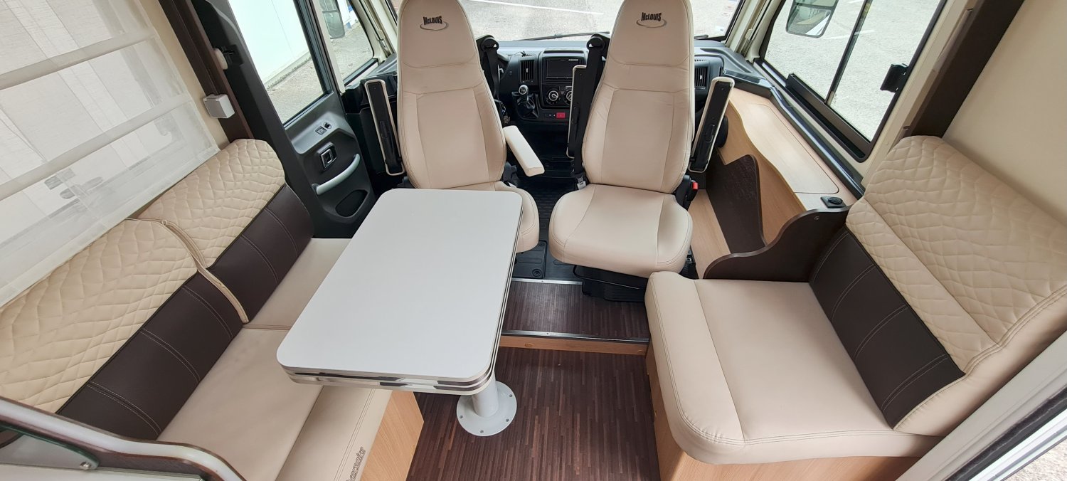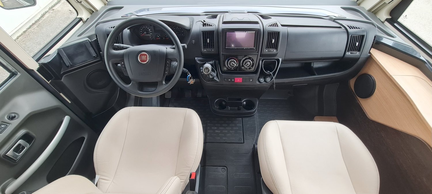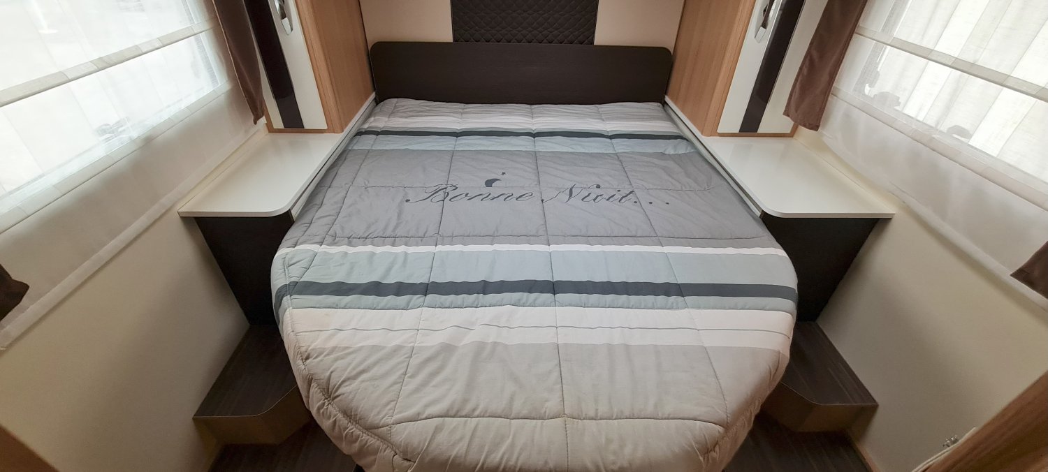 Boite manuel 6 vitesse, Grand frigo 138L, Chauffage + chauffe-eau gaz, Station mutimédia, Caméra de recul, Moustiquaire de porte, Porte 2 vélos, Store extérieur, Store occultation cabine, TV + parabole automatique, Lit central réglable en hauteur, Panneau solaire 120 W