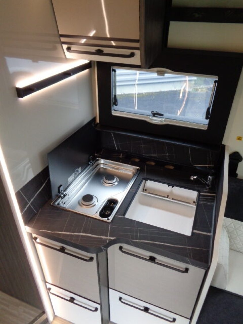 Boîte de vitesses automatique Régulateur de vitesse adaptatif avec centrage sur la voie et Stop&Go Rétroviseurs dégivrants électriques et rabattables manuellement Dégivrage électrique du pare-brise Assistance pré-collision 2.2 Reconnaissance des panneaux de vitesse Winter Pack Marchepied isolé Store extérieur Panneau solaire 200 W avec régulateur MPPT Douchette extérieure et prise de gaz externe Grand réfrigérateur à compression de 158 l Et bien plus encore à découvrir!