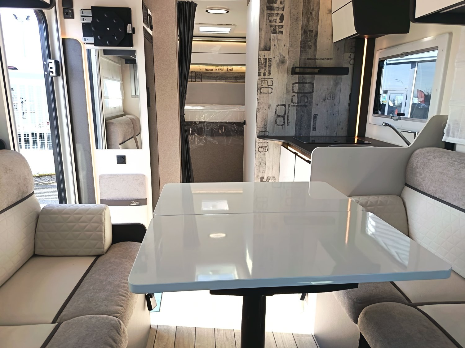 FEUX DIURNES AVEC FEUX D'ANGLES STATIQUES, PRISE GAZ EXTERIEURE, REGULATEUR DE VITESSE ADAPTATIF, TOIT PANORAMIQUE, SIEGES CONFORT POSITION ROUTE, NAVIGATION CENTER, PARE BRISE DEGIVRANT, PARE CHOC COULEUR CAROSSERIE, SUPPORT TV 32", CABINE AVANT GRIS METAL, STORE PLISSE CABINE, RETROVISEURS RABATTABLES MANUELLEMENT AVEC DEGIVRAGE ELECTRI, DOUCHETTE EXTERIEURE, ISOFIX, JANTES ALLIAGES 16 ", HOUSSES DE SIEGE COORDONNEES AVEC LES TISSUS, MARCHE PIED, MOUSTIQUAIRE DE PORTE, PANNEAU SOLAIRE 200W + MPPT REGULATEUR, STORE EXTERIEUR ANTHRACITE, PORTE XL AVEC 2 FERMETURE 2 POINTS CENTRALISEE, SYSTEME PRE COLLISION ASSIST 2.2