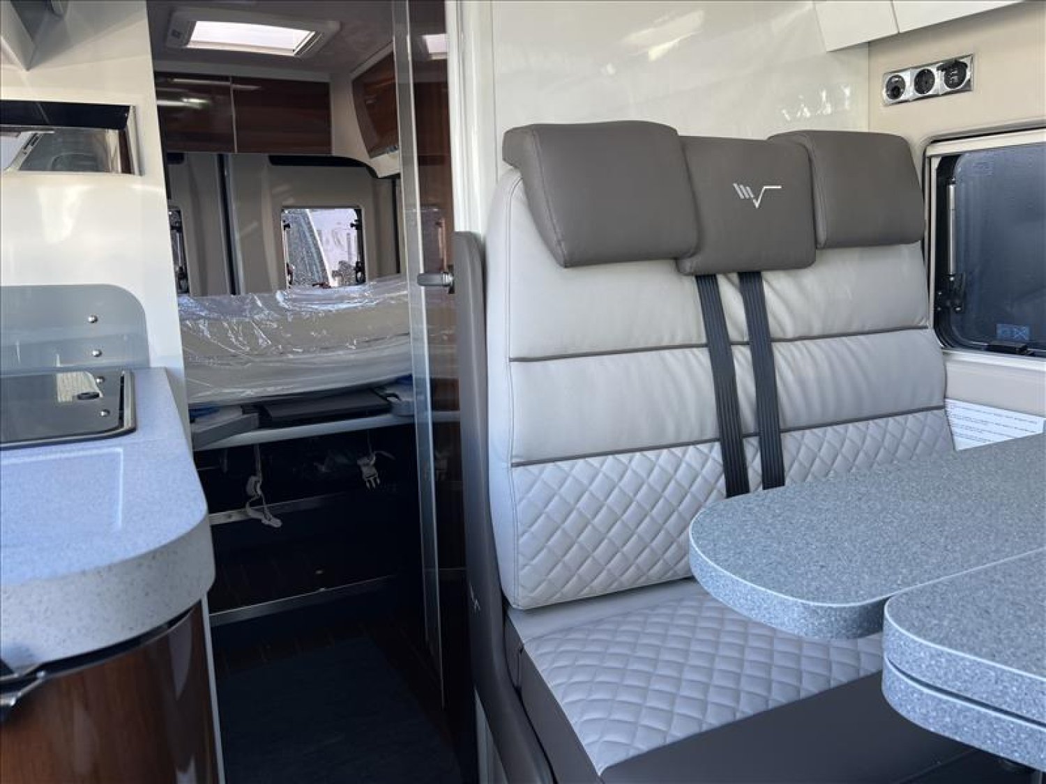 LIT JUMEAUX RELEVABLES, RESERVOIR DE GASOIL 90 LITRES, TOIT PANORAMIQUE, FENETRE EFFLEURANTES, TRAPPE ET RANGEMENT DANS LE DOUBLE PLANCHER, CAMERA DE RECUL, COMMANDE RADIO AU VOLANT, MOUSTIQUAIRE PORTE D ENTREE, STORE OCCULTANT PLISSE DANS LA CABINE
