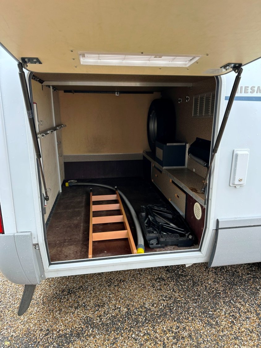Intégral Niesmann, poids lourd 3.850 Kg, lit sur vaste soute garage, 4 couchages, salle de bain avec douche intégrée, cuisine spacieuse et toute équipée, vaste salon avant avec sièges pivotant et table centrale, lit pavillon en cabine pour deux adultes.