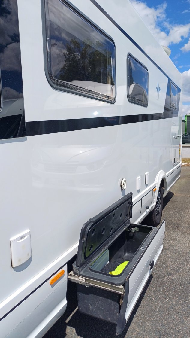 BVA, Store, Autoradio caméra de recul, 2 batteries cellule, Convertisseur, 2 panneaux solaire, Chauffage central alde, Antenne sat auto, TV