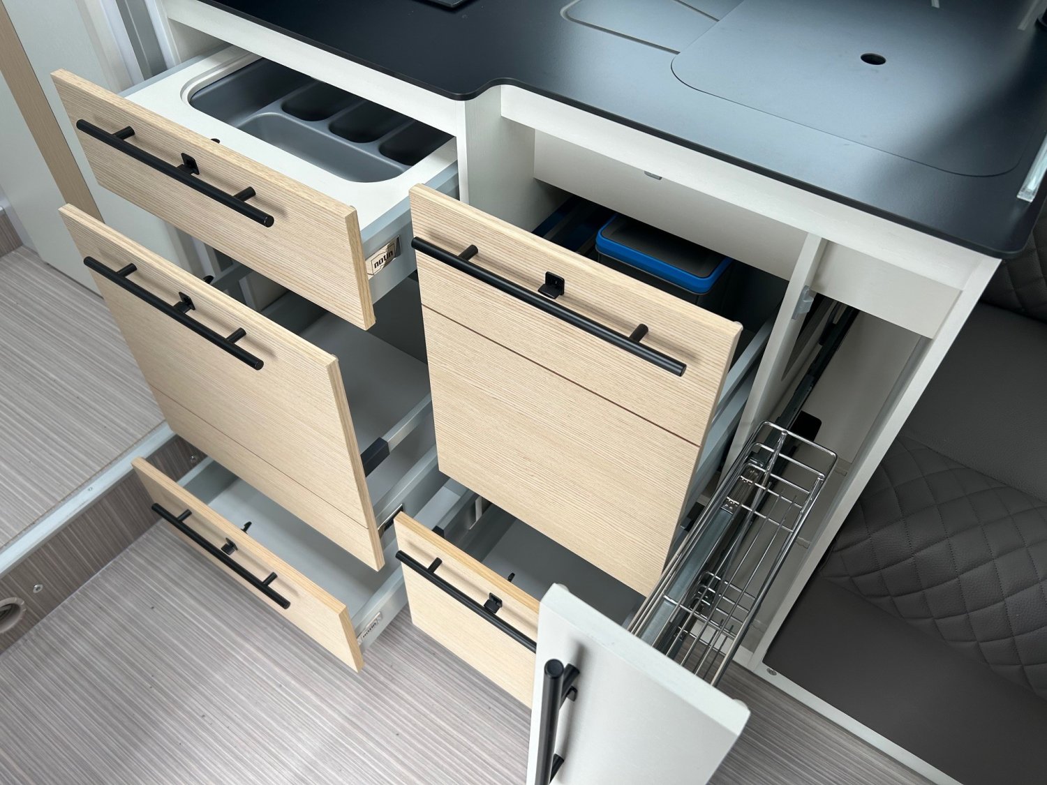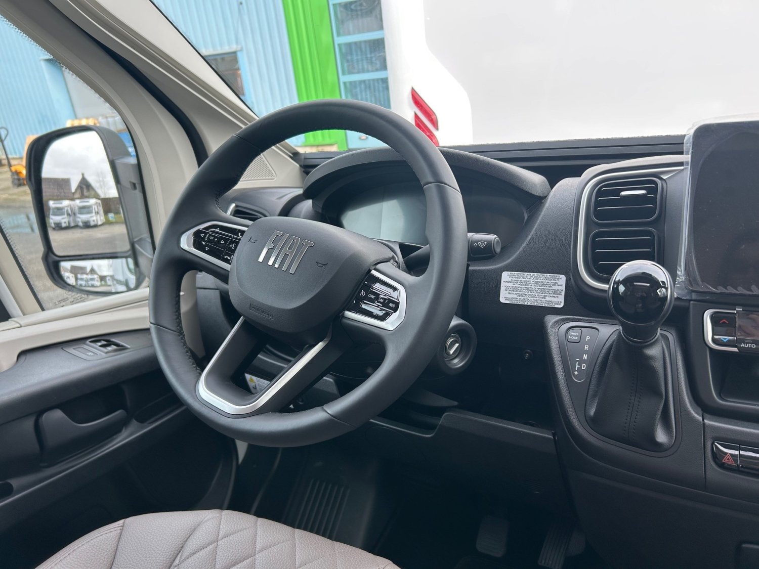 🚪 Porte de séparation coulissante en chambre 🛡️ Protection de sol 💡 Mobilier scandinave avec éclairage 4000K 🪑 Sellerie simili cuir “Métal” Un intérieur chaleureux, moderne et parfaitement pensé pour offrir un confort haut de gamme, de jour comme de nuit ✨. 💡 Projecteurs avant Full LED ❄️ Climatisation automatique porteur 📱 Chargeur de téléphone sans fil 🎛️ Radio 10’’ 🎥 Caméra de recul 🛞 Jantes bi-couleur 🛠️ Volant cuir avec habillage gris aluminium Un porteur moderne, puissant et agréable à conduire, idéal pour les longues distances comme pour les manœuvres du quotidien. 🔧✨ Pack Progress (inclus) : Ce pack très complet apporte confort, sécurité et finitions haut de gamme : 🔦 Antibrouillards + pare-chocs peint 📺 Support TV salon 🪟 Stores d’occultation cabine 🚪 Marchepied électrique 🔋 Prédisposition lithium 💧 Réservoir eaux usées isolé et chauffé 🧼 Tapis de cabine poste de conduite Un ensemble d’équipements qui améliore nettement le confort à bord et la facilité d’utilisation au quotidien. 🔥 Chauffage Truma Combi 6 EH ➡️ Fonctionnement gaz + électricité Un système performant, idéal pour voyager toute l’année, même en conditions froides.